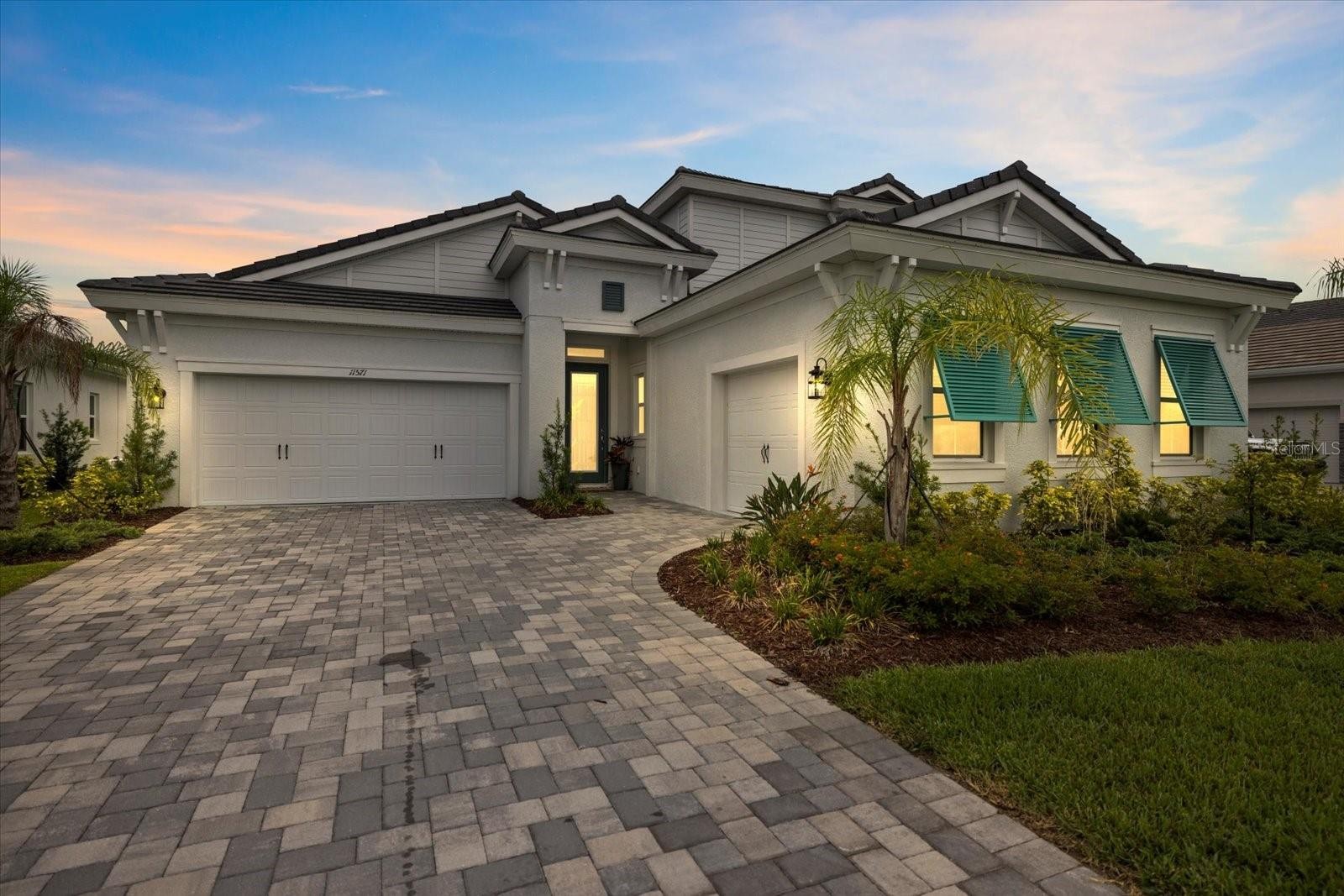 Welcome to your dream oasis! This modern luxury pool and spa home epitomizes elegance and comfort, featuring the outstanding Captiva open floor plan that seamlessly blends refined design with functional living. In an amenity-rich community, this custom-built property showcases meticulously crafted design elements throughout. Step into the inviting living space where the zero gravity sliders welcome in the natural light and deliver breathtaking views of the expansive and private lanai. This exceptional residence includes a host of upscale finishes and upgrades including hurricane-impact windows and sliders, 10-foot ceilings, 8-foot interior doors, a surround sound system, coffered ceilings, ceiling fans throughout, custom window treatments, crown molding, a three-car garage and more. The gourmet kitchen is a chef’s paradise featuring ceiling-high double-stacked cabinets that provide additional storage, lighted upper cabinets with glass doors and premium GE appliances. For those who love a quiet space for working, reading or just relaxing after a long day, the Captiva model offers a large club room with glass French doors with direct access to the lanai and also includes a separate stylish home office ideal for remote workers. This pristine home hosts a generously sized primary suite complete with large bath, dual vanities, tiled walk-in frameless glass shower and an incredible custom-built walk-in closet! Two additional bedrooms and baths provide space for everyone with one being a private en suite, ideal for an in-law sanctuary. Venture outside to discover your private backyard haven with incredible water and preserve views. The highlight of this patio paradise is the stunning fully equipped outdoor kitchen, complete with modern appliances and ample seating, ideal for alfresco dining. The custom pool and soothing spa have two waterfall features and custom multi-colorful lights for the evenings. Experience the ultimate in luxury living with access to all the Grand Palm community amenities such as an on-site activity coordinator, a complete fitness center, two tennis courts, eight pickleball courts, bocce, two beautiful community pools including a designated lap pool, hot tubs, splash park, dog parks, clubhouse, and miles of recreational and biking trails. Centrally located, this community is only a few miles from a host of shops and restaurants at Wellen Park and pristine beaches less than 10 miles away. This exceptional home blends indoor and outdoor living flawlessly, making it a paradise for those seeking an unparalleled lifestyle. Living the life you’ve earned can be more than just a dream, so don’t miss your opportunity to own this breathtaking property where every detail has been carefully curated for luxury and comfort.