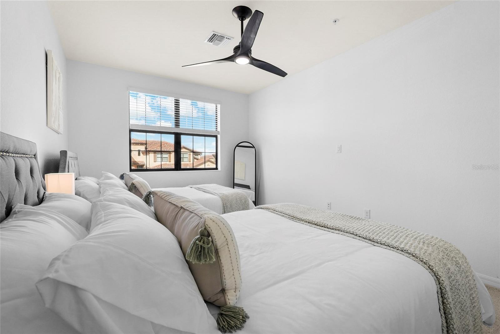 Welcome to refined Florida living in Gran Paradiso, a 24 hour guard gated community inspired by Mediterranean elegance and elevated by resort-style amenities. This beautifully maintained second-floor coach home offers three bedrooms and two bathrooms, blending comfort, style, and low-maintenance luxury. Recently repainted in a soft, neutral palette, the residence is move-in ready and provides the perfect canvas for your personal touch. The thoughtfully designed open-concept layout is ideal for both everyday living and entertaining. The kitchen is an entertainer’s dream, featuring granite countertops, a spacious center island, custom backsplash, and cabinetry with abundant storage. Hurricane-impact windows and doors throughout the home provide peace of mind and enhanced energy efficiency. The primary suite serves as a private retreat with sliding glass doors leading to a private screened lanai overlooking a tranquil preserve, two walk-in closets, and a spa-inspired en-suite bathroom with dual vanities and a seamless glass walk-in shower. A split floor plan enhances privacy, with two spacious guest bedrooms located on the opposite side of the home—each offering walk-in closets and generous storage. A full-size laundry room is thoughtfully designed with additional cabinetry for organization, while under-stair storage provides added convenience and functionality rarely found in coach homes. Additional highlights include a two-car garage with dedicated golf cart space, perfect for embracing the community’s resort-style lifestyle. Gran Paradiso spans over 1,000 acres and offers an impressive clubhouse, resort-style pool, fitness center, yoga studio, sauna, tennis and pickleball courts, scenic preserves, and a full-time activity coordinator who curates a vibrant social calendar. This exceptional residence presents a rare opportunity to enjoy elegant, carefree living within one of Wellen Park’s most desirable gated communities.