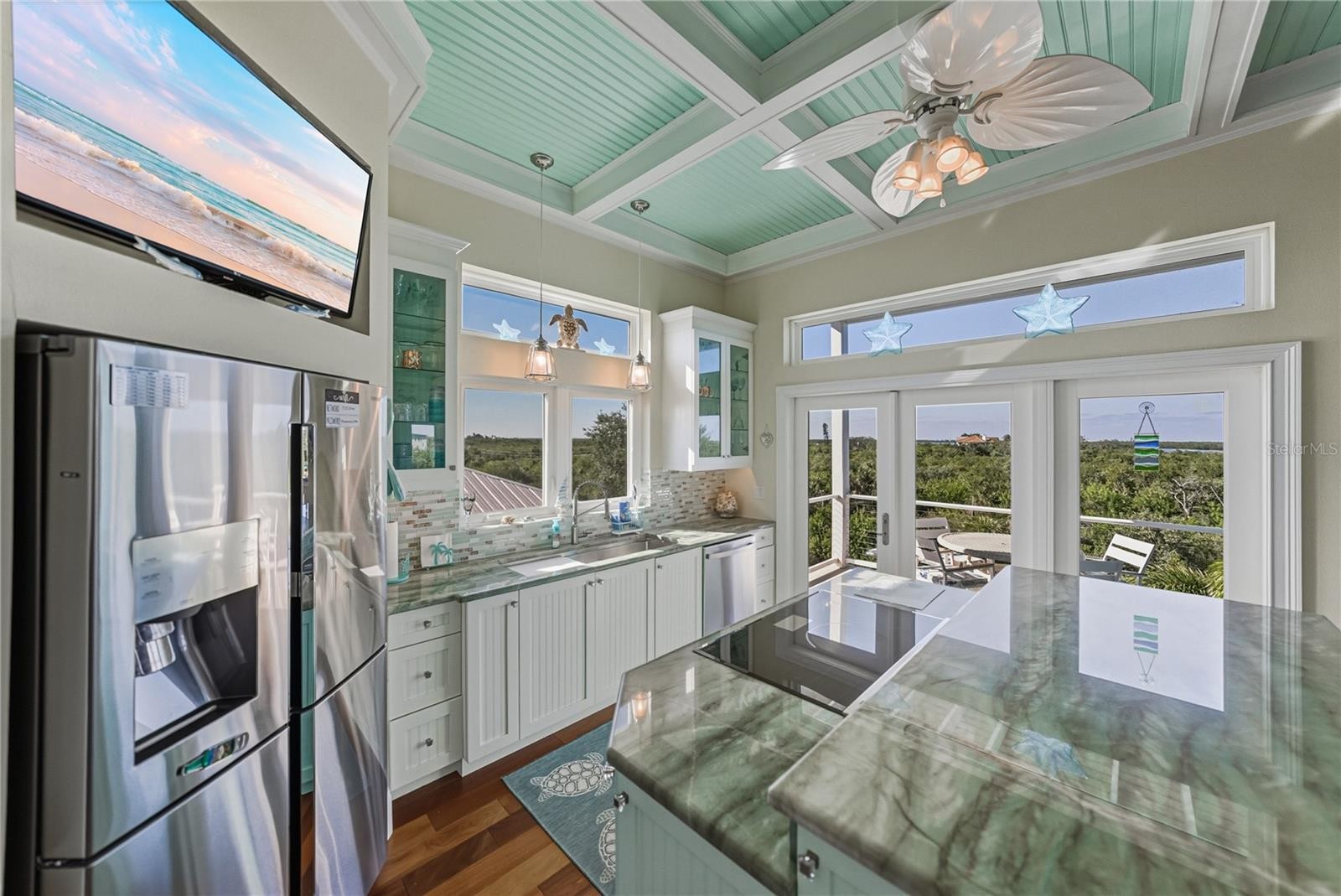 Welcome to an exceptional coastal retreat in the sought-after waterfront community of Terra Ceia, where refined craftsmanship, thoughtful design, and true Florida boating lifestyle come together in perfect harmony. Custom-built in 2020, this four-bedroom, four-bathroom, three-story residence with elevator and a three-car garage offers a rare blend of luxury, functionality, and timeless coastal elegance. From the moment you arrive, the home makes a striking impression with its metal roof, paver driveway, lush landscaping, and a welcoming breezeway that leads to the front double doors with leaded-glass detail. Step inside and you are immediately greeted by travertine floors and Brazilian teak stairs and flooring on all levels. The open-concept main living area seamlessly connects the living room, dining space, and kitchen, with expansive windows framing serene water views and filling the home with natural light. The dining area features beautiful built-in cabinetry and a dry bar, perfect for hosting intimate dinners or larger gatherings. The kitchen is a true showpiece, anchored by a large two-tiered island with bar-style seating and finished with Brazilian quartzite countertops, custom cabinetry, and a walk-in pantry. Coastal teal and white accents, a mosaic tile backsplash with seashell inlay, professional series stainless steel appliances with integrated technology, a built-in ovens, and glass-front cabinets add personality and sophistication. French doors open to a private balcony, ideal for enjoying morning coffee, alfresco meals, or a sunset cocktail with water views as your backdrop. The primary suite is a peaceful retreat, highlighted by a bay window with built-in bench seating and storage, oversized cedar-lined dual walk-in closets with custom organizers, and a beautifully appointed en suite bathroom featuring separate vanities and a bespoke walk-in shower with marble tile and multiple shower heads. A private elevator provides effortless access to all levels of the home, including the additional floors that offer two more bedrooms, 2 full bathrooms, and a dedicated home office—perfect for today’s flexible lifestyles. The in-law suite with its own entrance, private balcony, bathroom, and kitchenette offers incredible versatility for guests, multigenerational living, or a private workspace. Outdoors, the property truly shines. A separate waterfront outdoor pavilion and the backyard is an entertainer’s dream and a personal oasis, complete with an outdoor kitchen, sparkling saltwater pool, and a private 60-foot boat dock with canal access that leads directly out to Tampa Bay. Adding to its appeal, this home was built to the latest hurricane standards, with a metal roof and impact-rated windows. Enjoy convenient access to Tampa International Airport, Sarasota/Bradenton International Airport, with a mix of local and national dining and shopping options. There are quick connections to I-75, I-275, US 41, US 301, and US 19. This is a rare opportunity to own a meticulously designed waterfront home that delivers luxury finishes, exceptional flexibility, and premier boating access in one of Florida’s most distinctive and desirable coastal communities.