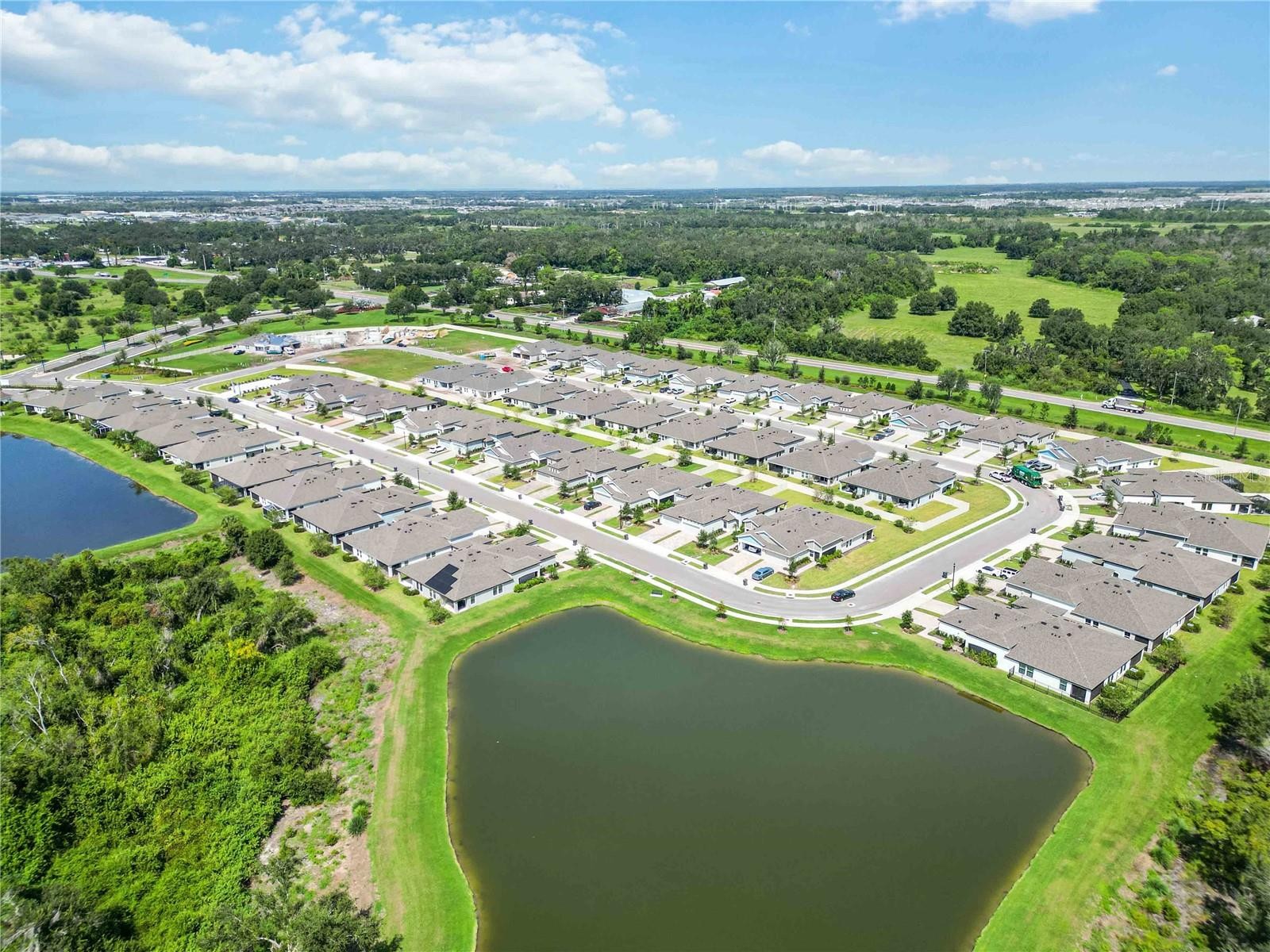 BETTER THAN NEW!! Only lived in for one year, this like new villa is loaded with upgrades that are NO LONGER offered by the builder, including GE Café series appliances, FULL 1-inch high-grade Quartz countertops (not half inch), PREMIUM floor tile (not vinyl tile), Upgraded Kitchen Cabinets, and the kitchen vent which exhausts outside, not back into the kitchen! The plentiful windows and 12-foot sliding door fill the 1,534 square feet of living space with natural light. The VAULTED CEILINGS throughout the villa ensure each space feels open and airy. The deluxe kitchen is LOADED with modern features just waiting for you to enjoy. 42-inch cabinets with crown molding, a coffee bar, under cabinet lighting, glass tile backsplash, large island, and a walk-in pantry just to name a few. The large owner’s suite offers a luxurious en suite with dual sinks, quartz countertops, makeup vanity, oversized walk-in shower with bench, and an expansive walk-in closet. Family and guests will enjoy the two additional bedrooms and beautifully designed guest bathroom. A convenient laundry room with NEW GE Profile washer and dryer is located inside next to the convenient “drop zone”. The spacious two car garage has a professionally finished epoxy coated floor and is plumbed for a water softener. Outside, you will enjoy MAINTENANCE-FREE living, a park-like conservation area across the street, a partially fenced backyard and generous sized lanai that faces North which keeps it in the SHADE throughout the day. Crosswind Point amenities include a community pool with cabanas and a playground. Additional amenities are under construction at the new Crosswind Ranch which connects to Crosswind Point.