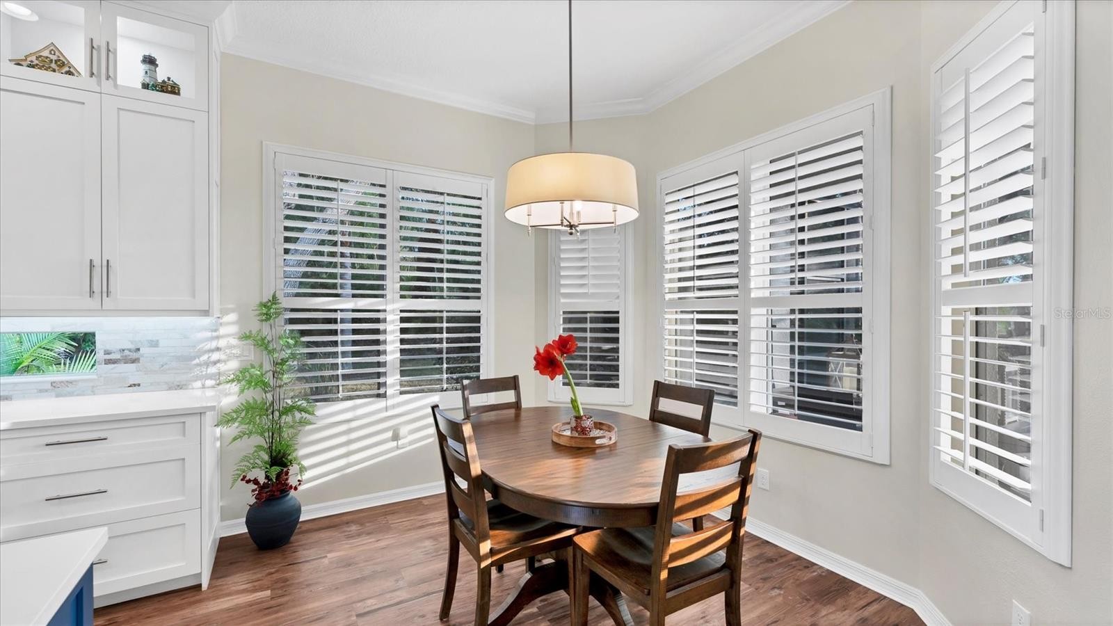 Welcome to effortless Florida living in this beautifully renovated Neal-built home, on a lush, private corner lot in the desirable Thornhill neighborhood of Lakewood Ranch Country Club. Offering two spacious bedrooms, a versatile den that easily functions as a third guest room, and two baths, this maintenance-free residence combines refined classic style with modern comfort and functionality. From the moment you arrive, the home’s curb appeal is undeniable, framed by mature landscaping and directly on the 3rd hole of the Kings Dune Golf Course, it offers serene golf views and exceptional privacy. Go through double glass front doors into a light-filled foyer that opens to a custom-designed sitting area featuring a dry bar with shaker cabinetry, ambient upper and under lighting, and a built-in beverage cooler, ideal for entertaining. The great room is a warm, welcoming space with a custom-built entertainment center, lit floating display shelves and abundant storage. The open-concept kitchen is a showstopper, with Cambria quartz countertops, GE Profile stainless steel appliances, glass-front upper cabinets, under-cabinet lighting, abundant storage and a spacious island. A newly constructed butler’s pantry provides additional shelving and drawers to keep countertops clutter-free. The expansive primary suite features a tray ceiling, two generous walk-in closets with built-in organizers, and a fully renovated spa-inspired en-suite bath with dual vanities, LED-lit mirrors, a large walk-in shower and a linen closet. Across the home, the guest bedroom and updated guest bath offer comfortable accommodations for visitors. The den, just off the entry and enclosed with French doors, is ideal for a home office or third bedroom. Sliding glass doors in the great room open to a paver lanai overlooking the sparkling pool and peaceful golf course views, creating an ideal space for indoor-outdoor living. Thoughtful design features throughout the home include luxury vinyl plank flooring, crown molding, plantation shutters, and updated lighting and ceiling fans. The two-car garage includes an extended storage area, a new Wi-Fi-enabled opener and new rollers installed in 2025. The exterior was freshly painted in 2023, and the interior was repainted in 2022, giving the home a fresh, modern feel. The home features a new HVAC system installed in 2022, and a gas water heater replaced in 2021, ensuring comfort and efficiency for years to come. Enjoy the security, beauty and lifestyle of this gated, maintenance-free community in Lakewood Ranch Country Club. Whether you're seeking a full-time residence or a seasonal retreat, this home is move-in ready and waiting to be enjoyed.