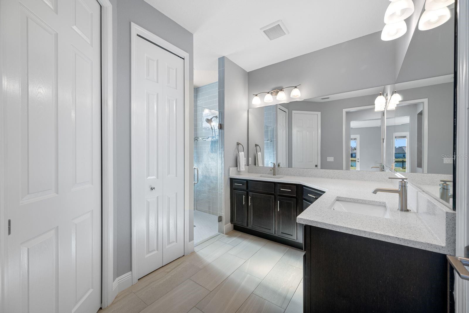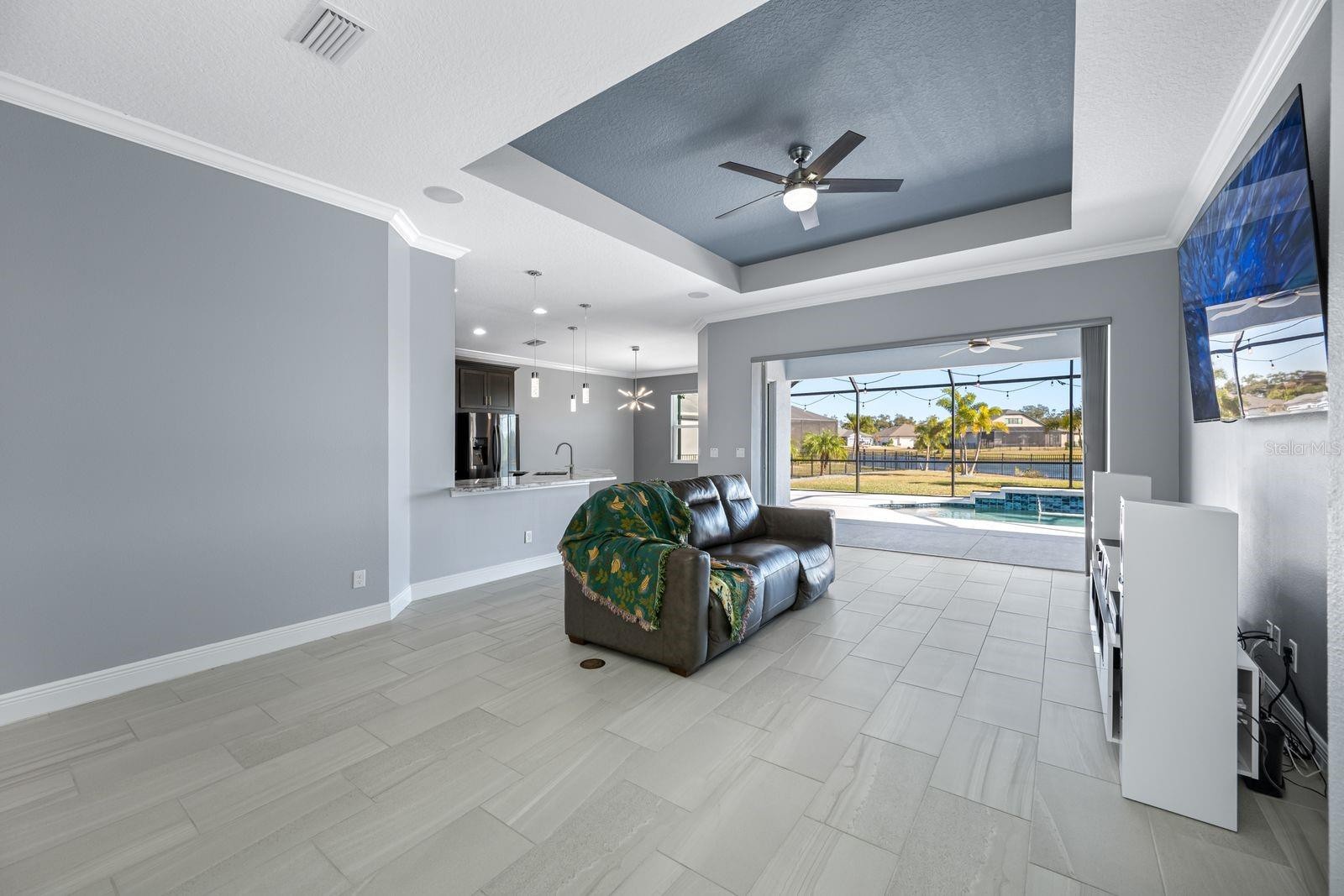 Welcome to a truly exceptional home in Cross Creek, perfectly positioned on what may be the best lot in the neighborhood—the only oversized homesite on the large pond, offering expansive water views and unmatched privacy. Designed for seamless indoor-outdoor living, the back of the home features triple pocket sliding glass doors that open completely to the screened pool, creating a stunning panoramic view of the lake and an ideal space for entertaining or relaxing. The screened front entry allows you to leave the front door open and enjoy a refreshing cross-breeze straight through the home to the pool, enhancing Florida living at its finest. For added convenience, the home includes a dedicated pool bath, perfect for guests and everyday outdoor living. This home also enjoys a convenient side view of the clubhouse and pickleball courts, with easy access to the community amenities, pool, and mailboxes. An added bonus—Cross Creek has its own traffic light, making neighborhood entry and exit effortless. The home has been thoughtfully upgraded with a mini-split HVAC system in the primary bedroom, a whole-house water filtration system, and triple UV central HVAC filtration. Additional enhancements include a no-see-um pool cage, professionally installed pavers surrounding the pool cage and side yard, designer curbing that surrounds most of the property, and extensive electrical upgrades. These include a 50-amp EV charger with charger installed, a garage refrigerator outlet, restaurant-style pool lighting, 4 rooms professionally wired for entertainment systems with adjustable TV mounts, and above-cabinet accent lighting. The kitchen is complemented by a new oven and microwave. This is a rare opportunity to own a premium waterfront homesite paired with meaningful upgrades and a prime location within one of Parrish’s most convenient communities. Schedule your private showing today—homes like this do not come around often.