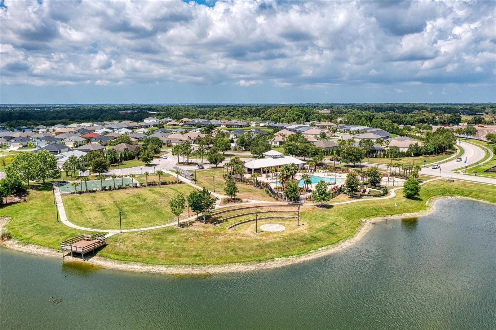 One or more photo(s) has been virtually staged. Welcome to your dream home! This is a true gem with exceptional curb appeal and the right amount of luxurious finishes and upgrades to make living more comfortable. You will enjoy this spacious 4-bed, 3-bath residence with a 3-car garage that perfectly blends elegance, functionality, and modern design. With no front neighbors and a beautiful pond view, this home offers both privacy and tranquility. Step inside to find 12-ft ceilings in the main living areas & 10-ft ceilings in all other rooms, creating an open and airy feel throughout. Luxury vinyl plank flooring and upgraded baseboards flow seamlessly through the main living space, adding a touch of sophistication. The chef’s kitchen is a true showstopper — complete with quartz countertops, stainless steel appliances, built in oven and microwave, gas range with vent hood, farmhouse sink, tile backsplash, upgraded cabinets with crown molding, and under-cabinet lighting. The massive L-shape island opens to the family room — providing plenty of seating, and making it perfect for entertaining. Off the kitchen, enjoy the breakfast nook and a large walk-in pantry, with a landing area for additional cabinetry and counter space. The laundry room features upper cabinets for extra storage. The spacious family room provides plenty of room for gatherings, while an adjacent flex space can serve as a home office, formal dining area, or kids’ playroom. Your master suite is a private retreat featuring a luxurious en-suite bathroom with his and hers vanities with upgraded cabinets and quartz countertops, a garden tub, a large walk-in shower with a built-in bench and frameless glass door, tile to the ceiling, accent niche, and separate water and linen closets. The walk-in closet includes custom built-in shelving & storage. All 3 additional bedrooms are generously sized with custom built-in closets. The secondary bathrooms have upgraded cabinets and quartz countertops, tiled showers to the ceiling — one with a frameless glass door and the other with a tub/shower combo, and their own dedicated linen closets. Step outside to your private backyard, enhanced by lush palms for privacy. The covered lanai includes an outdoor kitchen with natural gas built-in BBQ and a mini fridge. The yard is large enough to add a pool - drawings & virtual renderings are available. The upgraded 3-car garage has a 2 ft extension, perfect for larger vehicles, custom epoxy flooring, a mini-split A/C system (for a home gym or workshop), 4 large overhead storage racks, a whole-house water softener system, and a side door for easy yard access. Additional highlights include a 10-kilowatt owned solar panel system - 25 panels. All windows and doors are impact rated…no hassling with shutters! Cross Creek residents get to enjoy resort-style amenities: a zero-entry pool & splash pad, covered BBQ area, playground, fishing dock, basketball & pickleball courts and dog park. Cable, internet and irrigation are included with HOA fees. You will be walking distance to a highly rated elementary school and are also zoned for the recently built Parrish Community High School. Cross Creek is minutes from shopping, dining, Fort Hamer boat launch, and 2 new county parks. With easy access to I-75, you can be at the beaches, Tampa, St. Pete, Sarasota and 2 major airports within 45 minutes. This turn-key home truly has it all—space, luxury, upgrades, amenities, and location! Don’t miss the opportunity to make this dream home your reality!