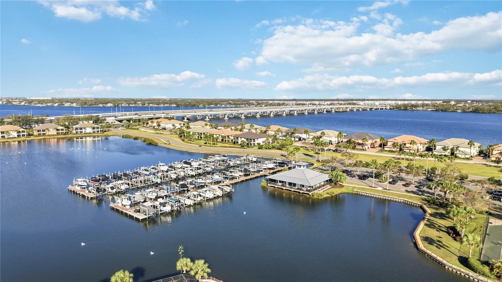 One or more photo(s) has been virtually staged. Bathed in natural light, this spacious upstairs residence offers 3 bedrooms, 2 bathrooms, plus a versatile den, accessible by both a private in-unit elevator and an elegant open staircase— with stair flooring refreshed in 2025—enhancing the home’s bright, airy ambiance. The den, framed by French doors, features a custom Pottery Barn wood shelving wall unit that conveys—perfectly suited for a home office, library, or flexible living space. Enjoy confidence and comfort with a newly installed 50-gallon water heater (2026) and a high-efficiency HVAC system installed in December 2024 (7 kW, 50 amps)—professionally maintained by Cool Today with a transferable service plan for the next owner, delivering efficiency and peace of mind from the moment you move in. Step onto the screened lanai and unwind while taking in tranquil views of the Manatee River. Recently enhanced with upgraded flooring and automatic hurricane screens installed approximately two years ago and professionally maintained by Shade & Shield, this outdoor retreat blends beauty with protection. Additional shutter rods are included for added preparedness during power outages. Inside, thoughtful upgrades elevate every space, including all-wood cabinetry, Whirlpool® appliances, tray ceilings, plantation shutters, and ceiling fans throughout. The primary suite serves as a private retreat featuring new tile flooring, an expansive ensuite bath with added shower door and safety handrail, and an impressive custom walk-in closet with extensive shelving, complemented by additional custom storage in the linen closet. The secondary bedrooms provide comfortable accommodations, including enhanced custom closet shelving in the third bedroom for improved organization. A convenient coat closet near the elevator adds everyday functionality. On the ground level, the automatic two-car garage features a hurricane-braced garage door, speckled epoxy flooring, adjustable shelving, and elevated cabinetry. The laundry room includes a utility sink along with a Whirlpool® washer and dryer for added convenience. Attic access is available from both the garage level and upstairs via the primary suite. Situated within Tidewater Preserve, a premier gated waterfront community, residents enjoy resort-style living with a private marina offering direct access to the Manatee River—ideal for boating enthusiasts. Amenities include multiple pools, fitness centers, walking trails, kayak launches, and vibrant social gathering spaces, all surrounded by protected natural beauty and conveniently located near Lakewood Ranch, I-75, and the Gulf Coast’s world-renowned beaches. All information provided is deemed reliable but is not guaranteed and should be independently verified by any interested party. Data has been compiled from various sources and may include input from the seller, public records, or the Multiple Listing Service (MLS); however, neither the broker, listing agent, nor the MLS guarantees its accuracy.