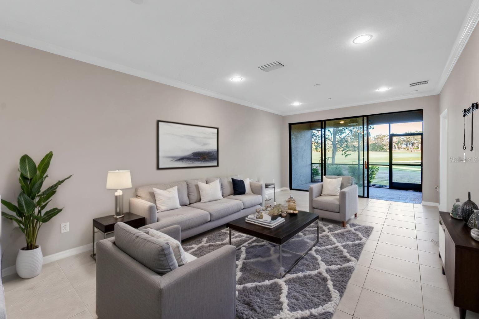 One or more photo(s) has been virtually staged. Ideally situated behind the gates of Esplanade Golf & Country Club, this 2018-built Avanti VII ground-floor unit offers stunning views of the 10th fairway and includes a deeded full golf and club membership. Spanning 1,528 square feet, the open-concept design features 2 bedrooms, 2 bathrooms, and a versatile flex room. As you enter, you'll be greeted by neutral colors, high ceilings, and brightly lit living areas, where ceramic tile floors flow seamlessly from the entryway into the generously sized great room. Tall sliders overlook the inviting outdoor space, enhancing the natural light and beautiful views. The expansive chef’s kitchen is perfect for cooking and entertaining, featuring 42-inch wood cabinets, stainless steel appliances, granite countertops, a breakfast bar, and a closet pantry. Adjacent to the kitchen and great room, the flex space offers endless possibilities—whether as a dining room, den, or home office. The Primary Suite is a true retreat, with a private en-suite bathroom that includes dual sinks, a large shower, and two generous walk-in closets. The well-organized laundry room includes additional cabinets and extra storage space. The unit also boasts a private one-car enclosed garage with storage and hurricane storm shutters. Residents of Esplanade Golf & Country Club enjoy an exceptional range of resort-style amenities, including a state-of-the-art fitness center, a full-service spa, tennis and pickleball courts, bocce ball, walking trails, a dog park, and a culinary center. The resort atmosphere is further enhanced by a lagoon-style pool with private cabanas, a resistance pool, and a Tiki Bar restaurant. Esplanade is perfectly located just minutes from I-75, shopping, dining, and entertainment at Lakewood Ranch Main Street and University Town Center Mall, offering both convenience and a vibrant lifestyle. The community also provides water, pest control and shrub maintenance, as well as the included full golf and club membership in the HOA fees. With everything you need for a carefree lifestyle, this condo represents the pinnacle of upscale living, combining natural beauty with modern conveniences. Experience paradise at Esplanade Golf & Country Club, where luxury meets leisure in Lakewood Ranch!