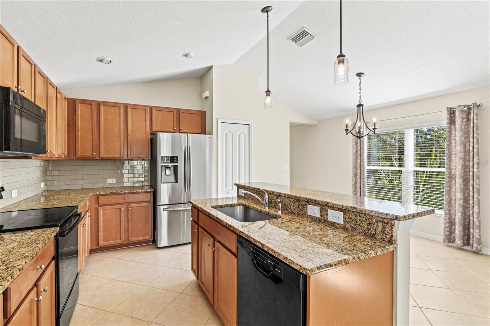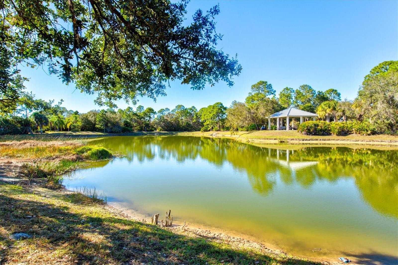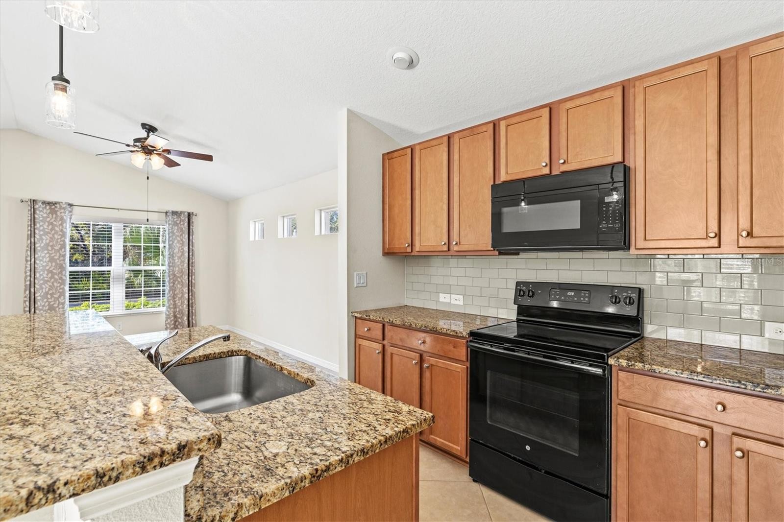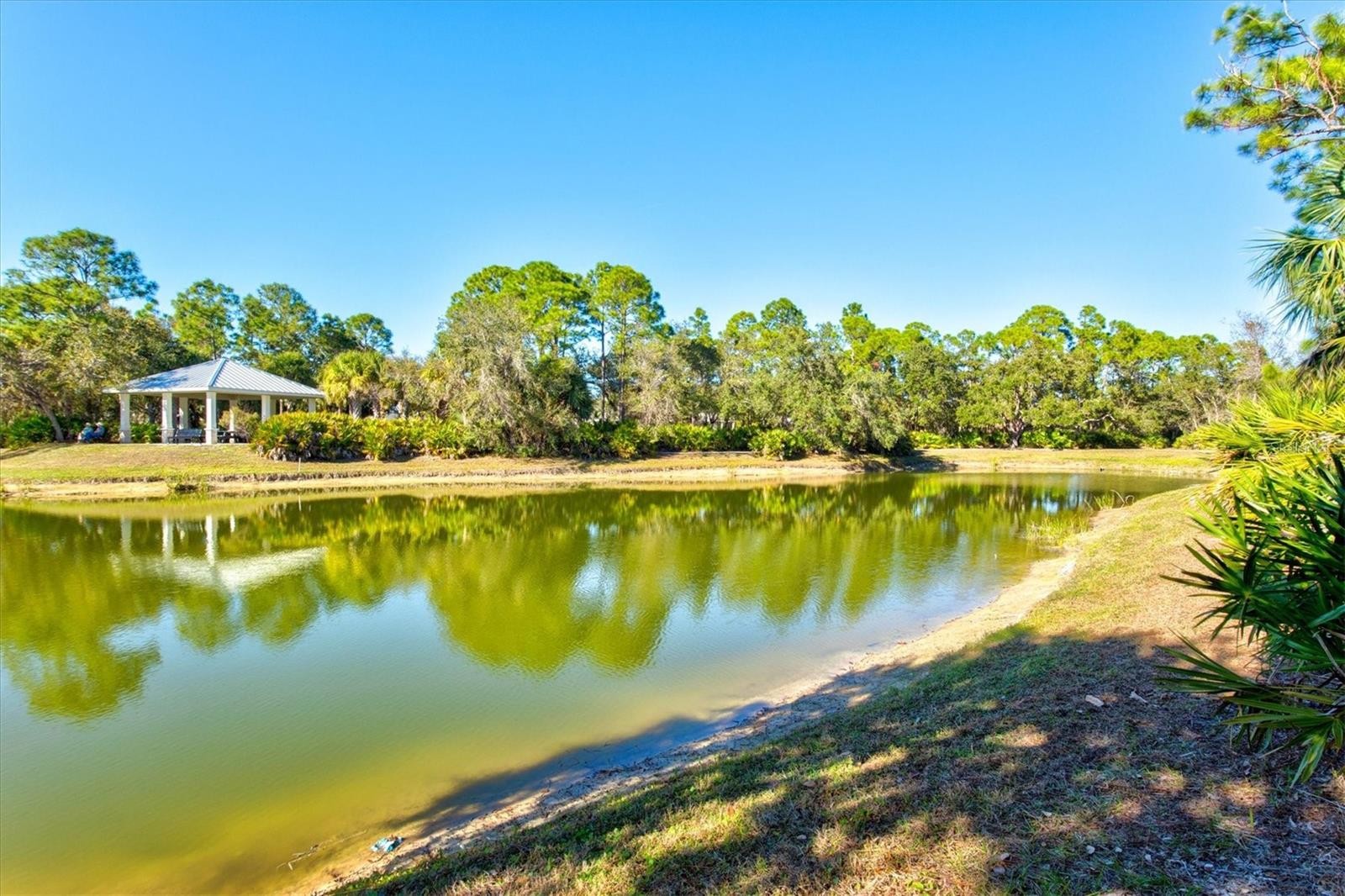 Enjoy peaceful pond views and glowing sunsets from the front porch of this picture-perfect cottage, ideally situated on a desirable corner lot within the gated, resort-style Grand Palm community. This impeccably maintained two-bedroom, two-bath home with an attached two-car garage is spotless, move-in ready, and filled with abundant natural light throughout. Inside, the open and airy floor plan seamlessly connects the great room, dining area, and kitchen, creating an inviting space ideal for both everyday living and entertaining. The bright kitchen features granite slab countertops, a stone backsplash, stainless steel appliances, a closet pantry, and a spacious breakfast bar with pendant lighting. Maple cabinetry with crown molding adds warmth and timeless appeal. The spacious owner’s suite offers room for a sitting area, a walk-in closet, and a well-appointed ensuite bath. A second bedroom and full bath provide comfort and flexibility for guests or a home office. Additional highlights include volume ceilings, neutral tile in the main living areas, brand new carpet in the bedrooms, faux wood blinds, fresh interior paint, and breathtaking front-facing views of the water and surrounding natural landscape. The attached two-car garage offers direct access to the home and features charming exterior coach lighting, while the interior laundry room includes shelving for added convenience. Located just a short walk from the clubhouse, this home provides easy access to Grand Palm’s exceptional amenities, including a resort-style pool, splash park, tot lot, fitness center, and an on-site activities director offering year-round programming. Outdoor enthusiasts will love the adventure lake with kayak and canoe launch, miles of scenic walking and biking trails, multiple dog parks, and beautifully maintained lakes and green spaces throughout the community. Enjoy true maintenance-free living in one of the area’s most sought-after communities, where location, lifestyle, and comfort come together beautifully.