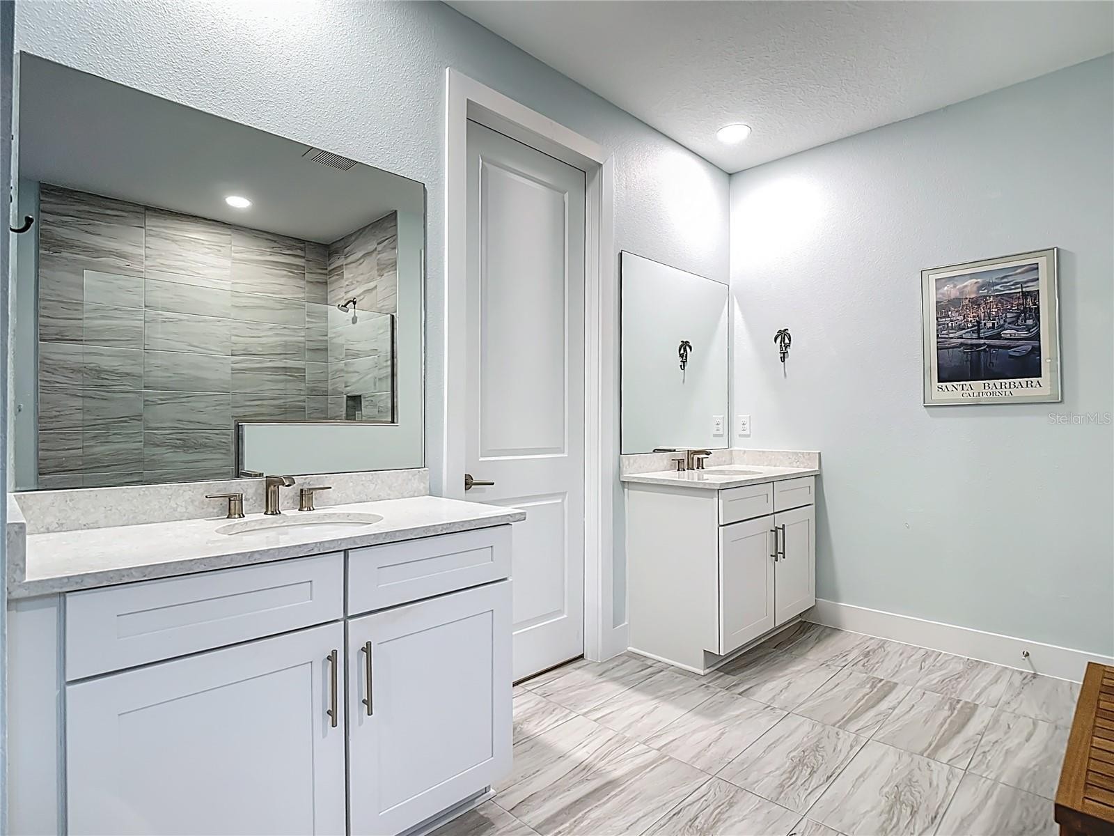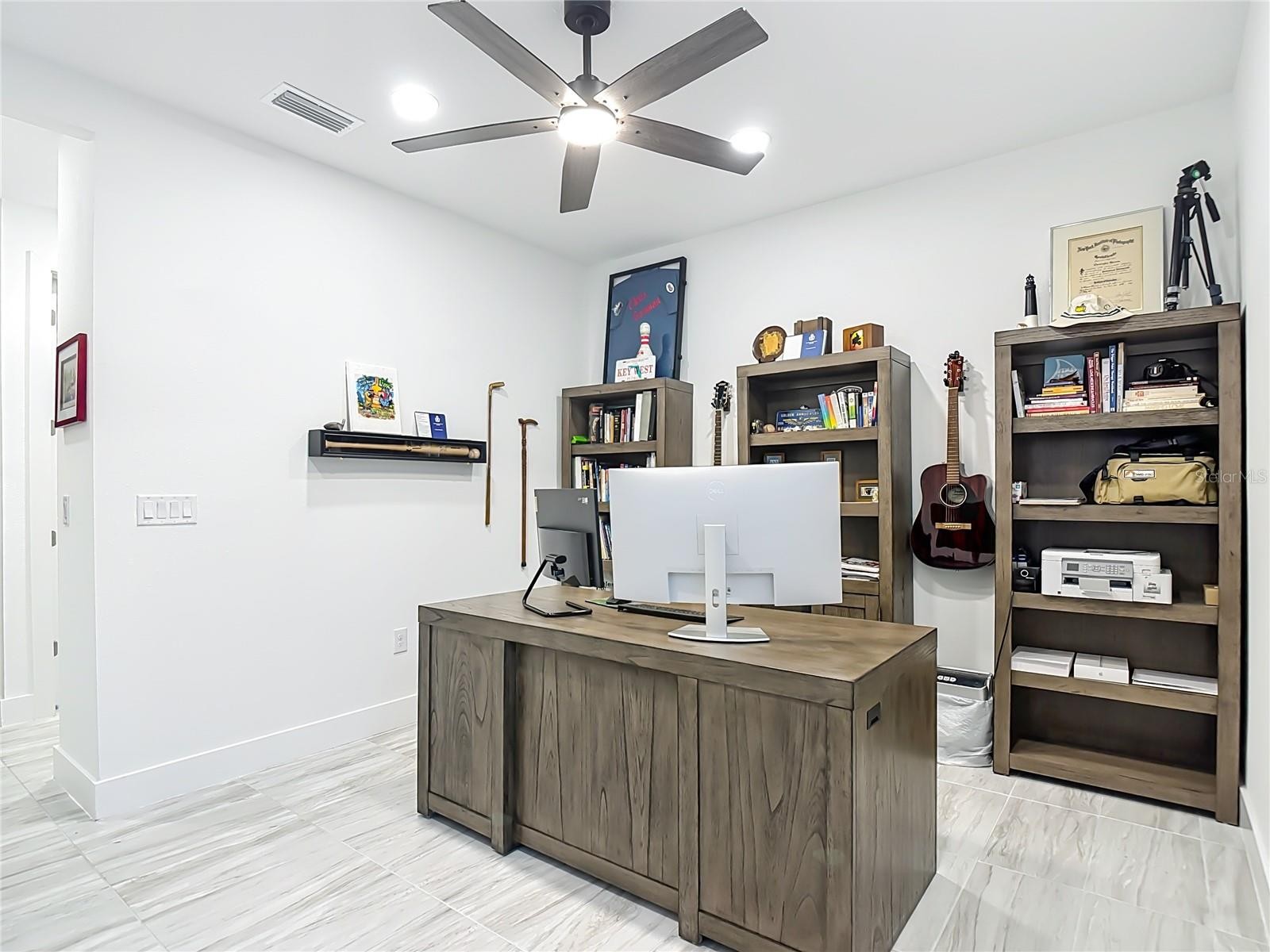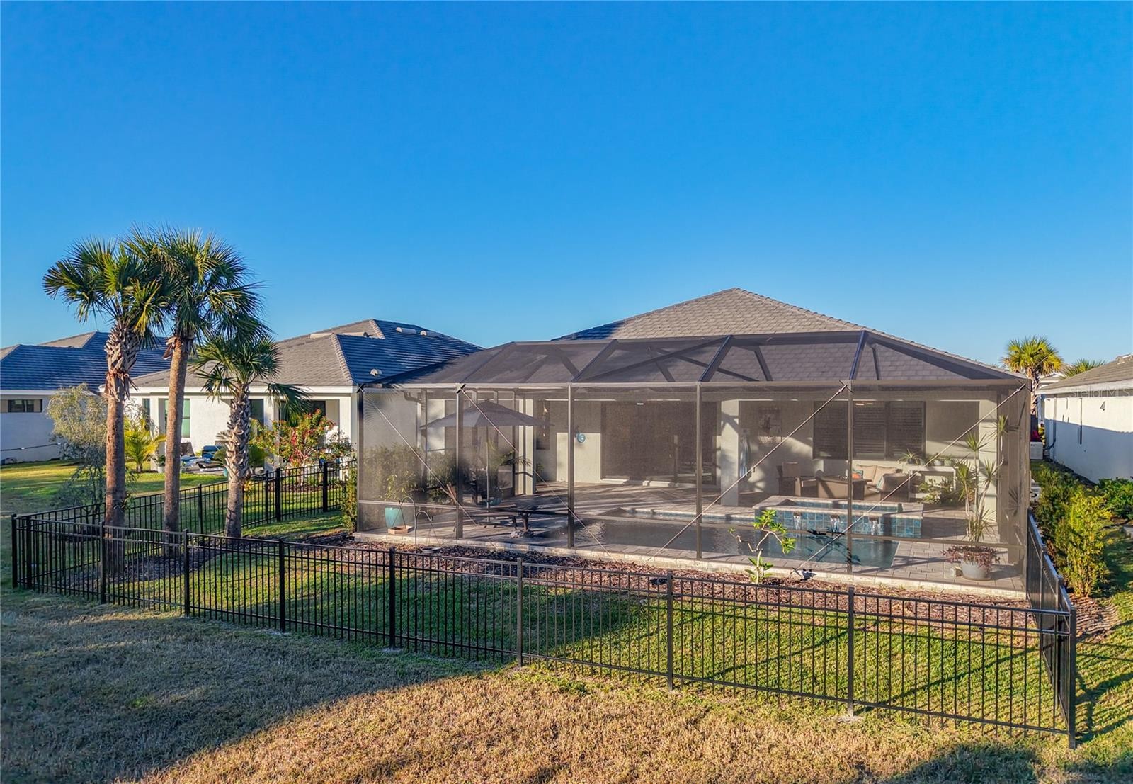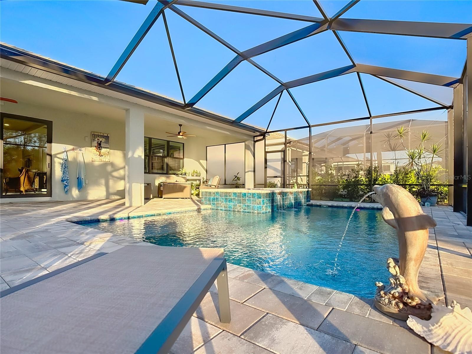 Welcome to an exceptional expression of refined Florida living within the exclusive, gated enclave of Solstice at Wellen Park. Crafted by luxury builder Toll Brothers, this impeccably appointed residence offers 2,591 square feet of luxurious living space where thoughtful design, quality craftsmanship, and timeless elegance converge. The home features three generously sized bedrooms, a versatile den framed for doors to allow a true four-bedroom option, two-and-a-half beautifully appointed baths, and a full three-car garage with epoxy flooring. From the moment you enter, elegant all-tile flooring throughout (no carpet) creates a cohesive, contemporary aesthetic. At the heart of the home is a striking chef’s kitchen featuring crisp cabinetry, quartz countertops with waterfall quartz backsplash, and a large statement island with front-facing storage. The upgraded appliance suite includes a six-burner natural gas range with stainless-steel vent hood, LG French-door refrigerator, and built-in wall oven - ideal for both entertaining and everyday living. Pull-out shelving in lower cabinets and custom walk-in pantry enhance both function and presentation. The living room and breakfast nook have motorized window shades for effortless light and privacy control, while the high-end laundry room blends form and function with added cabinetry, utility sink, upgraded front-load washer and gas-powered dryer with pedestal bases. The home also includes a natural gas tankless hot water heater for efficient, on-demand hot water. The primary suite offers a serene retreat with plantation shutters, tray ceiling, and a spa-inspired en suite bath featuring a frameless glass walk-in shower, split double vanities, and an expansive walk-in closet with custom-built storage. Outdoor living truly shines - A heated saltwater pool is paired with an oversized spa featuring a dramatic waterfall 'scupper' and LED color-changing lighting. The expansive covered patio spans approx. 50 feet and includes three elegant ceiling fans, providing exceptional comfort and shade. A privacy screen creates an intimate outdoor lounge, and the space is pre-plumbed for a future outdoor kitchen. Beyond the enclosure, peaceful preserve and pond views provide a tranquil backdrop, while a fully fenced yard adds convenience for pets. Built for peace of mind, the home includes a tile roof, hurricane-impact windows and doors, is located outside the flood zone, and is pre-piped for a future whole-house natural gas generator. Reasonable community fees provide access to a resort-style pool, fitness center, pickleball, clubhouse, lawn care, irrigation, annual mulch, and internet with basic cable - supporting a low-maintenance, luxury lifestyle. Ideally positioned for both privacy and proximity, Wellen Park offers golf-cart-friendly living, upscale shopping and dining, scenic trails around Grand Lake, and a vibrant calendar of concerts, events, and farmers markets. World-class Gulf beaches and CoolToday Park, home of Atlanta Braves Spring Training, are just minutes away. This stunning residence offers a rare opportunity to own a meticulously curated home within one of Wellen Park’s most sought-after gated communities. As the “Shark Tooth Capital of the World,” Venice’s beaches are famous for their soft sand, clear waters, and the thrill of discovering fossilized shark teeth and shells along the shoreline. Ready for everyday life, elevated to a resort experience? Paradise awaits in this exceptional home!