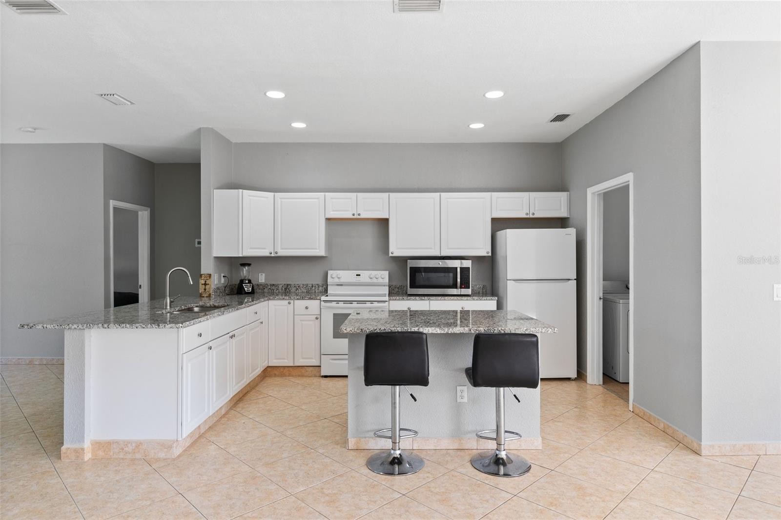 One or more photo(s) has been virtually staged. Located in the growing community of North Port, FL this well maintained home has many recent updates! Walk into the open floor plan adjoining the living room, kitchen and dining area. The spacious living room has an abundance of natural light, with a sliding glass door to access the screened in patio and backyard. The kitchen has new granite countertops and beautiful white cabinets. Eat in kitchen, where you can pull up a chair to the island or the extended counter top by the sink! Just off the kitchen is the dining area with large windows where you can enjoy outdoor views. Spit floor plan offers privacy! The large primary bedroom has a sliding glass door to access the screened in patio. Remodeled 5 pc en-suite primary bath includes new cabinets with granite counter tops and new flooring. On the other side of the home are 2 more bedrooms with a 2nd full bathroom in-between. The 2nd bath has new cabinets with quartz counter tops and new flooring. 10' ceilings! Tray ceilings in the living room, dining room and primary bedroom add depth and visual interest. Ceiling fans and tile floors throughout the home! *New roof 2023 *New AC *New water heater *New water system. No HOA! Not in a flood zone!! Close to shopping, dining, beaches and outdoor activities! Great for seasonal or full-time living!!