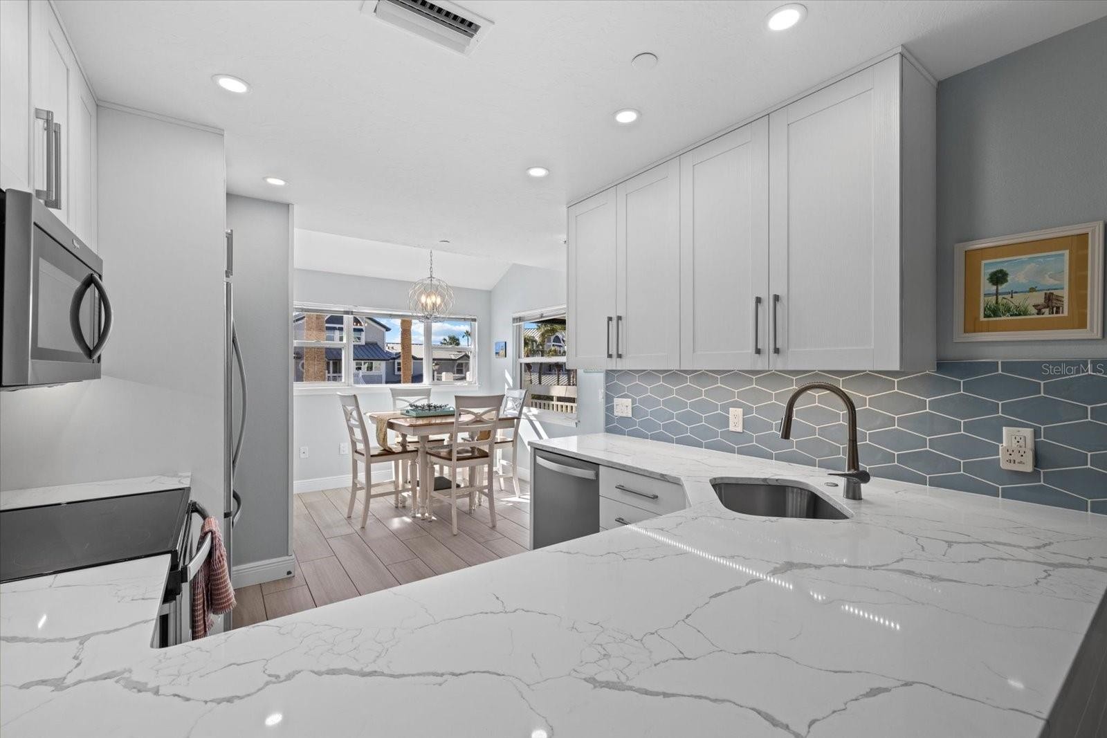 An amazing year-round residence, vacation or investment property! Don't miss this rare opportunity to own a beautifully furnished 3-bedroom, 2-bath + loft unit just steps from world-renowned Siesta Beach with dedicated beach access. Recently renovated, this turnkey residence features a bright open floor plan with wood-look tile, shiplap accents, and raised ceilings in the hallways, kitchen and dining areas, a rare update in the community. The kitchen boasts full height solid wood cabinetry, quartz countertops, stainless appliances, and a charming, windowed breakfast nook. Enjoy multiple dining options including a formal area, bar, and a glass-enclosed lanai, perfect for entertaining. The spacious primary suite opens to a Florida room with tongue and groove wood ceiling overlooking a serene pond and wildlife, with a renovated ensuite featuring dual sinks, walk-in shower, abundant storage, and a large closet. Upstairs includes a versatile loft, two guest bedrooms, and a full bath. Relax on the inviting front porch with views of Siesta’s iconic sunrises and sunsets. Additional perks include a one-car garage, private driveway, and in-unit laundry. Unit has all brand new screens. Located in Gulf & Bay Club Bayside, a gated community with resort-style amenities: two pools, tennis/pickleball courts, clubhouse, fitness center, sauna, fishing pier, walking paths, and BBQ areas. On-site management and a one-week rental minimum make this a standout investment property with income potential of $80k plus. Spend your days enjoying effortless beach access for sunrise coffee, long shoreline walks, and unforgettable Gulf sunsets. When it’s time to explore, Siesta Key Village is just minutes away with favorite restaurants, local shops, and live music—an unbeatable setting to experience Siesta Key at its finest.