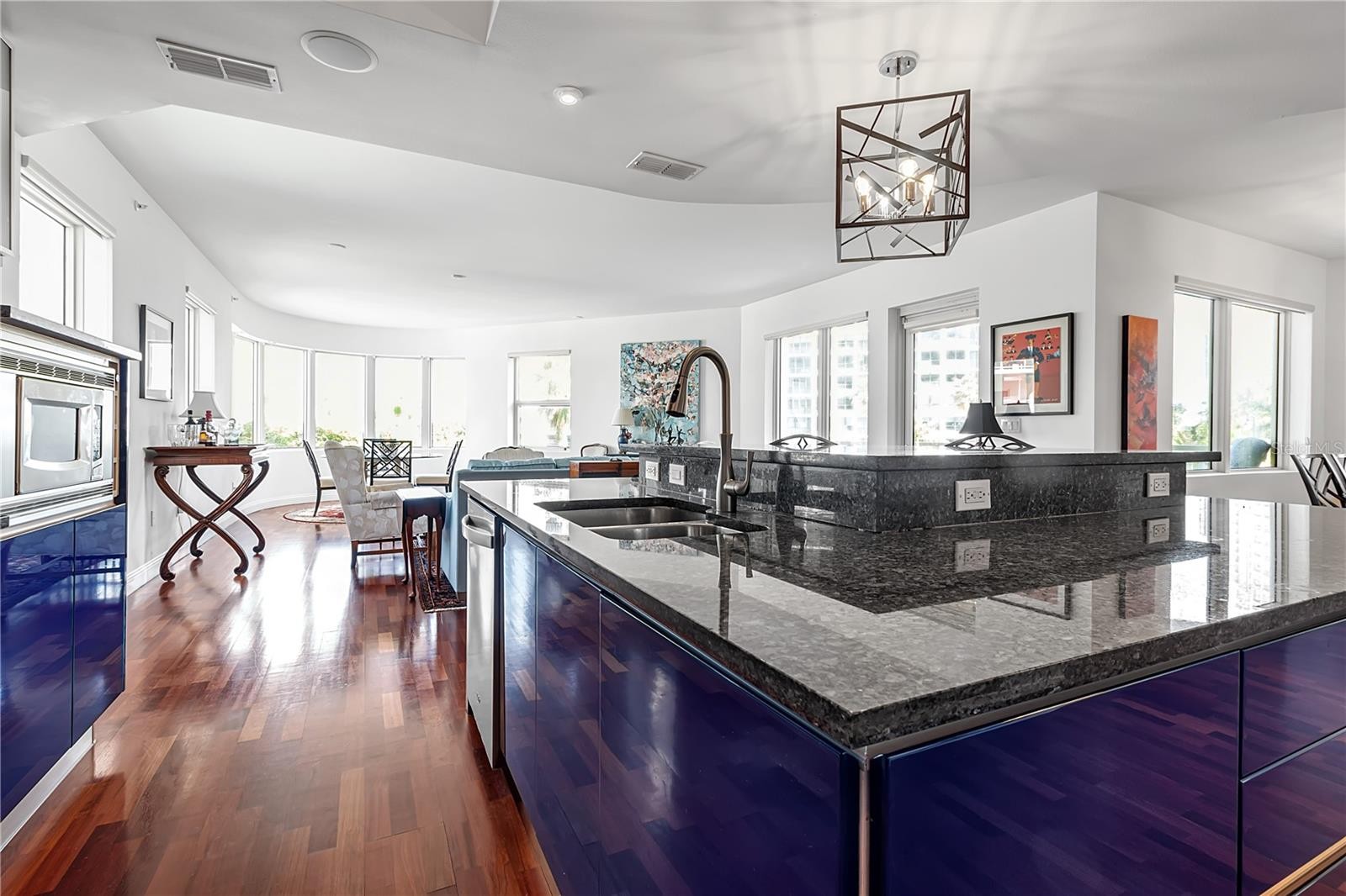 Rare full-floor residence on Golden Gate Point offering exceptional privacy, panoramic water views, and a premier Sarasota location. This 3,000 sq. ft. 4-bedroom, 3.5-bath home occupies the entire third floor of Vista Bay Point, delivering the feel of a single-family residence with luxury condominium convenience. Enter through your private two-car garage and ride your private elevator directly into the residence. Sun-filled living spaces feature walls of windows showcasing sweeping views of Sarasota Bay and the city skyline. The chef’s kitchen includes custom cabinetry, granite countertops, a large center island, premium appliances, and a gas range. The spacious owner’s suite offers a walk-in closet, spa-inspired bath, and a private corridor to a flexible office or bedroom. Two additional guest suites with en-suite baths provide comfort and privacy. Resort-style amenities include a heated pool and spa, fitness center, theater room, billiards, gathering room with bar, and reservable guest suite. Just moments from downtown Sarasota, the marina, St. Armands Circle, and Lido Beach—this exceptional waterfront residence offers luxury, privacy, and an unbeatable lifestyle. The building features a completely refreshed exterior, new windows, a newly remodeled lobby, and a full suite of amenities—making it an ideal downtown residence.