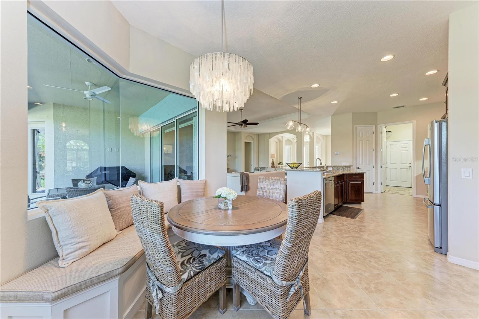 Welcome to this beautiful home located in the highly desirable Gamble Creek Estates, where thoughtful upgrades and everyday comfort come together. The popular Aruba floorplan built by Medallion Homes offers 3 bedrooms, 2 bathrooms, plus a den and a formal dining room, providing flexibility for both daily living and entertaining. From the moment you arrive, you’ll notice the curb appeal, featuring a 3-car garage, front porch, and an elegant decorative glass front door. Step inside to an open floor plan filled with natural light, enhanced by high ceilings, large windows, and quality finishes throughout. Upgrades include plantation shutters, tray ceilings with crown molding, and ceramic tile and luxury vinyl plank flooring throughout the home—no carpet. The kitchen is a standout, offering granite countertops, under-cabinet lighting, stainless steel appliances including a double oven, a breakfast bar, and a cozy eat-in nook complete with a custom bench with storage. Open to the great room, this space is perfect for entertaining or relaxing with family and friends. The primary suite is a private retreat, featuring his-and-hers closets, direct access to the lanai, and an ensuite bath with dual sinks, granite countertops, a garden tub, and a walk-in tiled shower. At the front of the home, double doors lead to the den, providing the ideal space for a home office, gym, or playroom. The den is conveniently connected to the primary suite and has been upgraded with custom built-in bookcases. The split floorplan places the other two bedrooms and bathroom at the opposite end of the home. The laundry room includes extra storage cabinets and a sink for added convenience. The garage is equally impressive with epoxy flooring and multiple overhead storage racks. Step outside to enjoy your screened lanai with pavers and an upgraded clearview screen. The oversized backyard offers plenty of space to install a pool and still have plenty of yard to enjoy. The lush landscaping surrounding the yard offers privacy and tranquility. Additional features include a NEW ROOF IN 2024, irrigation, gutters, generator hookup and Ring cameras. Gamble Creek Estates offers a basketball/pickleball court, walking trails, a low quarterly HOA, and no CDD fees. The property is zoned for highly rated schools, including the recently built Parrish Community High School. It is also minutes from shopping, dining, the Fort Hamer boat launch, and two new county parks. With easy access to I-75, you can be at the beaches, Tampa, St. Pete, Sarasota, and two major airports within 45 minutes. This beautiful home truly has it all—space, luxury, upgrades, amenities, and location! Don’t miss the opportunity to make this dream home your reality!