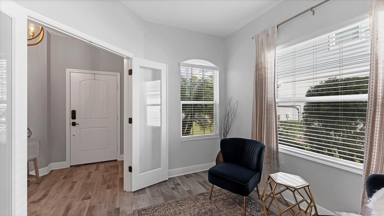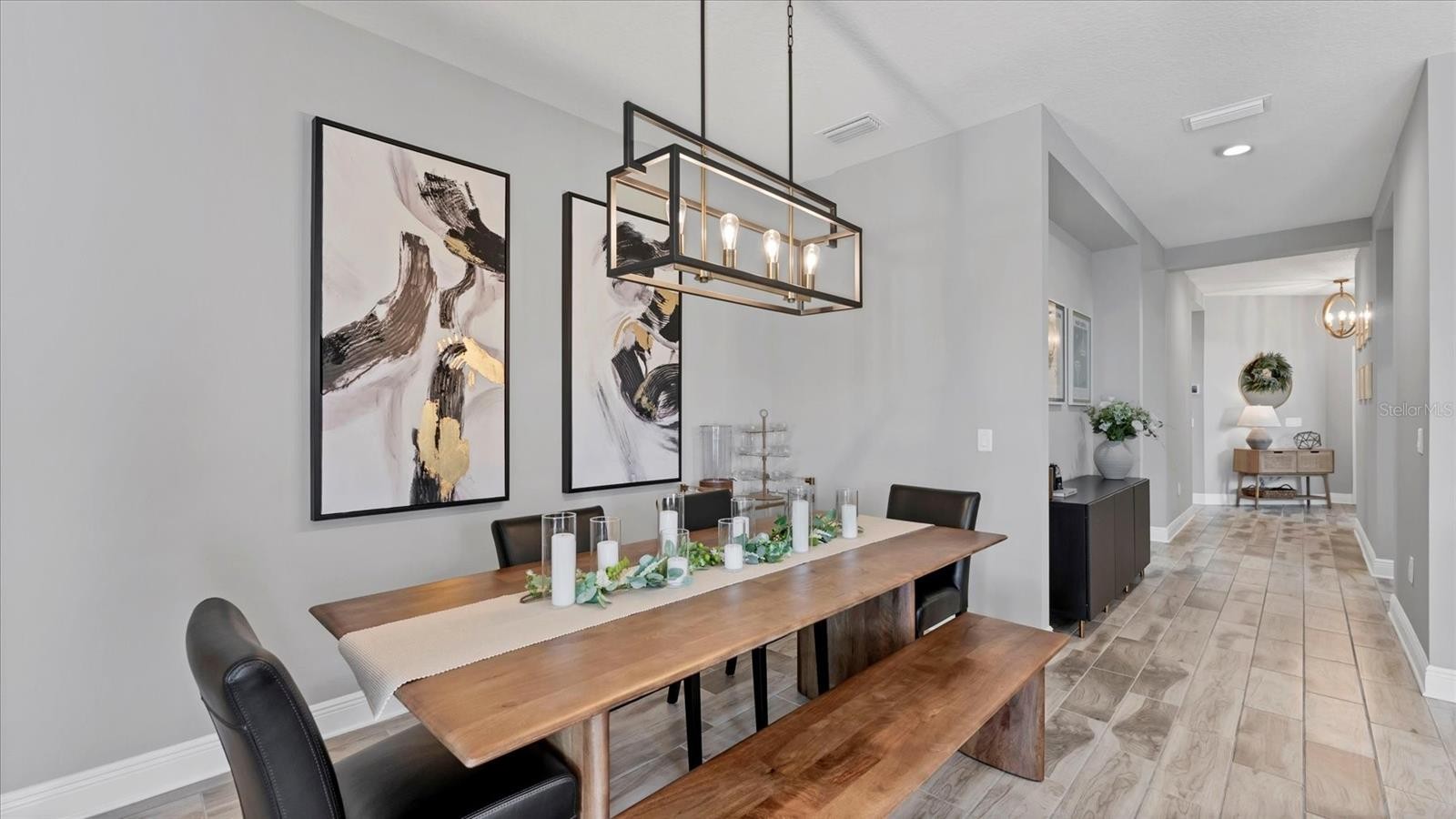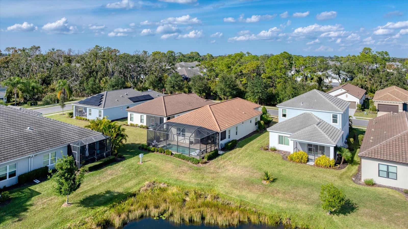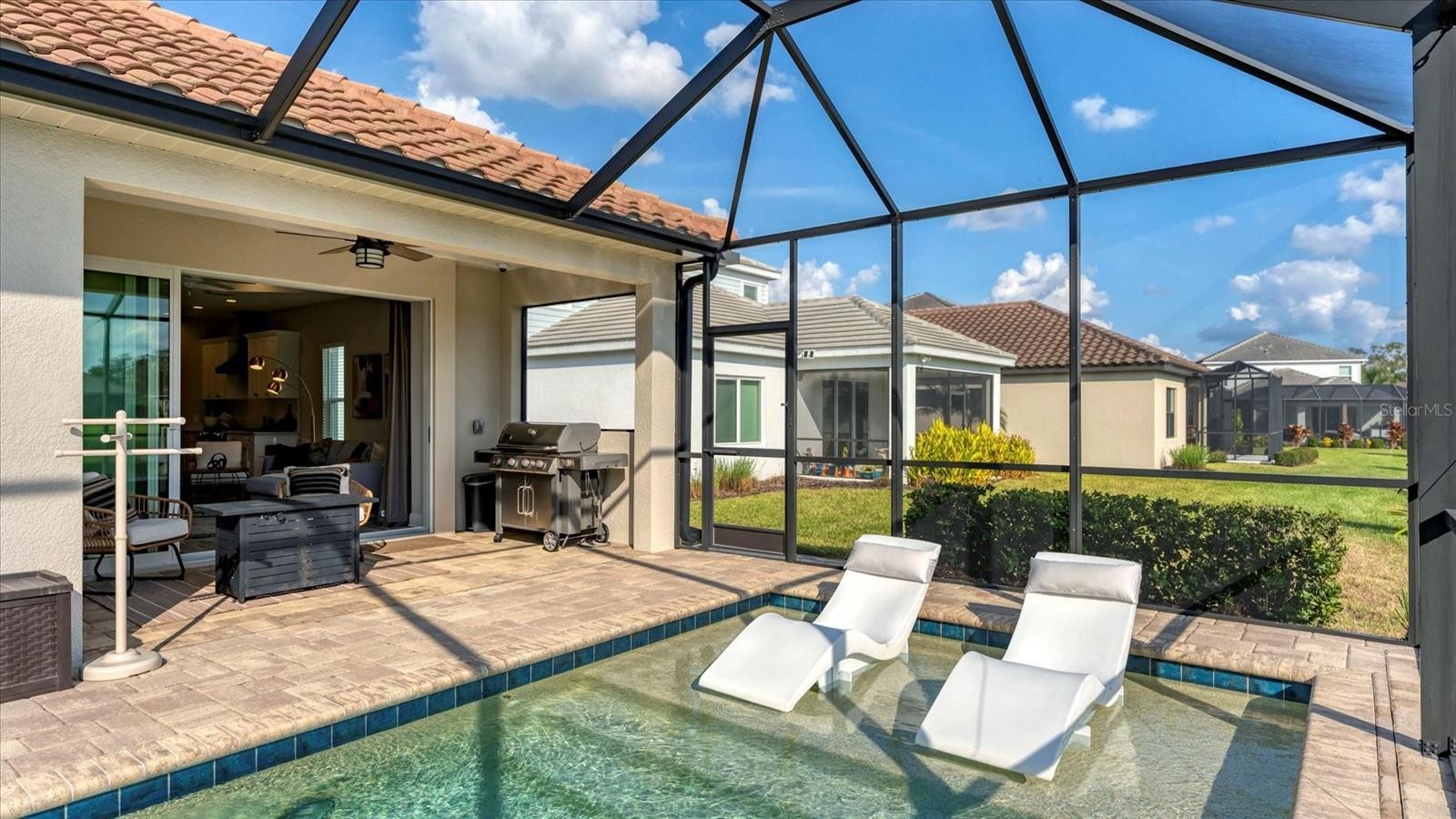 Model perfect living with serene water views in Indigo is now available for the most discerning buyer. Experience the epitome of Florida living in this meticulously maintained, three bedroom, plus a den/office, two bath residence located in the highly sought after gated community of Indigo in Lakewood Ranch, Florida. Spanning just under 1800 square feet of living space, this house features designer finishes and an effortless flow for entertaining. The open concept living area leads directly to your private resort style pool oasis with water features. The sparkling in ground pool and paver lanai boasts peaceful lake views conducive for the best experiences of rest and relaxation in the sunny Florida weather! Located in a premier active lifestyle community with a plethora of amenities AND a lifestyle community director, enjoy activities such as pickleball, workout at the fitness center, and socialize at the clubhouse. The gated, all tile roof community of Indigo is also maintenance free which is perfect for active retirees, young professionals and busy families. As you walk across the paver driveway and enter through the front door, you will notice the upgraded tile plank floors throughout most of the home, the decorative wall décor, walk in closets, and the pristine, chef’s kitchen that is open to the great room and perfect for entertaining. The pantry is a walk-in style with wood shelving and the appliances are all stainless-steel GE creations which are punctuated by the lovely range hood. The countertops are a beautiful, neutral quartz and the kitchen also has a gas range for the most serious of culinary experts! The great room features an amazing brick décor with a built-in electric fireplace. Everything about this home speaks to relaxation, peace, serenity, and coziness that is ideal for enjoying with guests, friends and family! For the ultimate peace of mind, this home is offered with impact windows and sliders! This home and community are what true Florida living is all about. Schedule your showing today!