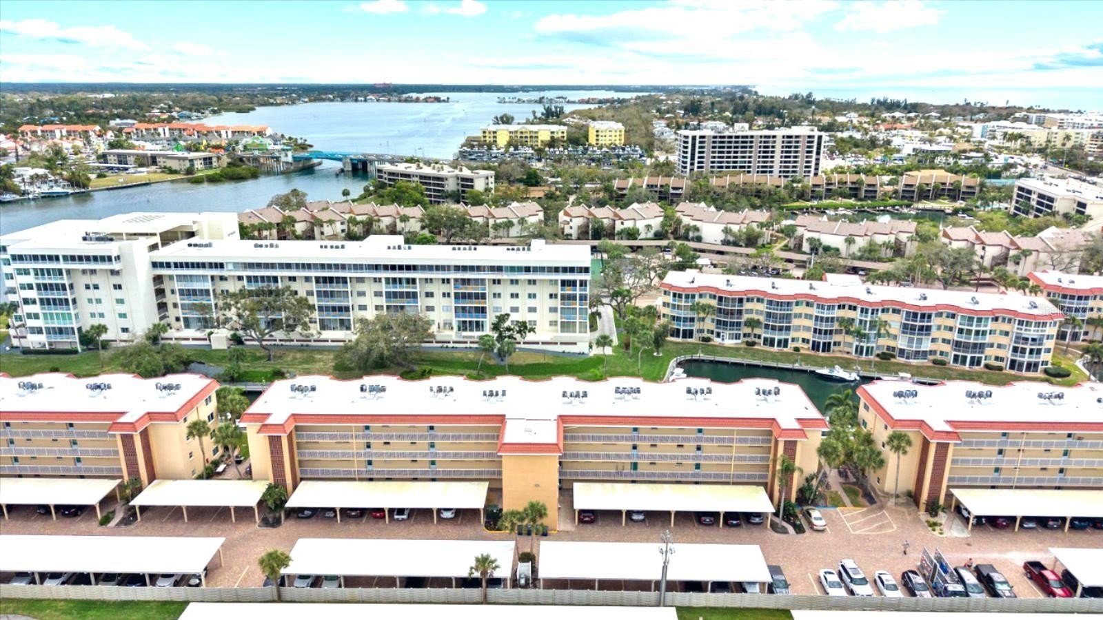 Experience the best of waterfront living in this beautifully updated and fully furnished second-floor condo in the highly sought-after Siesta Harbor community. This TURNKEY 2-bedroom, 2-bath residence offers stunning canal and marina views and a prime location just steps from direct beach access across the street through Crescent Arms. Immaculately maintained and move-in ready, the condo features impact windows, an enclosed lanai, tasteful furnishings, and thoughtful updates throughout for comfort and relaxation. The spacious open-concept living and dining areas flow seamlessly into a modern kitchen showcasing white cabinetry, quartz countertops, stainless steel appliances, and ample storage. The primary suite includes a walk-in closet and a stand-up shower, while the enclosed lanai provides the perfect spot to enjoy morning coffee or evening cocktails, with dolphins frequently seen playing in the marina. Siesta Harbor is a vibrant 55+ waterfront boating community situated on its own canal and the main waterway of the Intracoastal Waterway. Boat slips may be available for vessels up to 30' (check with the office for availability). Residents enjoy resort-style amenities including a heated pool, outdoor spa and shower, indoor sauna, fitness room, shuffleboard court, fishing pier with seating on the ICW, and a beautifully renovated clubhouse with full kitchen, outstanding library, barbecue area with grills, and a full calendar of social activities. Additional highlights include FOB-accessed private beach access, FREE laundry on the 2nd, 3rd, and 4th floors, one designated covered carport parking space, ample guest parking, covered parking, an on-site manager, lush tropical landscaping, and a new roof (2025). Ideally located near the South Bridge, this community offers easy on-and-off access to the Key, is within short distance to restaurants and shops, and has the free Siesta Key trolley stopping right in front of the complex for easy access to Siesta Key Public Beach and Siesta Key Village. Whether you're watching boats drift by on the Intracoastal, crossing the street for unforgettable sunsets, or enjoying the active social lifestyle, this property is perfect as a vacation retreat, full-time residence, or investment opportunity. You deserve paradise!