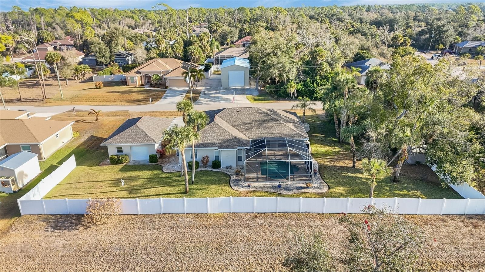 **PLEASE TAKE A WALK THROUGH YOUR NEW HOME WITH THE 3D VIRTUAL TOUR** Your search ends here. This beautifully maintained three-bedroom, two-bathroom, 2 car garage, POOL home with a DETACHED FOUR-CAR GARAGE BLOCK BUILDING sits on a spacious DOUBLE LOT and offers the perfect balance of comfort, location, and value. Major updates are already done for you, including a new roof in 2022, hot water tank in 2021, water system in 2022, and an air conditioner replaced in 2021. From the moment you arrive, the pride of ownership is clear. Lush tropical landscaping surrounds the property and features an irrigation system, decorative curbing, oversized driveway, palm trees, blooming flowers, and a shed. A screened garage door, pebble accents, and a classic flagpole complete the welcoming curb appeal. Step through the covered entry and elegant double etched glass doors into a bright and open Great Room with high ceilings, neutral colors, and ceramic tile throughout the main living areas for easy care and pet friendly living. Sliding glass doors and large front windows fill the home with natural light. The kitchen is truly the heart of the home and opens to all main living spaces, making it ideal for entertaining. It offers Corian countertops, a closet pantry, recessed lighting, abundant cabinet space, a breakfast bar, and all stainless-steel appliances included. Enjoy meals in the formal dining room or start your day in the cozy dinette overlooking the pool area. The family room provides additional space to relax and is already wired for surround sound, perfect for movie nights. The primary suite is generously sized with private lanai access, engineered hardwood flooring, and two walk in closets. The en suite bath features dual sinks and a Roman shower with rain showerhead for a true spa like feel. Guest bedrooms are located on the opposite side of the home for privacy, and include engineered hardwood flooring, ceiling fans, and ample closet space. The guest bath offers a tub and shower combination. Step outside to your personal Florida retreat. The screened lanai is perfect for outdoor dining, relaxing with a book, or hosting friends. The sparkling blue pool invites you to cool off on warm days, and the mostly FENCED backyard provides space for pets and play. The detached garage/workshop and storage shed is a dream for hobbyists, car lovers, or anyone needing extra room. This home is ideally located with quick access to Coco Plum Shopping Center, golf courses, restaurants, and medical facilities. Beautiful Gulf beaches such as Boca Grande and Englewood are just a short drive away. Enjoy nearby Charlotte Harbor for world class fishing, plus spring training baseball at Charlotte Sports Park and the new Wellen Park district with shopping, dining, and a popular farmers market. Easy access to US-41 and Interstate 75 makes travel north or south a breeze. Best of all, there are no deed restrictions and no HOA fees. Do not miss your chance to own this exceptional property. Schedule your private showing today.