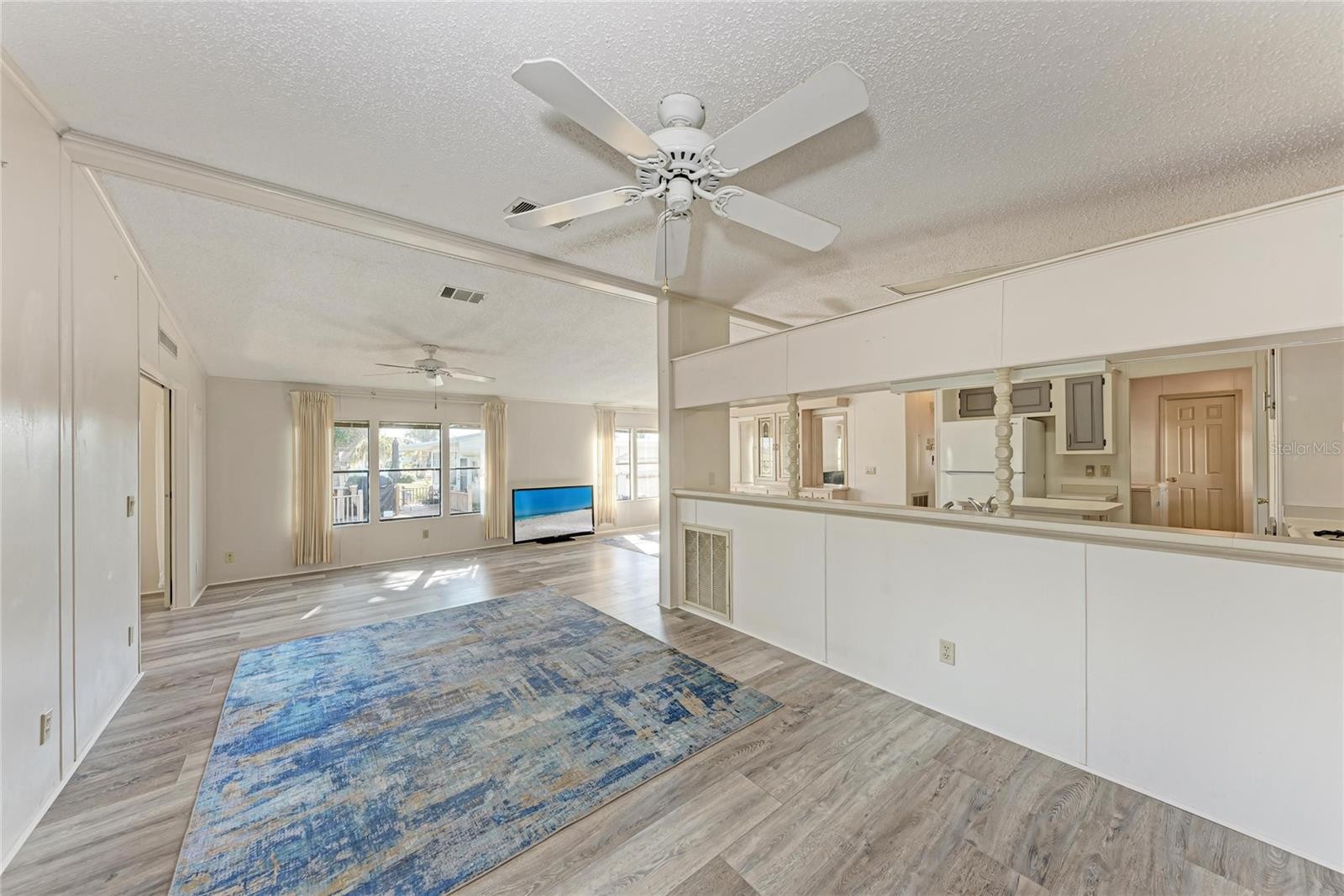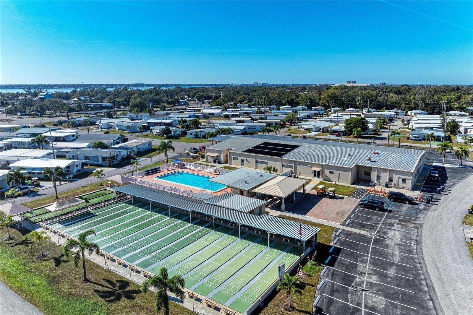 Retirement at its finest! This manufactured home in the 55+ community Tidevue Estates is one of the largest in the community. There is plenty of space for you to call home. Bring your personal touches to make it your own. As you enter the home from the carport, you will instantly notice the indoor laundry space with plenty of cabinets for extra storage. If you enjoy cooking, you'll love this spacious kitchen with an island for extra prep space and lots of storage room. This home has a dining room large enough to fit a full size dining set. The primary bedroom has 2 separate walk-in closets and an ensuite bathroom with full vanity, standing shower, and private water closet. The second bedroom also has an ensuite bathroom that connects back to the laundry/entry area. The living room opens up to the spacious Florida room that looks out over the lake. Or, you can close the decorative doors to Florida room and make it a separate room or office space. Proceed from the Florida room to the screened lanai to enjoy the cool evening breeze or enjoy a cup of coffee or tea from the bench swing in the backyard as you gaze out over the lake streaming with wildlife. Bring your canoe or kayak as well, you can launch right from the wooden dock on your property. Don't be afraid that you won't have enough storage space here. There is a large room (18' x 13') that you can use for storage, workshopping or crafting. The possibilities for a peaceful retirement are endless in this beautiful home. Plenty of activities will keep you busy in this community. The community pool is solar-heated for year-round enjoyment. The community library has free WI-FI connection. Recently updated fitness center. Other activities you may find here are indoor pickleball, bocce ball, or shuffleboard. Near many parks, restaurants, and shopping. Easy access to I-75. Tidevue Estates is a land-owned park so no lot rent. It is also a pet-free park, however the HOA makes allowances for properly documented ESA pets. See documents for additional information.