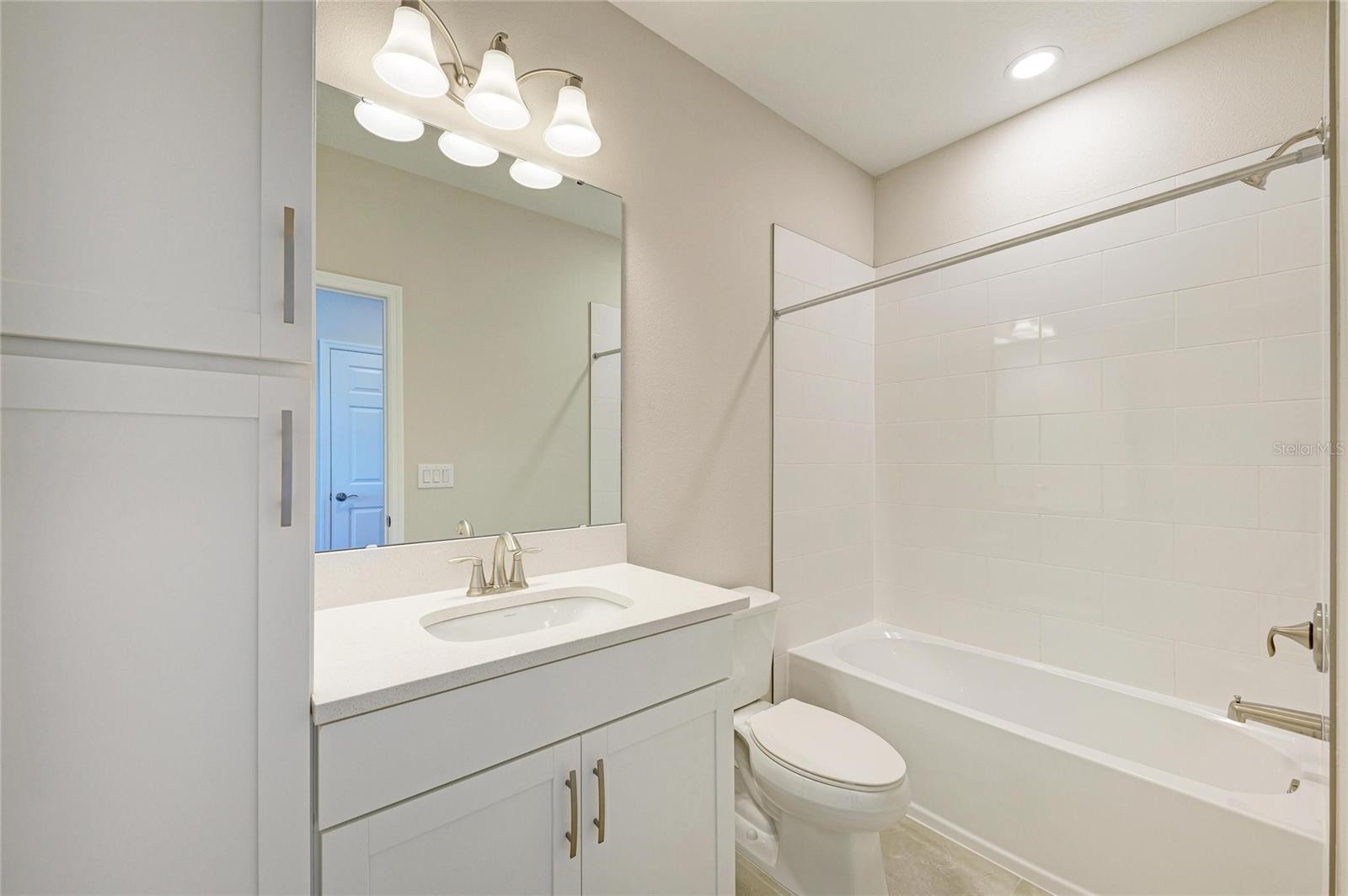 One or more photo(s) has been virtually staged. This Biscayne II is ready for move-in! This captivating two-story residence is meticulously designed to balance a social, open floorplan with quiet privacy for every bedroom. The home centers around an impressive grand room and a chef-inspired kitchen that flow naturally into a casual dining area, all of which open up to an expansive covered lanai for the best in outdoor living. Soaring twelve foot ceilings through the foyer and main living spaces create an airy, high-end feel from the moment you cross the threshold. The owner's retreat is a true getaway, offering oversized walk-in closets and a master bath that features a garden tub alongside a specially upgraded deluxe walk-in shower. Upstairs, the home expands even further with a versatile bonus room and a fifth bedroom and bath that provide the perfect setup for guests or a growing family. Complete with premium enhancements like a private den and an extended lanai, this home is built to accommodate both relaxation and grand entertaining. Do not miss the chance to make this home your own! Listing Price amount for this Pending Sale includes Design and Structural Options.