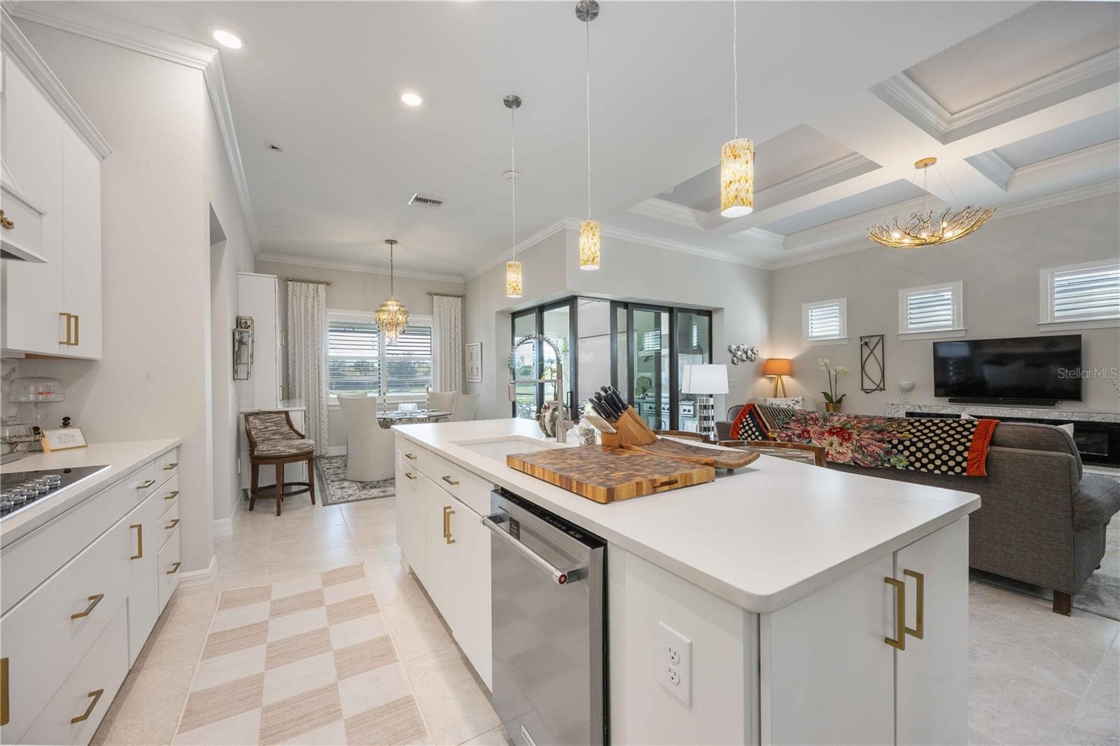 Located within the highly desirable IslandWalk at the West Villages, this impeccably upgraded Summerwood model is a true showpiece, offering refined finishes, exceptional privacy, and resort-style living. From the moment you step inside, the home impresses with tile flooring throughout and a level of craftsmanship that rivals a designer model home. Every detail has been thoughtfully curated—from the elegant lighting selections and custom plantation shutters to the exquisite finishing touches that elevate each space. With too many upgrades to list, please see the attached upgrade list for full details. The living room is anchored by a unique electric fireplace, creating a warm and inviting ambiance, while the dining area features stunning custom built-ins that blend both beauty and function. The open-concept layout flows seamlessly to the outdoors, where expansive living truly comes to life. Step outside to your heated private pool overlooking a tranquil pond, with no homes beyond—offering rare privacy and serene water views. The fully equipped outdoor kitchen makes entertaining effortless, whether hosting intimate gatherings or lively celebrations. The exterior is equally captivating, showcasing lush, manicured landscaping, three elegant trellises, vibrant red crepe myrtle trees, and a striking front fountain that creates unforgettable curb appeal. This home is nothing short of a showstopper. IslandWalk is an amenity-rich community offering something for everyone, with resort-style pools, fitness facilities, miles of scenic walking trails, social clubs, and a true sense of lifestyle-driven living. This exceptional residence offers luxury, privacy, and timeless design—an opportunity to own one of IslandWalk’s finest homes. Call today for your Private showing.