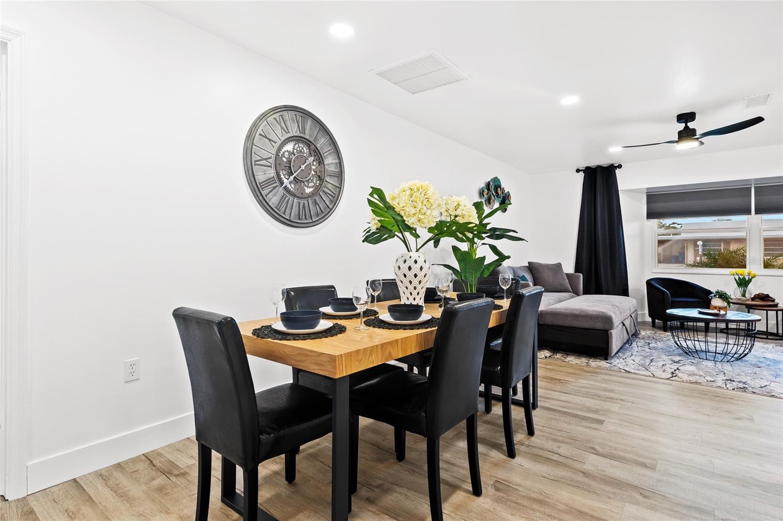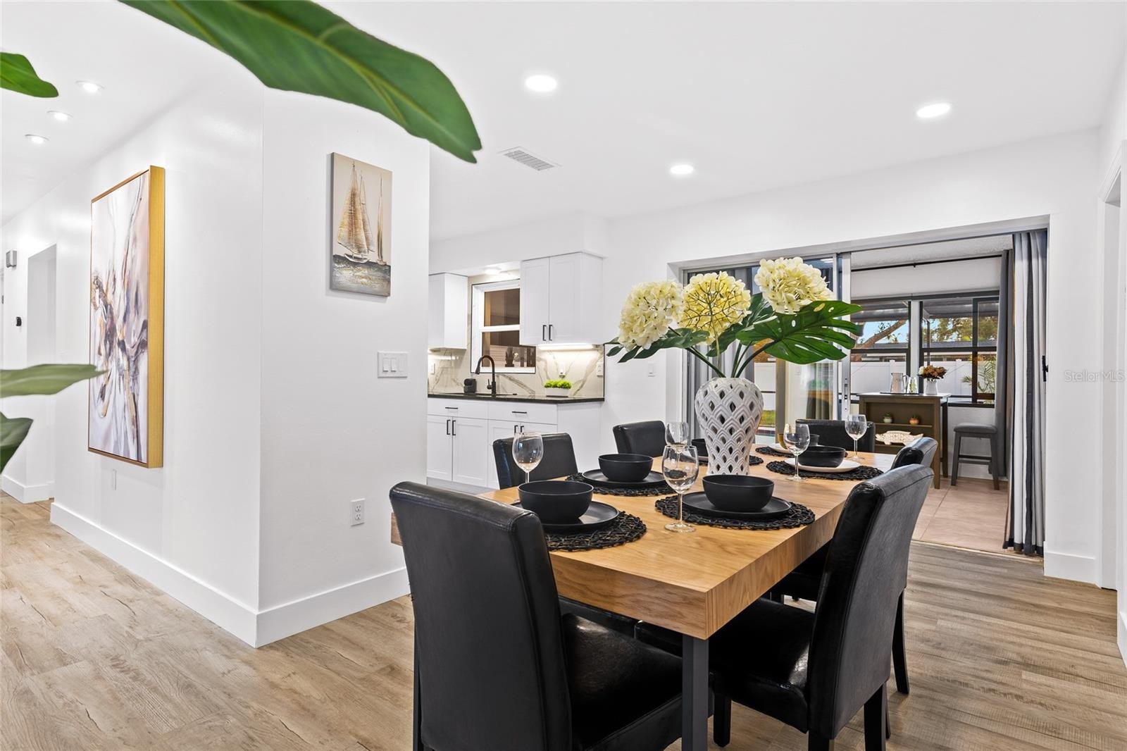 This beautifully updated two-bedroom, two-bathroom single-family home in the sought-after East Gate community of Venice offers a modern open layout and a versatile additional bonus room. Recently remodeled with stylish finishes and meticulous attention to detail, the home features spacious living areas bathed in natural light, perfect for both relaxing and entertaining. The flexible bonus Florida room includes its own private exterior side entry, making it an ideal space for a third bedroom, home office, or guest suite. The heart of the home is a chef-inspired kitchen equipped with top-of-the-line Maytag appliances, solid surface counters, and a functional closet pantry. The interior transitions seamlessly to a private outdoor oasis, centered around a 10x20 in-ground gunite pool with custom lighting. The large, 14x26 screened and covered lanai allows for year-round enjoyment of the Florida sunshine, overlooking a fully fenced backyard that provides excellent privacy. Practical features abound, including two spacious bedrooms with large walk-in closets, an attached one-car garage, and the added protection of hurricane shutters. This move-in-ready residence is situated in Flood Zone X and is located just 8 minutes from the stunning coastline of Venice Beach, offering easy access to sun, sand, and surf with no HOA or CDD fees.