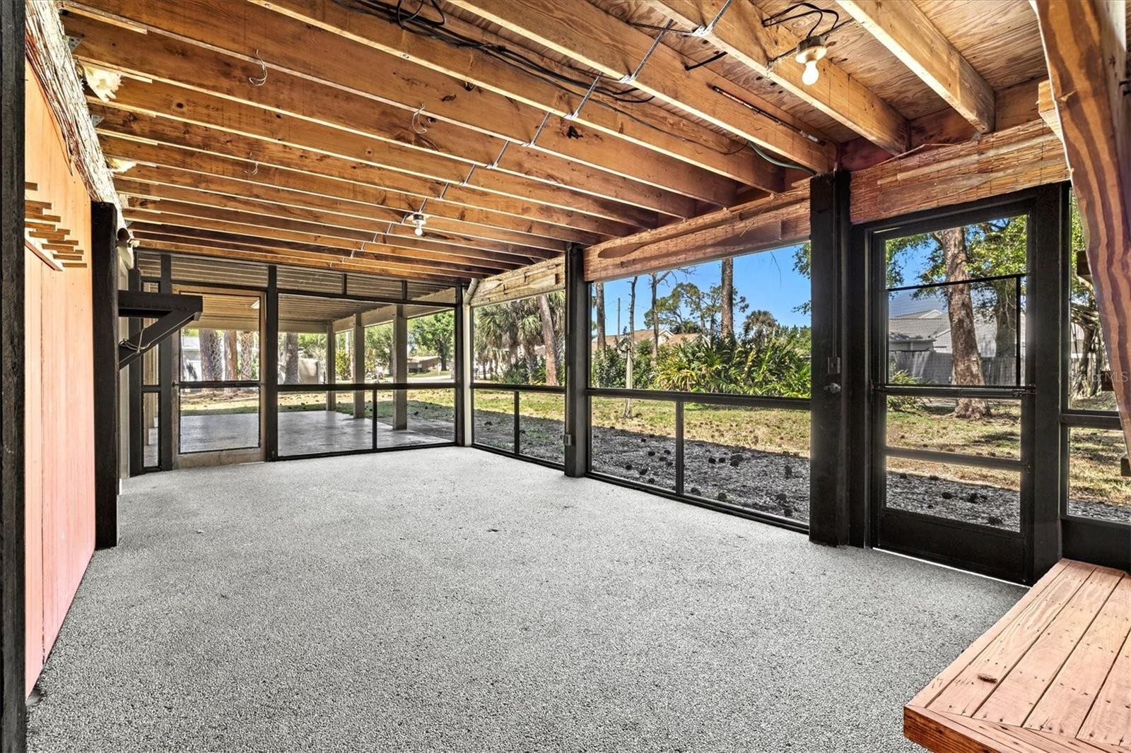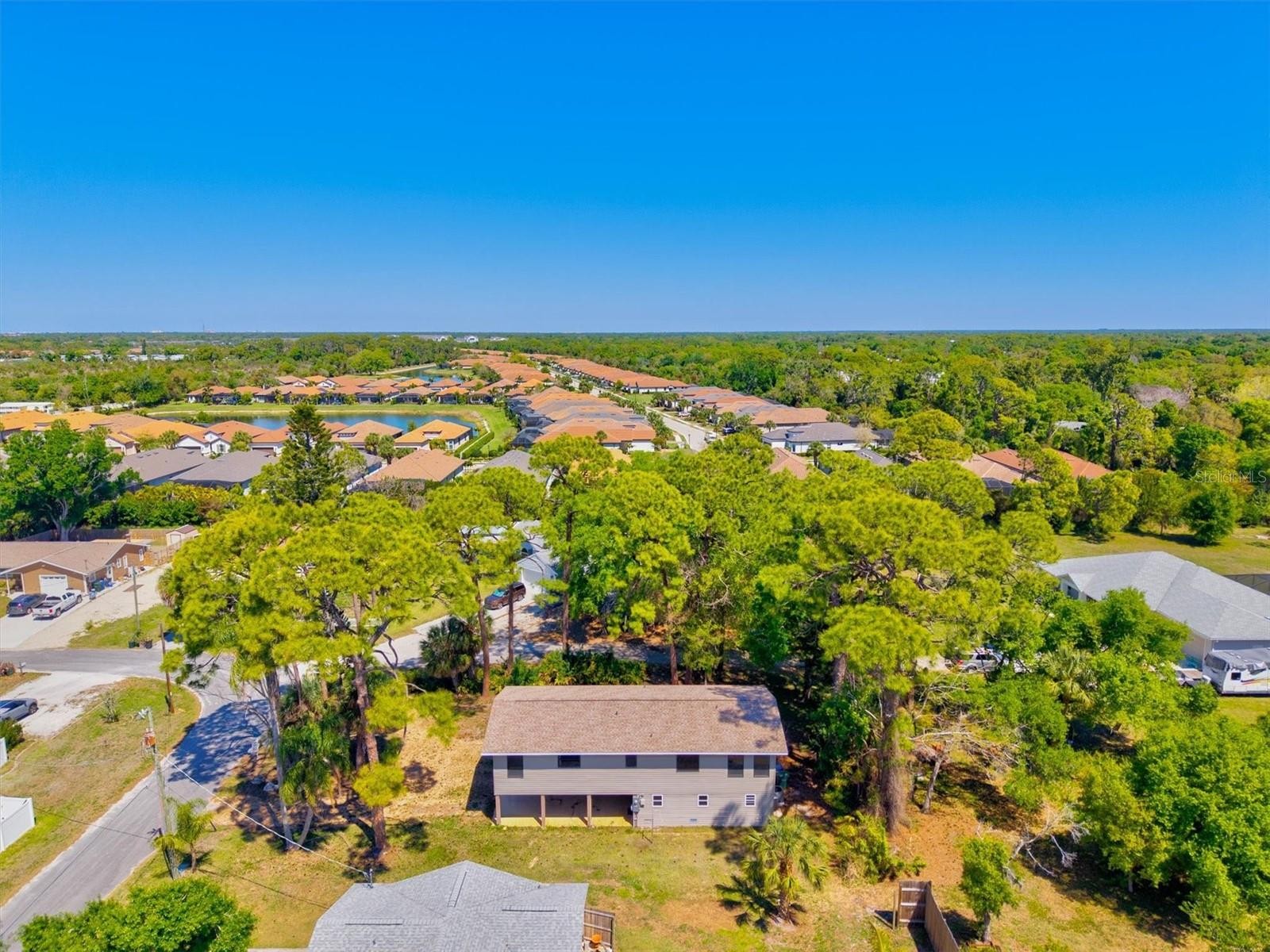 One or more photo(s) has been virtually staged. Discover your very own Nokomis “Tree House,” nestled among majestic native Florida pines. This unique property offers a rare opportunity for the discerning buyer seeking an ideal location, a peaceful neighborhood, and a home with strong structural integrity and major mechanical updates already in place - ready for your personal touches and vision. As you arrive, you’ll appreciate the generous covered parking beneath the home, providing shade and protection for multiple vehicles. Step inside through one of two doors into a spacious screened lanai, an inviting outdoor living area complete with a storage room, laundry room, and convenient full utility bath. A wood staircase leads to the main living level, where a sunlit porch/sunroom welcomes you with walls of windows that capture natural light and refreshing Florida breezes. Two sliding glass doors open into an airy, open-concept living and dining space, seamlessly connected to a galley kitchen featuring a breakfast bar and a large closet pantry. A nearby half bath adds convenience for residents and guests. Privately situated at the front of the home, two bedrooms each offer direct access via sliders to a bright and spacious enclosed porch, creating a peaceful retreat surrounded by greenery. The primary suite includes an en-suite bath with a tiled tub/shower and corner vanity. Importantly, many of the most significant and costly improvements have already been completed, offering peace of mind and long-term value: a new roof and AC system (2023), septic system and water heater (2021), and a 200-amp electrical panel (2025). The home is also connected to public water, features underground power lines, and is NOT located in a high-risk AE flood zone. One of the standout features of this property is the substantial under-roof space on both levels offering incredible flexibility and potential for additional living space. Whether you envision an additional private guest suite, home office, studio, workshop the possibilities are abundant! All of this is ideally located just minutes from shopping, dining, and everyday conveniences along US 41 and Laurel Road. Tucked away on a quiet street within a well-kept neighborhood, the home is very close to the popular Legacy Trail - perfect for biking, walking, or exploring all the way to Historic Downtown Venice or west to Nokomis Beach. With solid bones. major mechanical updates already complete, and exceptional potential to customize and expand, this property presents a rare opportunity to create something truly special. Is this the opportunity you’ve been waiting for?