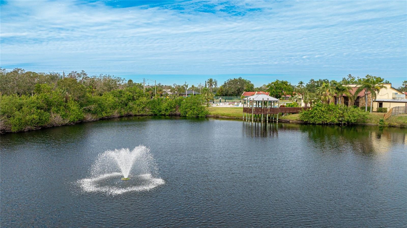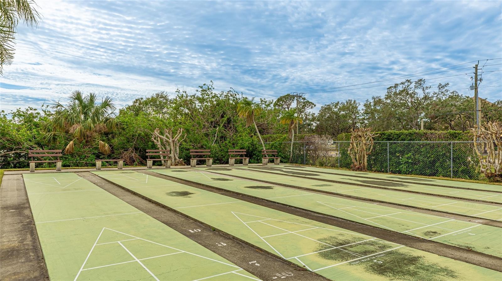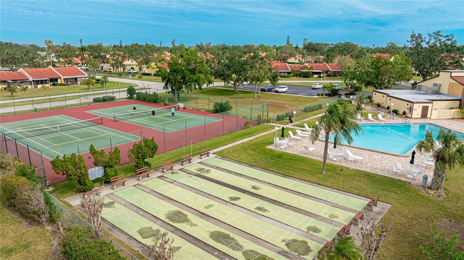 ~ MEADOWCROFT ~. Take advantage of the lifestyle offered with this beautiful immaculate condominium in this 55+ community where you can live maintenance free and enjoy shopping, dining, the YMCA, GT Bray Park right down the street and Bradenton's beautiful beaches .. all so conveniently closeby. This one floor condo has been lovingly maintained and well appointed and conveys TURNKEY furnished. Tile 18 x 18 flooring can be found throughout with laminate flooring in the bedrooms. This lovely home is full of features and upgrades that include Frigidaire Gallery stainless steel appliances, granite countertops, vaulted ceiling, a breakfast bar, a window overlooking the front from your kitchen sink, Thomasville wood kitchen cabinetry, tile backsplash, a 5 burner range, crown molding, French doors opening to the enclosed lanai, fans, oversized interior doors, customized closet shelving, ceiling fans, textured ceilings and remodeled attractive bathrooms. The Dining Room and Living Room area is generously sized at 30 x 14. The Primary bedroom overlooks the backyard and has been appointed with a large walk in closet complete with cabinetry already in place. The lanai, which is tiled, faces the West so you'll be able to enjoy the afternoon sun. Additional features include a newer 2023 HVAC heat pump, tile roof, large storage closet, interior hallway laundry room and a hallway storage closet. There's plenty of guest parking available with your personal covered parking just steps away that includes another storage closet for your extras. The Clubhouse offers a kitchen, dance floor, TV, piano, library and billiards table. The gated heated pool is private and includes a spa overlooking a beautiful lake where you can catch and release fish which is available to residents only. Your $651 monthly fees cover water, trash, sewer, cable tv, Wi-Fi, a Property Management company & community amenities. Extras include a gazebo, shuffleboard, tennis and pickleball providing plenty of opportunities to socialize and make new acquaintances. This could be your new home!