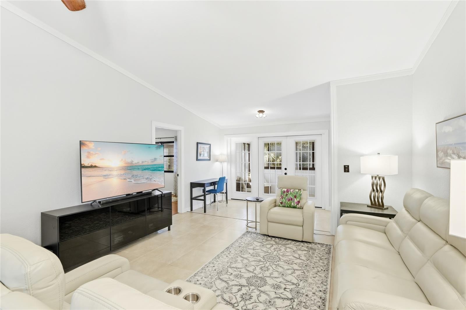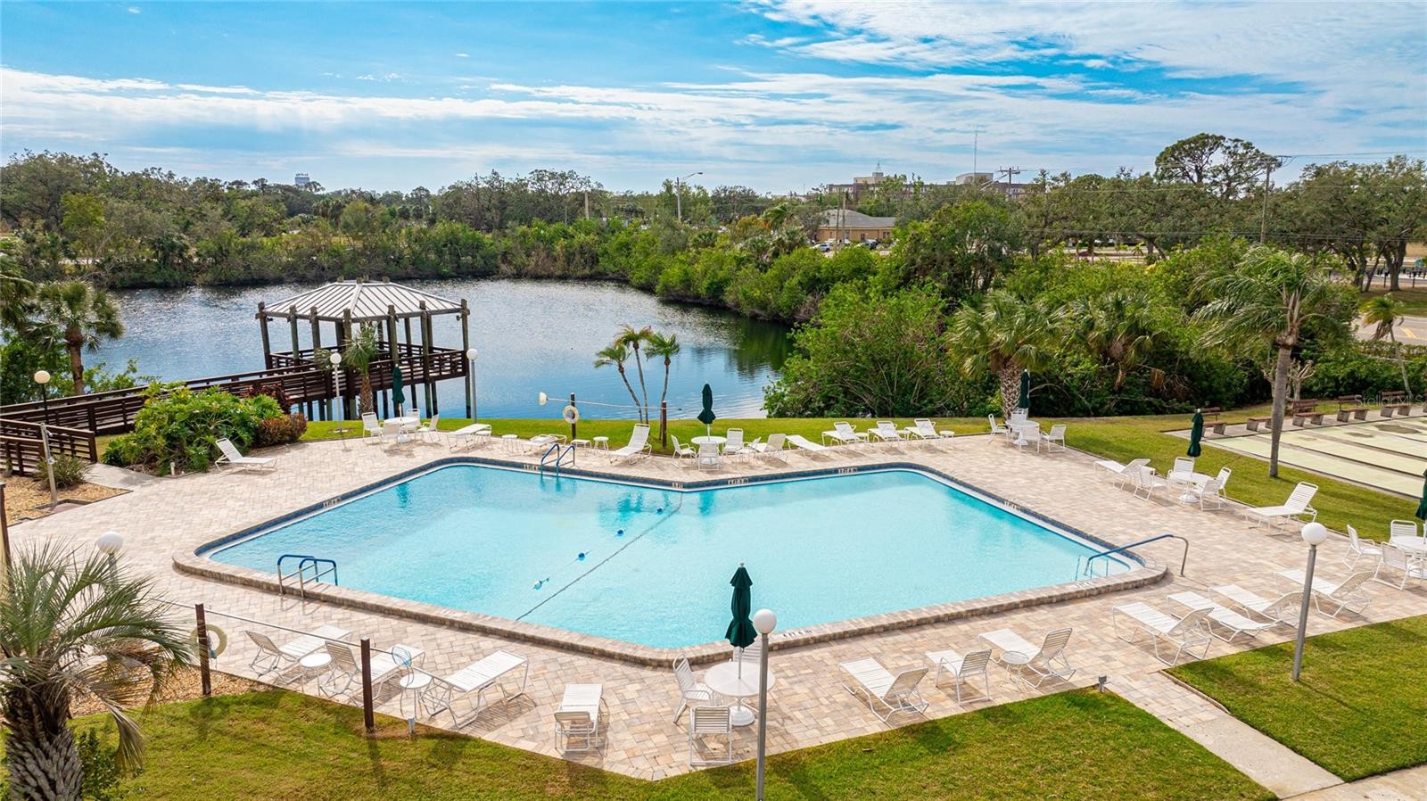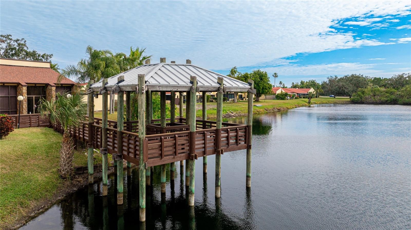 ~ MEADOWCROFT ~. Take advantage of the lifestyle offered with this beautiful immaculate condominium in this 55+ community where you can live maintenance free and enjoy shopping, dining, the YMCA, GT Bray Park right down the street and Bradenton's beautiful beaches .. all so conveniently closeby. This one floor condo has been lovingly maintained and well appointed and conveys TURNKEY furnished. Tile 18 x 18 flooring can be found throughout with laminate flooring in the bedrooms. This lovely home is full of features and upgrades that include Frigidaire Gallery stainless steel appliances, granite countertops, vaulted ceiling, a breakfast bar, a window overlooking the front from your kitchen sink, Thomasville wood kitchen cabinetry, tile backsplash, a 5 burner range, crown molding, French doors opening to the enclosed lanai, fans, oversized interior doors, customized closet shelving, ceiling fans, textured ceilings and remodeled attractive bathrooms. The Dining Room and Living Room area is generously sized at 30 x 14. The Primary bedroom overlooks the backyard and has been appointed with a large walk in closet complete with cabinetry already in place. The lanai, which is tiled, faces the West so you'll be able to enjoy the afternoon sun. Additional features include a newer 2023 HVAC heat pump, tile roof, large storage closet, interior hallway laundry room and a hallway storage closet. There's plenty of guest parking available with your personal covered parking just steps away that includes another storage closet for your extras. The Clubhouse offers a kitchen, dance floor, TV, piano, library and billiards table. The gated heated pool is private and includes a spa overlooking a beautiful lake where you can catch and release fish which is available to residents only. Your $651 monthly fees cover water, trash, sewer, cable tv, Wi-Fi, a Property Management company & community amenities. Extras include a gazebo, shuffleboard, tennis and pickleball providing plenty of opportunities to socialize and make new acquaintances. This could be your new home!