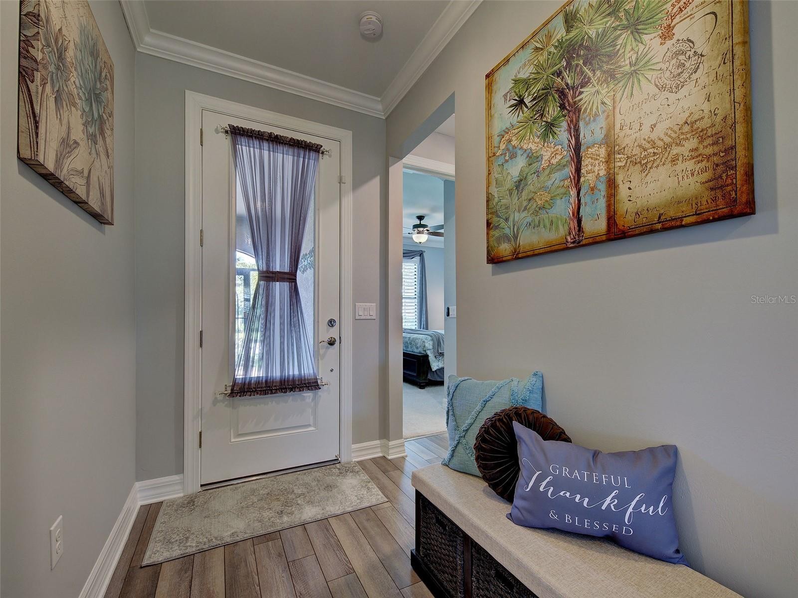 This popular Abbeyville home truly feels brand-new, and it’s offered TURNKEY FURNISHED, making it very easy to settle in from day one. USED ONLY A FEW MONTHS since completion, the owners visited minimally, so the home still has that fresh, barely-lived-in feel, plus all the UPGRADES and FINISHES you’d normally spend months adding after closing. The layout includes 2 BEDROOMS, 2 BATHROOMS, a FLEX ROOM, and a bright SUNROOM. Throughout the home, you’ll find IMPACT WINDOWS, TRAY CEILINGS, CROWN MOLDING, LUXURY VINYL FLOORING , PLANTATION SHUTTERS and EXTENDED DRIVEWAY. Clean, neutral finishes give the home a modern, move-in-ready look. An enclosed FRONT ENTRY and pristine landscaping welcome you inside. The KITCHEN features abundant cabinetry, soft-close drawers, granite counters, and a large island that opens to the dining area and sunroom. Natural light fills the space and leads you to the LANAI, which offers one section COVERED, perfect for shade and outdoor dining, and another section UNDER AIR AND SCREENED to enjoy the outdoors. From here, you can relax and take in the peaceful WATER VIEW. Just off the lanai, there’s also an extended 12' x 4.7' paver pad, adding even more room for seating or outdoor enjoyment. The LIVING ROOM feels warm and comfortable with crown molding, plantation shutters, and a SONOS SOUND SYSTEM. The PRIMARY BEDROOM includes a tray ceiling, crown molding, water view, walk-in closet, and an en-suite bath with a GLASS-ENCLOSED WALK-IN SHOWER. The guest bedroom sits privately on the opposite side of the home near a guest bath with a TUB and GRANITE COUNTERTOP. The FLEX ROOM with French doors works well as an office, hobby room, or occasional third bedroom. The LAUNDRY ROOM includes a washer, dryer, utility sink, and a large walk-in storage area. The spotless TWO-CAR GARAGE features EPOXY FLOORING and another utility sink. The backyard offers PRIVACY, with landscaping that creates a secluded feel and a deep yard, large enough to ADD A POOL if desired. Turnkey furnished and in pristine condition, this home delivers the look and convenience of a newer home WITHOUT THE WAIT OR THE EXTRA COSTS OF UPGRADES. IslandWalk is known for its TOP-TIER AMENITIES and its LOW HOA AND CDD FEES. The HOA fee includes CABLE, HIGH-SPEED INTERNET, and FULL GROUNDS MAINTENANCE, with access to all amenities—making this a LOW-MAINTENANCE home ideal for both SEASONAL and FULL-TIME residents. Residents enjoy resort-style geothermal pools, a dedicated lap pool, fitness centers, pickleball, tennis, bocce, an event center, and miles of walking and biking trails—all within a beautifully maintained, gated community with a staffed entrance. A full calendar of activities makes it easy to stay social and active. Downtown Wellen Park is just minutes away, offering waterfront dining, boutique shopping, live music, weekly events, a splash pad, a kayak launch, and a lively atmosphere. Conveniently located only 4 miles from I-75, you'll have easy access to Gulf beaches, airports and Venice Island.