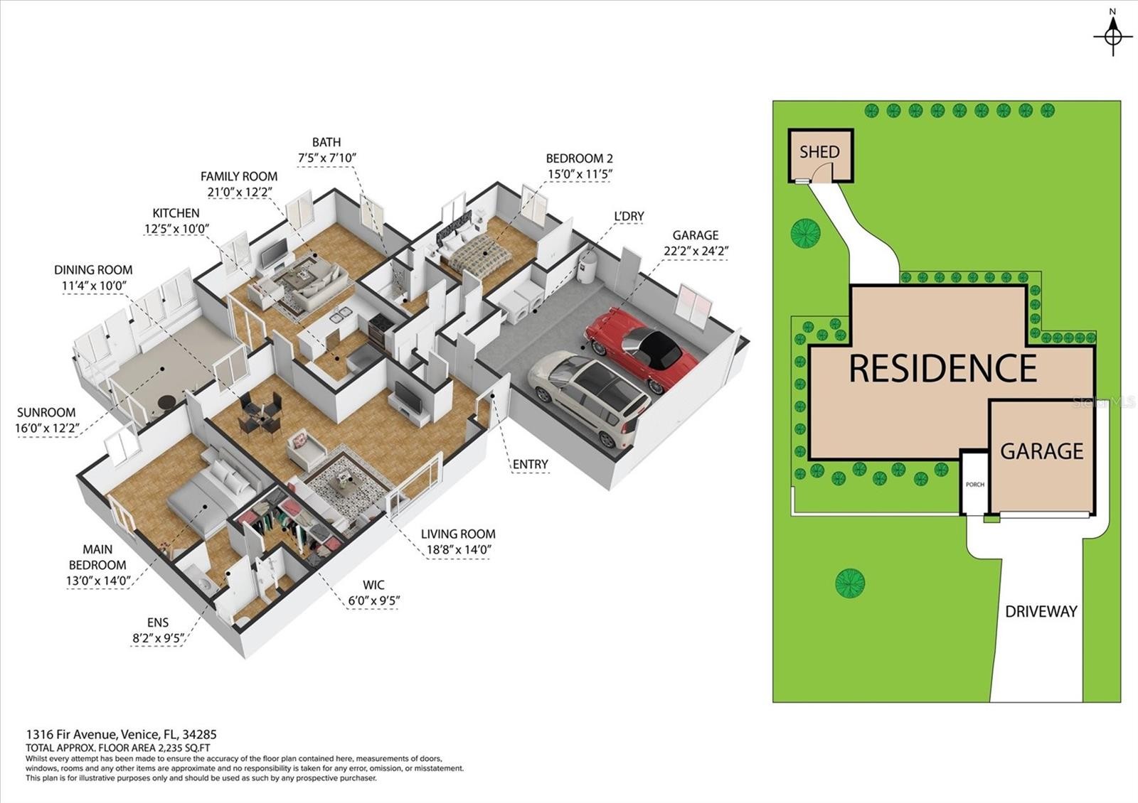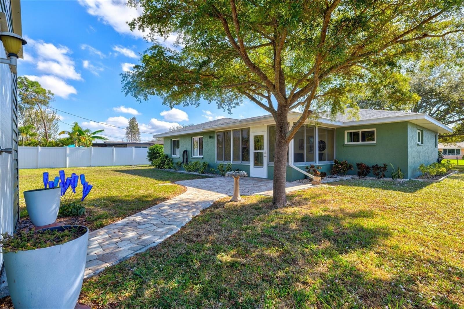 Under contract-accepting backup offers. Welcome to 1316 Fir Avenue, nestled on one of the most attractive streets in the desirable East Gate neighborhood, just a few miles from the Gulf and Historic Downtown Venice. This well-maintained home has been lovingly enjoyed by its owners for many years and offers wonderful curb appeal from the moment you arrive. With 1,549 square feet of thoughtfully designed living space, the floor plan blends traditional charm with modern functionality. A welcoming formal entryway opens to the spacious living and dining room, where a large picture window perfectly frames the sweeping oak tree in the front yard. The clean, well-organized kitchen features raised-panel cabinetry and a peninsula that overlooks the expansive family room highlighted by three large windows, creating a bright and inviting gathering space. Glass sliders lead from the family room into the Florida room enclosed with acrylic windows, an ideal spot to enjoy the Florida sunshine and natural surroundings in comfort throughout the seasons. The home’s split-bedroom layout provides excellent privacy, further enhanced by several tucked-away pocket doors that can separate the kitchen and family room areas when desired. Bedroom windows are thoughtfully positioned higher on the walls to allow in natural light while maintaining privacy. Curb appeal shines with a sparkling paver driveway, fresh exterior paint, and a charming covered entryway. The backyard is equally delightful, featuring a lovely paver patio shaded by a Florida-friendly olive tree, plus an 11' x 10' shed with shelving and electricity - perfect for gardening tools, hobbies, or extra storage. The nearly fully fenced yard offers a flat, grassy area ideal for pets, play, or outdoor enjoyment. Many valuable improvements have been made recently, including a newer roof (2022), 3rd nail installation (2022), water heater (2023), AC system (2018), all impact windows and an according shutter (2018), lanai enclosure (2014), and paver driveway (2024). Enjoy peace of mind and competitive insurance rates with these valuable improvements as well as a location outside the high-risk flood zone. With all these improvements and major systems already taken care of, you can focus on personalizing the interior to make this home truly your own! The historic East Gate neighborhood, established in 1956, is a Venice favorite thanks to its charm, convenience, and community feel. Residents enjoy no deed restrictions, optional neighborhood association, public water and sewer, a neighborhood park, and unbeatable proximity to everyday necessities. From this location, you can walk to parks, restaurants, shopping, medical offices, and are less than 2 miles from Historic Downtown Venice. 1316 Fir Avenue offers affordability, charm, and a prime Venice location—an exceptional opportunity in one of the city’s most beloved neighborhoods.
