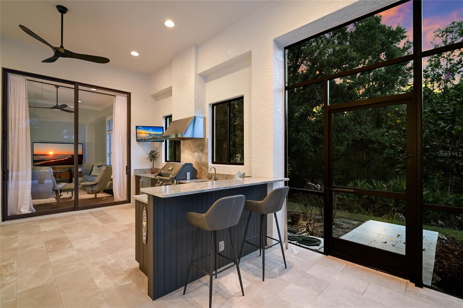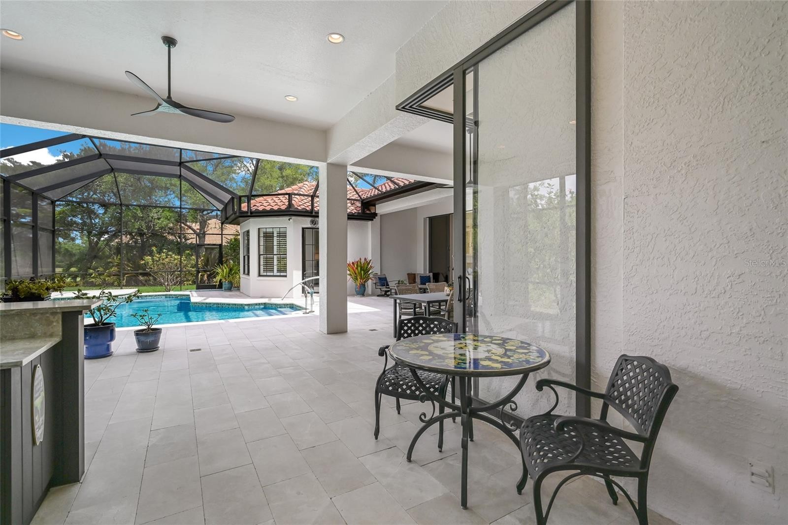 Recently remodeled, this one story 4,323 square foot residence was originally built by acclaimed Anchor Builders on a private .41 acre preserve setting in sought after Palmers Creek enclave in The Country Club of Lakewood Ranch. This bright and open four bedroom plan delivers the architectural excellence of a renowned builder while showcasing newly renovated and generously proportioned spaces throughout. Beyond the new IMPACT double entry door are grand living areas with volume ceilings, double crown moldings, new porcelain tile flooring, oversized sliders and windows, gas fireplace in the formal living area, an inviting sitting area ideal as a library or piano room, and a large formal dining area adorned with trim details, stylish chandelier and sconces. The large and private lanai boasts new marble decking with abundant open and under cover living areas, a heated pool and spa with new waterline tile replaced in 2023 and pool pump replaced in 2024, a refurbished outdoor kitchen with new quartz counters, a 2022 grill, and outdoor fridge, plus the lanai cage was refreshed in 2023 with with all new screens, painted and replaced with new galvanized screws. Seamlessly connected to the serene outdoors via disappearing 10’ sliders is a welcoming family room open to the home’s stunning new gourmet kitchen where form and function reigns cohesively with new Kirkplan cabinetry, sprawling new quartz counters, multiple new GE Monogram stainless steel appliances including two wall ovens, microwave drawer, warming drawer, gas cook top, and dishwasher, an oversized walk-in pantry and breakfast nook area adorned with the lush preserve views. Unwind in the large owner’s retreat on a private wing offering entry alcove with bench seating, tray ceilings, direct lanai access via a stunning new impact door, plantation shutters, two walk-in closets, and a newly remodeled and luxuriously appointed spa-like bath. Family and overnight visitors will be right at home with three additional generously sized guest suites all with walk-in closets, two of which are centered by a beautifully remodeled Jack n Jill bath and feature bay windows with plantation shutters, while the the third bedroom is just off the remodeled pool bath that sits next to a bonus room which can serve multiple functions with wood flooring, built-in wet bar with fridge and direct lanai access . Additional notable highlights of this all-encompassing 6,165sf residence is a strategically located powder room, refreshed laundry room with new quartz counters, sink, cabinetry and closet, two 2024 Carrier AC units, a 2025 Rheem water heater with recirculating pump, 2024 Kinetico water softener system, exterior painted in 2025, interior painted in 2022, solid interior doors, crown molding throughout, architectural trim detailing, central vacuum, landscape lighting, and a courtyard entry with split three car garage. A testament to refined living ideally located within the #1 top-selling master-planned community known for its vibrant lifestyle, dining, shopping, A-rated schools and non-mandatory membership opportunities to become a member of Lakewood Ranch Golf & Country Club, which include four 18-hole championship golf courses, tennis, state-of-the-art Fitness center, clubhouses, junior Olympic-sized pool, pickleball and more.