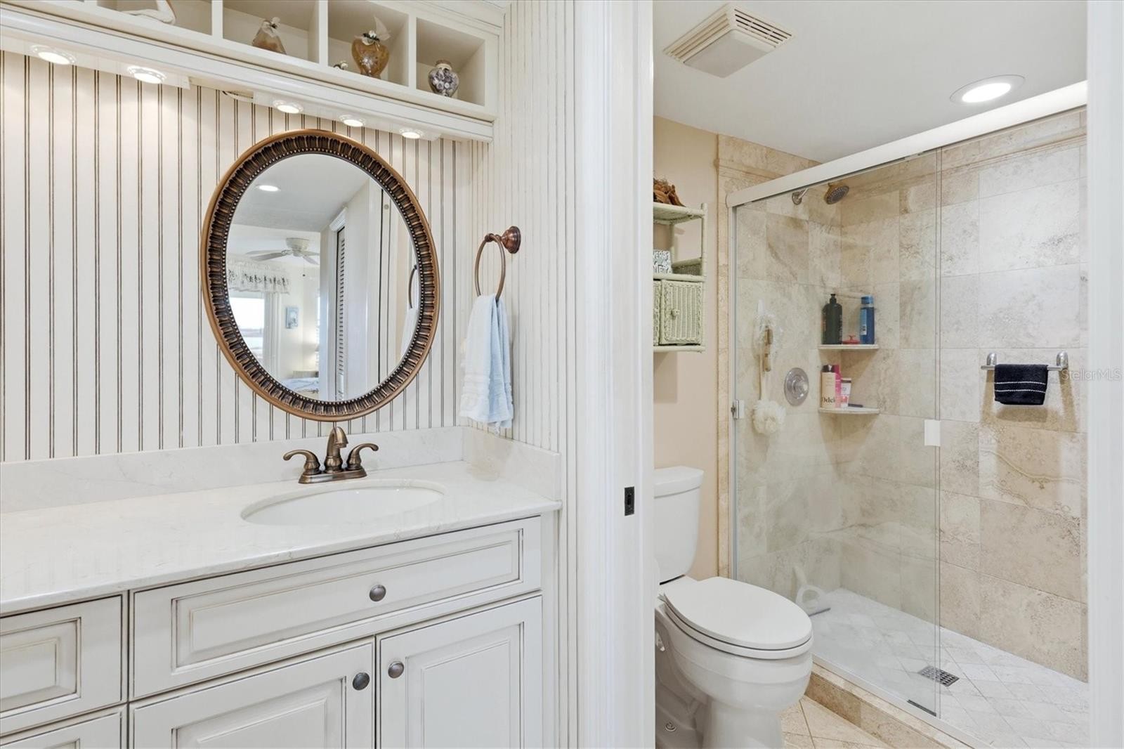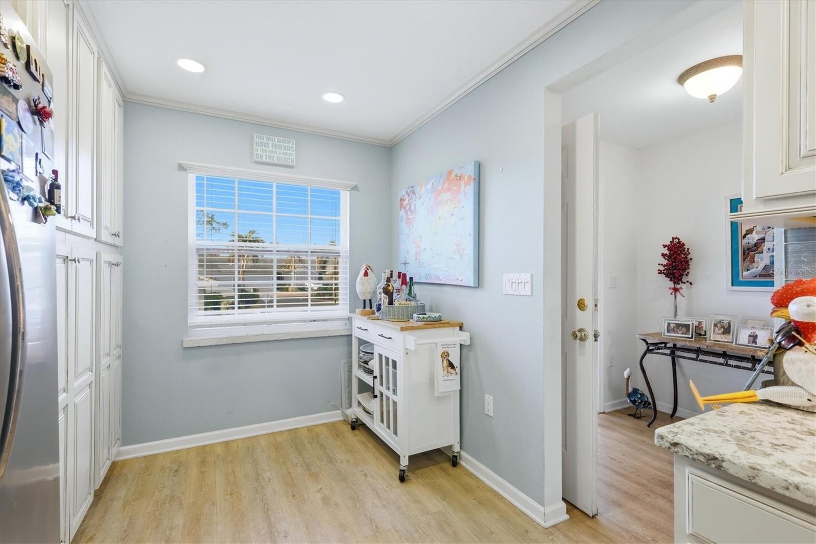 Location, Location, Location!! WATERFRONT with a GARAGE! This updated 2 bed/2 bath is located directly on the Bay at the Pointe with those coveted open water views! Wake to that breeze from your screened lanai and the panorama from your bedroom window and slider. The open dining and family rooms share that same panoramic view enjoying new luxury vinyl plank flooring throughout, a built in display shelf, and an oversized pass through to your updated kitchen. Your ceramic Kohler double sink overlooks that same gorgeous view! The renovated kitchen includes granite counters, solid wood soft close cabinetry, glass subway tile back splash, Frigidaire Gallery Stainless Steel appliances and recessed lighting! Both bathrooms enjoy updated wood vanities and tiled, glass enclosed showers. You will love being able to step off your own back porch, or out your front door to your garage, with private storage! All of this in the beautiful, gated community of Perico Bay Club, with a clubhouse, tennis & pickle ball courts, shuffle board, kayak launches & storage, community pools, gym, library and so much more! Just 3 short miles to the beautiful beaches of Anna Maria Island!