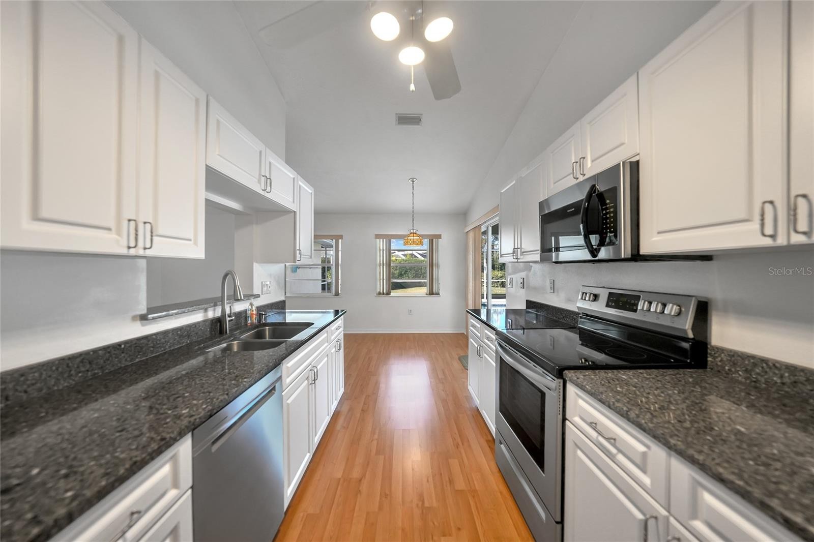 One or more photo(s) has been virtually staged. Welcome to this beautifully maintained 3-bedroom, 2-bath, 2-car garage pool home located in the desirable Quail Lake subdivision of Venice, Florida. Offering over 2,200 square feet under air, this spacious residence combines a traditional layout with modern updates and true Florida indoor-outdoor living. Freshly painted inside and out, the home features wood laminate flooring throughout the main living areas and carpeted bedrooms for added comfort. The split floor plan provides privacy, with a large primary suite that includes sliding glass doors leading directly to the pool and an en-suite bathroom with a walk-in shower. The guest bathroom offers convenient pool access, making it ideal for entertaining. Designed for both everyday living and hosting, the home includes a formal living room and a separate family room, creating flexible spaces for gatherings or relaxation. The kitchen features granite countertops, raised-panel cabinetry, and ample workspace, perfectly positioned to serve both indoor and outdoor living areas. Step outside to enjoy a generous covered lanai and screened pool area, offering plenty of space for lounging, dining, and year-round enjoyment of the Florida lifestyle. Residents of Quail Lake benefit from a low HOA and access to the amenities at East Village, enhancing the community appeal. Conveniently located, this home is within 10 minutes of shopping, dining, and entertainment, Downtown Venice, and the world-famous Gulf beaches. This Venice pool home offers space, location, and lifestyle—an excellent opportunity to enjoy everything Southwest Florida has to offer.