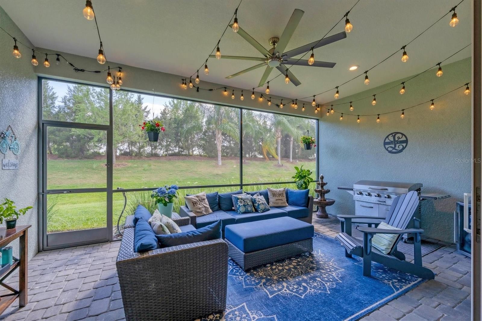 **Property offers a transferable conventional mortgage, subject to lender approval and buyer qualification** Searching for a private, sun-filled home in Lakewood Ranch? This beautifully appointed 4-bedroom, 3-bath residence with an extended 3-car garage is located in the gated Indigo at Lakewood Ranch community, known for its resort-style amenities and maintenance-free lifestyle. Built in 2022 by Neal Communities, this Silver Sky II floor plan is positioned on a premium southern-facing lot, creating a bright, private backyard setting ideal for everyday living and entertaining. Inside, the home features 10-foot tray ceilings, hurricane-impact windows, and pocketing sliding glass doors that enhance the open, airy layout. The chef’s kitchen is a standout, offering quartz countertops, a porcelain tile backsplash, under-cabinet LED lighting, a walk-in pantry, and GE stainless steel appliances, including a gas cooktop, convection wall oven, and oversized vent hood. The primary suite provides a true retreat with dual walk-in closets and a spa-inspired en-suite bath featuring dual vanities, stone countertops, a private water closet, and a large walk-in shower with transom window for natural light. Additional highlights include a dedicated den/study with 8-foot French doors, new carpet in all bedrooms, an oversized laundry room with Maytag washer and dryer, and an epoxy-finished garage with built-in storage and a vent fan. The covered lanai is pre-plumbed for a gas grill or outdoor kitchen, offering seamless indoor-outdoor living. Residents of Indigo enjoy a heated resort-style pool, five cabanas, clubhouse, 24-hour fitness center, pickleball and bocce courts, and a full-time activities director hosting year-round events. The HOA includes lawn care, irrigation, and landscaping, ensuring a low-maintenance lifestyle. Ideally located just minutes from Waterside Place, Lakewood Ranch Main Street, UTC, top-rated schools, and world-class Gulf Coast beaches, this home offers the perfect balance of luxury, convenience, and effortless Florida living.