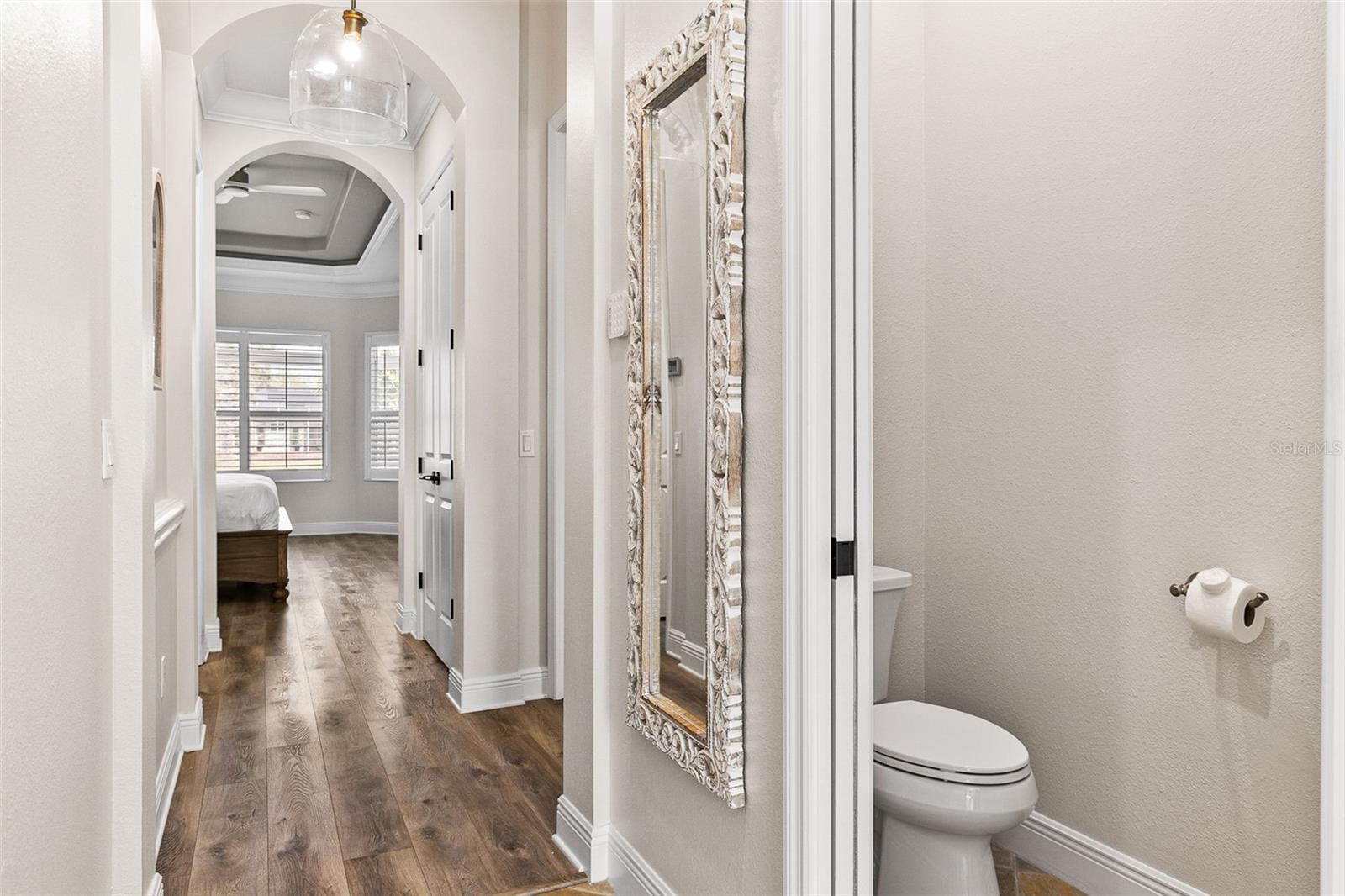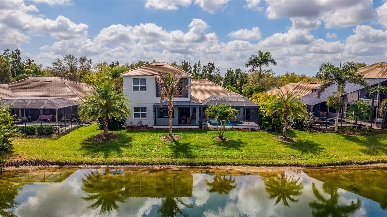 Fully remodeled in 2024 and meticulously maintained, this former Lee Wetherington model home is perfectly positioned on a picturesque lakefront lot in the highly sought-after Trails of Greenbrook Village. The home offers 4 bedrooms, 4 full bathrooms, a dedicated office with custom built-ins, and multiple living areas designed for flexibility. From the moment you arrive, the attention to detail is evident, with upgraded 8-foot two-panel doors, oversized millwork, crown molding, plantation shutters, and thoughtfully designed spaces throughout. Step inside through the French entry doors and immediately take in the bright, open layout enhanced by panoramic water views and an effortless flow between living spaces. The main living area is both inviting and functional, centered around a two-sided gas fireplace that adds warmth and character while creating a seamless connection throughout the home. The fully updated kitchen is designed to impress and gather, featuring white cabinetry, a large island, quartz countertops, stainless steel appliances, a gas cooktop with statement hood, apron-front sink, marble backsplash, and elegant brass hardware and lighting. It opens beautifully to the living and dining areas, making entertaining feel natural and easy. The primary suite is privately situated and features dual walk-in closets and a spacious bathroom with separate vanities. Upstairs, a private retreat adds incredible versatility with a fourth bedroom, full bathroom, and a spacious bonus living area, along with access to a screened balcony overlooking the expansive lake. This space is ideal for guests, a media room, or multi-generational living. Outdoor living is just as impressive, with a fully renovated and extended lanai featuring a resurfaced pool and spa, repaved deck, and generous covered areas for dining and relaxing, all set against tranquil water views. Additional highlights include a 3-car garage with epoxy flooring and built-in storage, as well as a prime location just steps from Adventure Park and close to top-rated schools, dining, and all that Lakewood Ranch has to offer. **THIS PROPERTY QUALIFIES FOR A 1% LENDER INCENTIVE IF USING PREFERRED LENDER. INQUIRE FOR MORE DETAILS.**