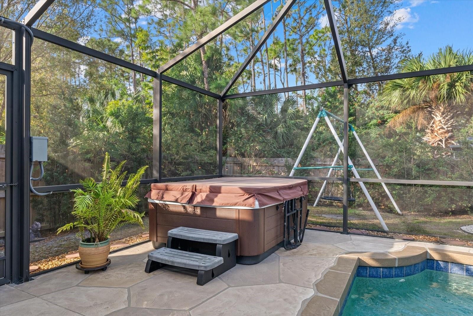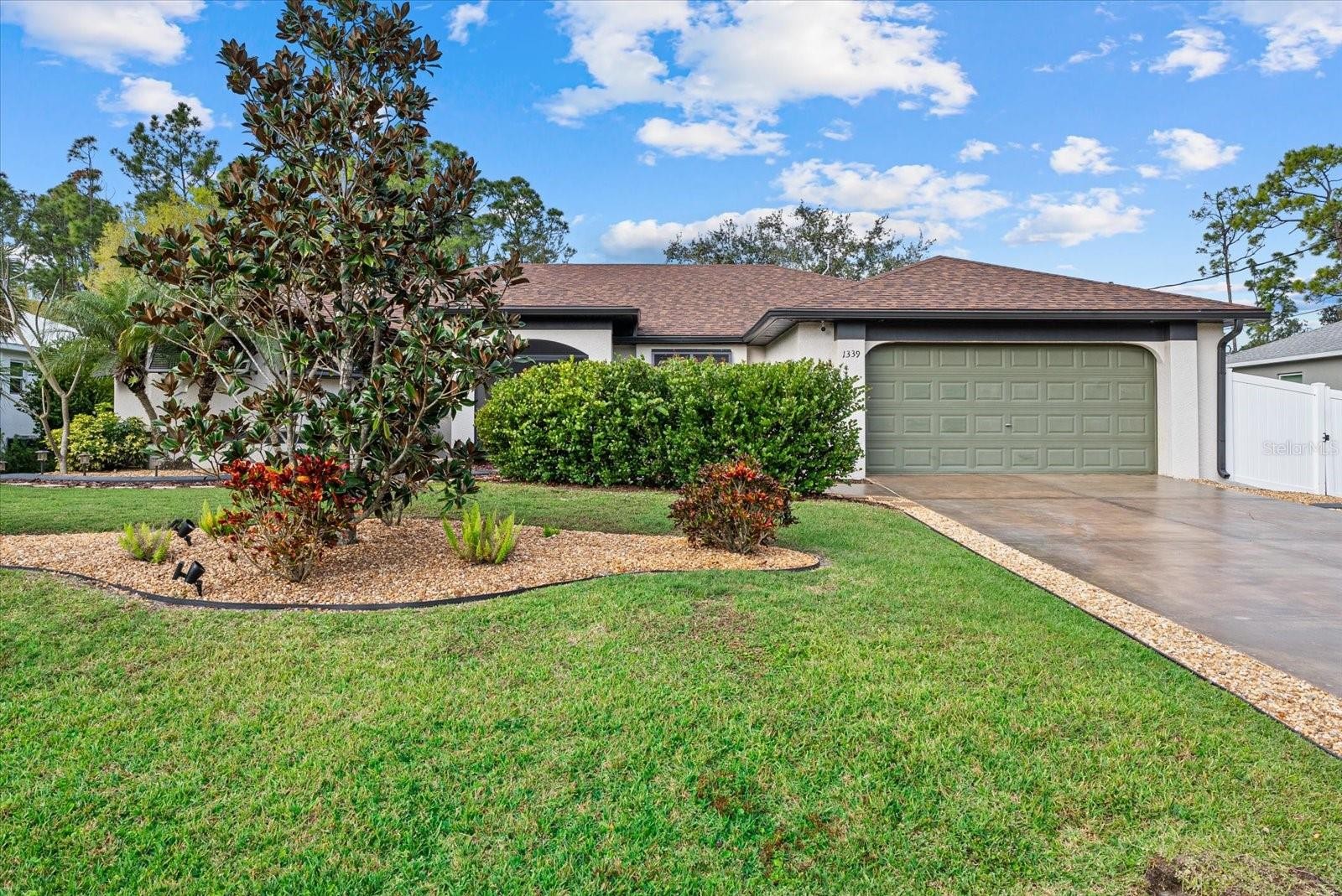 Welcome to this meticulously maintained home offering the perfect blend of comfort, functionality, and Florida lifestyle living. Featuring 3 bedrooms plus an office, 2 bathrooms, and 2,054 square feet of living space, this property is nestled on a quiet street with minimal traffic and newer homes, yet remains just minutes from shopping, dining, schools, and I-75—providing both convenience and tranquility. Step inside through the recently screened front porch (2024) and glass double entry doors to a welcoming interior with tile flooring throughout the entire home, flowing seamlessly into the main living areas. The living room features vaulted ceilings and hideaway triple sliding glass doors that open to a screened lanai and heated saltwater pool, creating an ideal space for entertaining or relaxing in your private backyard oasis. The kitchen features granite countertops, a reverse osmosis system, ample counter space, and stainless steel appliances, including a new dishwasher and refrigerator (2024). The oversized owner’s suite, enhanced with recently added crown molding (2025), measures approximately 25 x 14 and offers exceptional flexibility, with space for a home office, workout area, or additional seating, along with double sliding glass doors providing direct pool access. The owner’s suite also features two large walk-in closets and a spa-inspired bathroom with dual sinks, a soaking tub, and a luxurious walk-through shower. The split floor plan provides two additional bedrooms, each with walk-in closets, and a second bathroom with pool access, while a front office with glass French doors adds privacy and versatility for working from home. The home opens to a private fenced backyard oasis featuring a heated saltwater pool and above-ground hot tub, surrounded by mature landscaping, landscape curbing and lighting, and a resurfaced patio (2025). Additional outdoor features include exterior sun shades on the patio (2025), a new pool pump and filter (2025), pool cage rehab (2022), a fire pit, raised garden beds, a shed, and a fenced storage area. The insulated and climate-controlled garage adds versatility, while the 30-amp generator inlet box offers added preparedness. Additional upgrades include a newer roof and fence (2022), Bahamian shutters (2024), septic tank pumped (2025), water heater (2022), and an acid-stained and sealed driveway (2024). Located on a street with newer homes and offering easy access to I-75 without the disruption of active nearby construction, this home has been lovingly cared for with numerous updates already completed, allowing the next owner to move right in and enjoy the Florida lifestyle with confidence.
