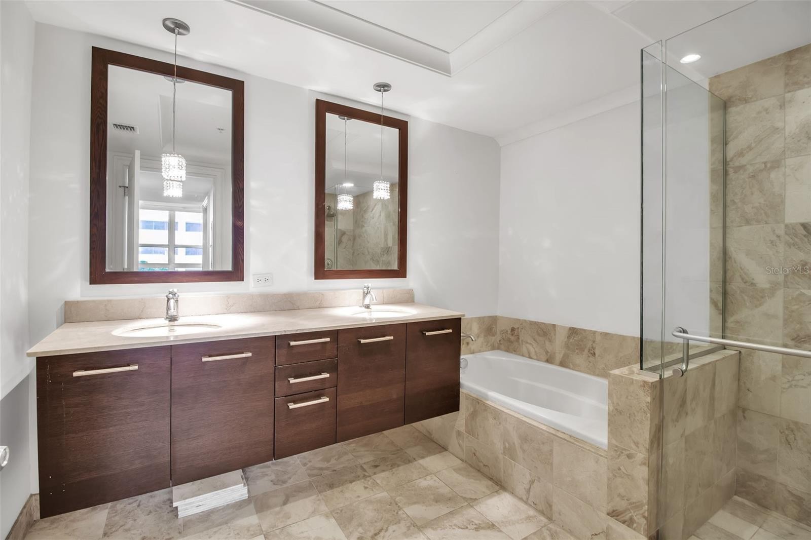 In the vibrant heart of downtown Sarasota, 1350 Main places you just moments from galleries, boutiques, restaurants, Marina Jack, the theatre district, and a quick drive to Lido Beach and St. Armands Circle. It’s the kind of address that makes city living feel both effortless and energizing. Perched on the 7th floor, this light-filled residence is ready for your personal touch. From the balcony and main living areas, peaceful views of the pool and courtyard create a quiet counterpoint to the lively city beyond. Inside, the thoughtful layout includes two bedrooms and two full baths, with the guest room featuring a built-in desk—perfect for work or creative pursuits. The main suite offers a generous custom-designed closet and a spa-like bathroom with dual sinks, a walk-in shower, and a garden tub. Trey ceilings and crown molding add understated elegance, while the kitchen—with stainless steel appliances, granite countertops, and excellent storage—makes everyday living a pleasure. Step onto the balcony to enjoy Sarasota’s mild winters, morning sunshine, and the soothing view of gardens and water below. This amenity-rich community elevates daily life with a club room, catering kitchen, fitness center, library, conference room, and attentive concierge services. Secured under-building parking for one car completes a truly desirable downtown package. Call today for your private showing—your next chapter in Sarasota living awaits.
