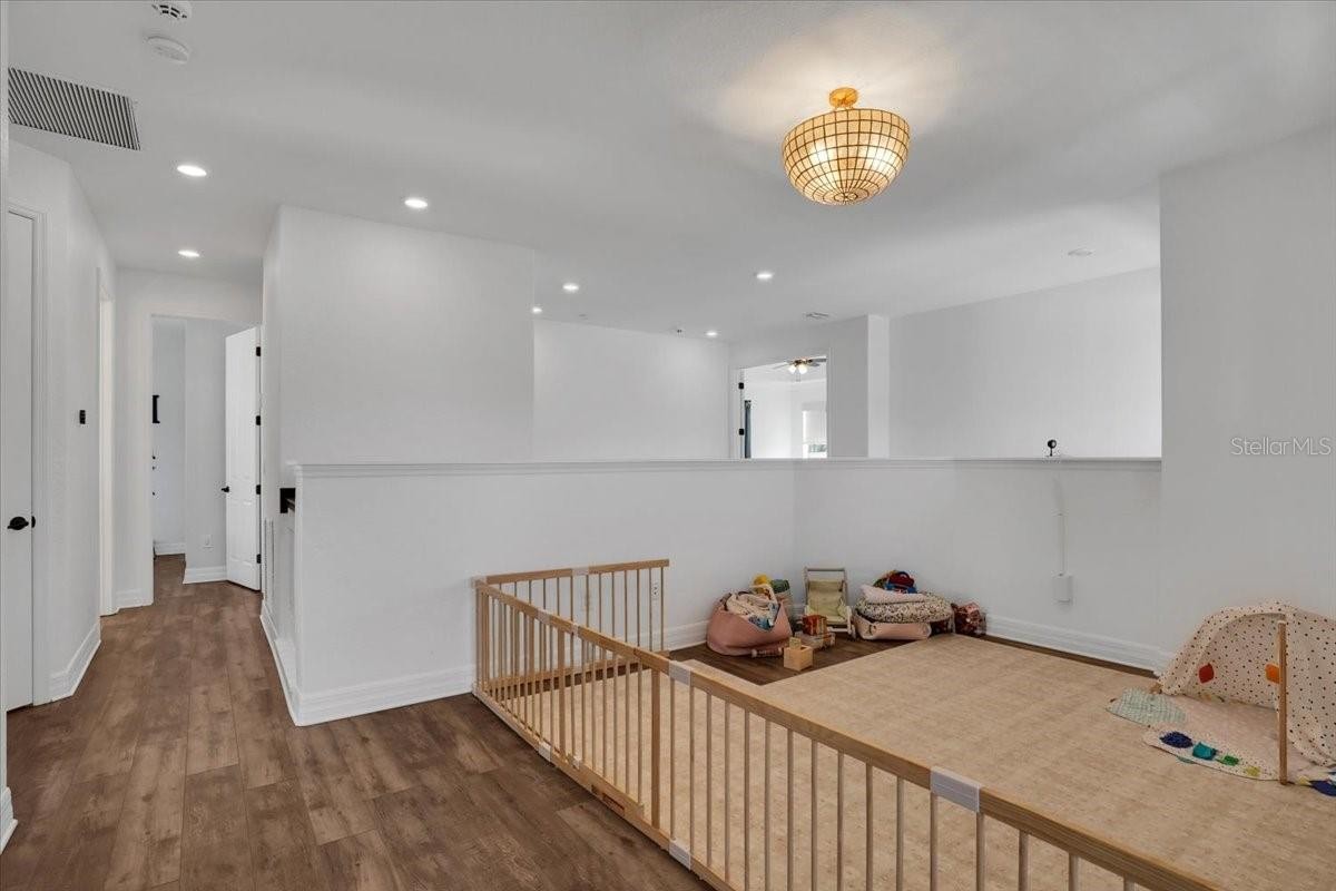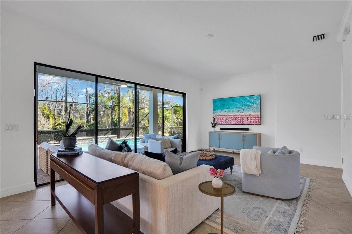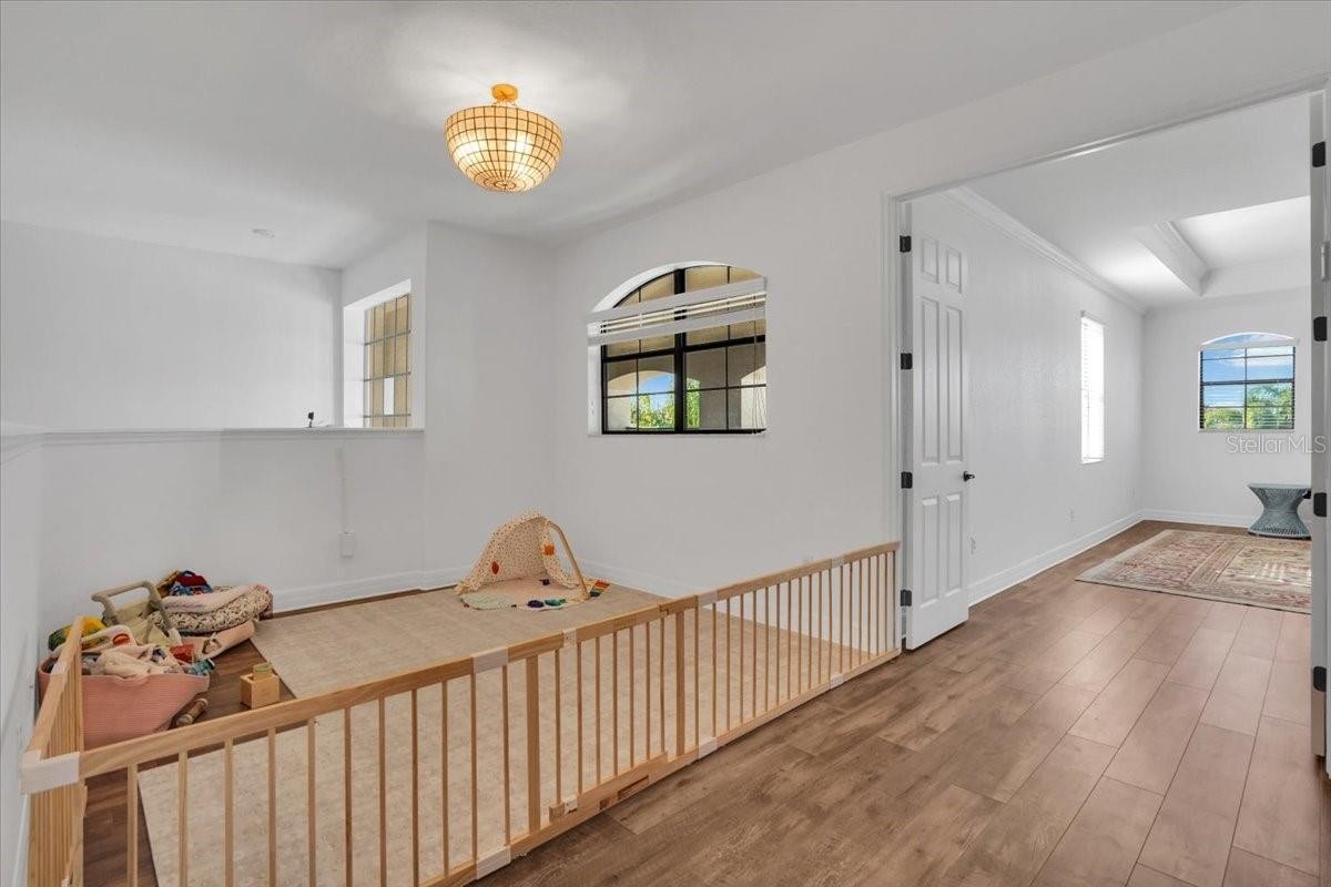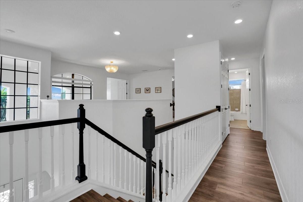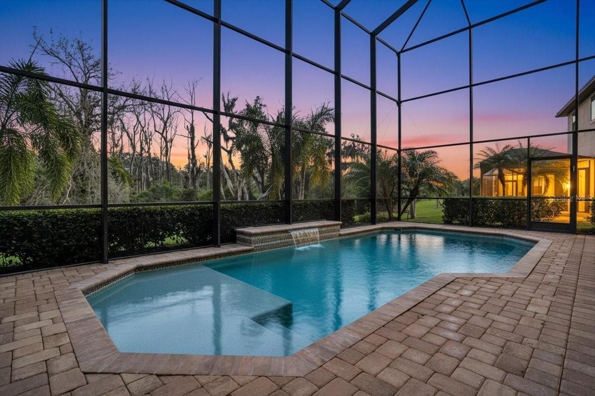 Located in the highly sought-after gated Bridgewater community. This neighborhood includes ground and landscaping maintenance with a low HOA fee and is close to everything Lakewood Ranch offers. Situated on a private preserve lot, this impressive 6-bedroom, 4-bathroom home offers almost 3,900 square feet of living space. From the moment you pull up to the stunning two story home the details are quickly noticed with a stone accent on the 2nd story, architectural banding around the windows, and a stained glass door and sidelights. Entering the foyer, you’ll be welcomed by a 2 story volume ceiling and tile flooring throughout the main living areas. The 6th bedroom on the first level could also be used as a den and features luxury vinyl planking and a built in closet. The staircase and entire upper level have been upgraded with luxury vinyl plank flooring. Ease of maintenance with no carpet anywhere in the home. The Interior and exterior have been repainted and all kitchen, bathrooms, and laundry cabinets have been painted in 2023. Light fixtures throughout the house, 3 exterior fans on 1st floor lanai have been replaced, and a surge protector for the house has been installed. Designed with entertaining in mind, the chef’s kitchen features an island with a new gas cooktop and custom stainless steel hood fan, granite countertops, raised-panel recently painted cabinetry, and stainless-steel appliances, including a built-in oven and microwave(gas cooktop, dishwasher, garbage disposal and washer dryer all have been recently replaced). The first floor offers an ideal layout for gatherings, with multiple areas for entertaining, sliding glass doors leading to the covered patio, and pool bath for easy access for guests and swimmers alike. Serene views of the pool area, preserve area and beyond provide a sense of peace while you are looking from the great room, breakfast area and kitchen. Step outside to your private outdoor oasis, complete with pavers, a PebbleTec pool with a water feature, and ample space for outdoor dining and lounging—all surrounded by peaceful preserve views. Featuring a newer pool heater and pool pump. Upstairs includes your owner suite, 3 guest bedrooms, and an additional in-law suite that gives you full five bedrooms and additional loft area. The generous owner’s retreat features crown molding, step ceiling, dual walk-in closets with upgraded custom cabinetry, en-suite bathroom with recently painted dual vanities showcasing granite countertops, a soaking tub, and a walk in shower. The spacious in-law suite features an en-suite bath. Enjoy relaxing views of the pool and nature preserve from your second-story balcony that runs the width of the home and is accessible from the owner’s suite and two additional bedrooms. A 3-car garage has a recently epoxied garage floor, with a Tesla charger installed, and provides plenty of room for vehicles, storage, and recreational toys, . Conveniently located just minutes from shopping, dining, Lakewood Ranch Main Street, I-75, and top-rated schools. LAKEWOOD RANCH PREPARATORY ACADEMY just across from the subdivision.