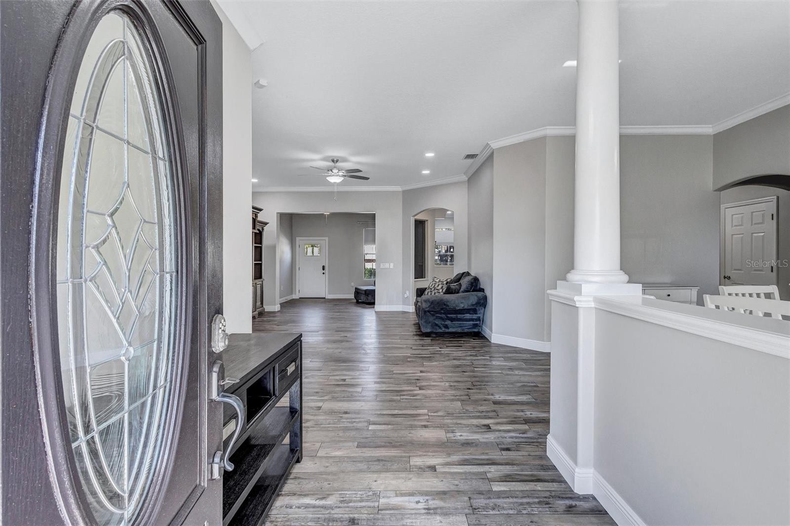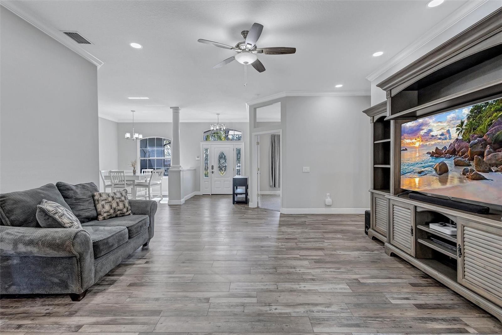 Set on nearly two acres, this beautifully updated estate offers space, flexibility, and room for all your toys. A standout 36x36 workshop with dual overhangs (14x36 and 12x36) provides exceptional storage for boats, RVs, and equipment, complete with electrical RV hookup and ample boat storage. The home features a brand-new roof (2025), new flooring, crown molding, fresh interior and exterior paint, and new recessed lighting throughout. The remodeled kitchen is open and inviting featuringh leathered finished granite countertops, ideal for everyday living and entertaining. Originally expanded and thoughtfully brought back to a 3-bedroom, 2-bath layout with a den, the split floor plan includes a spacious primary ensuite with soaking tub, separate shower, and an oversized walk-in closet. Outdoor living shines with a heated pool added in 2019, while a well-fed sprinkler system and access to county water offer convenience and efficiency. A rare combination of land, upgrades, and versatility—perfect for those seeking privacy without sacrificing modern comfort.