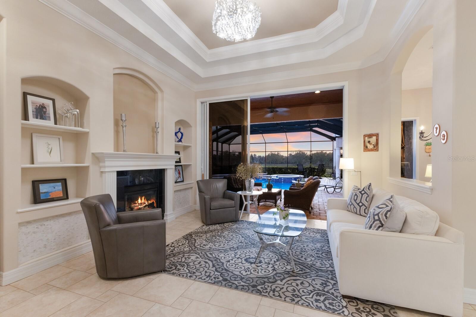 This stunning custom-built Peregrine home is perfectly positioned on one of the most sought-after homesites in Lakewood Ranch Golf & CC! Located on the Arnold Palmer designed Cypress Links #7, it offers breathtaking golf & water views. From the moment you arrive, the impressive curb appeal, circular drive & lush landscape set the stage for the elegance that awaits. Beautiful double glass doors open into a bright & welcoming foyer guiding you to the main living spaces. To the right, you'll find the formal dining area -perfect for hosting elegant dinners & to the left, a private office with French doors, hardwood floors & custom built-ins. Designed for both comfort & sophistication, the living room features a cozy fireplace, tray ceilings & a wall of sliders that draw your eye to the picturesque outdoors. A butler’s pantry with ample storage seamlessly connects the dining room to the newly remodeled kitchen, offering both style & functionality. It features an abundance of solid wood cabinetry, new backsplash, stainless appliances, granite countertops, double ovens, a breakfast bar & a spacious walk-in pantry. It also includes a charming eat-in area with a large aquarium window, offering the perfect spot to enjoy a morning coffee. Off the kitchen, the great room is an inviting space for family gatherings with built-in entertainment wall, tile floors, crown moldings, tray ceilings, architectural niches & sliders that bring the tropical outdoors in! At the rear of the home, a generous sized bonus room (currently used as a home gym) provides endless possibilities & is located next to a convenient pool bath. The luxurious primary suite offers a private retreat with a serene sitting area & windows that frame the amazing views. The recently remodeled ensuite bath is a true spa-like escape, featuring double quartz vanities, a huge walk-in shower & an elegant soaking tub. There are TWO walk-in closets with extensive built-in cabinetry providing ample storage, while glass block windows fill the space with natural light. The home’s 2nd & 3rd bedrooms share a beautifully remodeled Jack-and-Jill bath with dual quartz vanities, seamless glass shower doors & new fixtures. Both bedrooms exude charm with hand-scraped wood floors, built-in window seats & walk-in closets with custom storage solutions. A beautiful hardwood staircase leads to an incredible second-level bonus suite, ideal for an in-law arrangement or private guest retreat. This space features a spacious living area with blackout blinds, a wet bar with fridge, a 4th bedroom & a full bath! A large 2nd floor screened-in balcony offers a peaceful place to sip a glass of wine while overlooking the tranquil natural surroundings. Designed for Florida’s coveted indoor-outdoor lifestyle, this home boasts an expansive outdoor space with 2 covered areas adorned with cypress ceilings, perfect for relaxing or dining al fresco. A stunning heated pool with sun deck & spa create the ultimate backyard oasis. Bonus of a 3-car garage offering ample storage & epoxy flooring. LWR Golf & CC offers Social, Athletic & Golf memberships which are all OPTIONAL. These include FOUR 18-hole championship courses, a state-of-the-art fitness center, a junior Olympic pool, tennis, pickleball, dining, social activities year-round & MORE! Enjoy close proximity to endless shopping, incredible restaurants, vibrant arts, easy access to I-75, top-notch healthcare, A-rated schools & our award-winning area beaches!