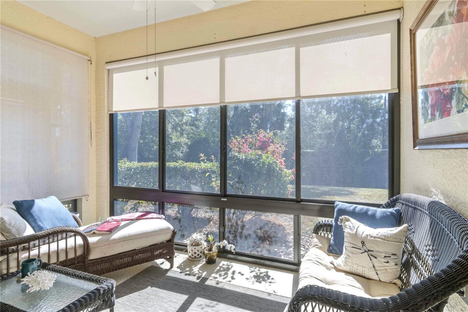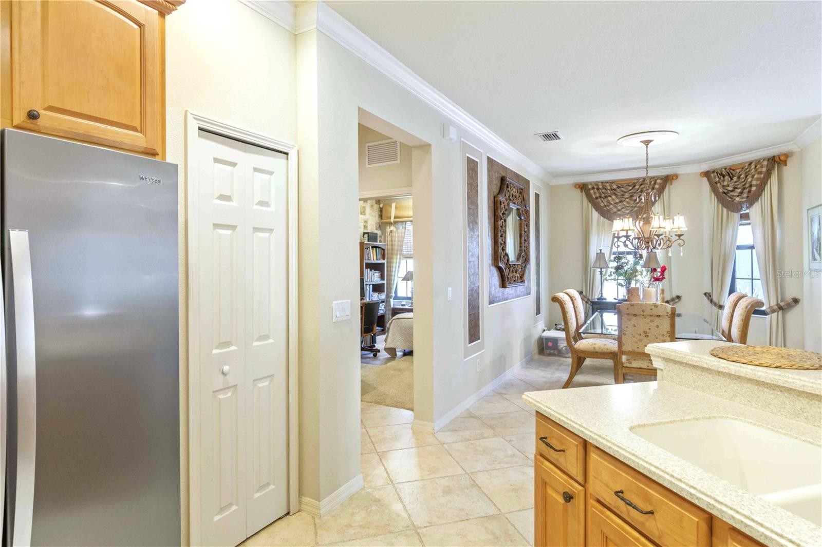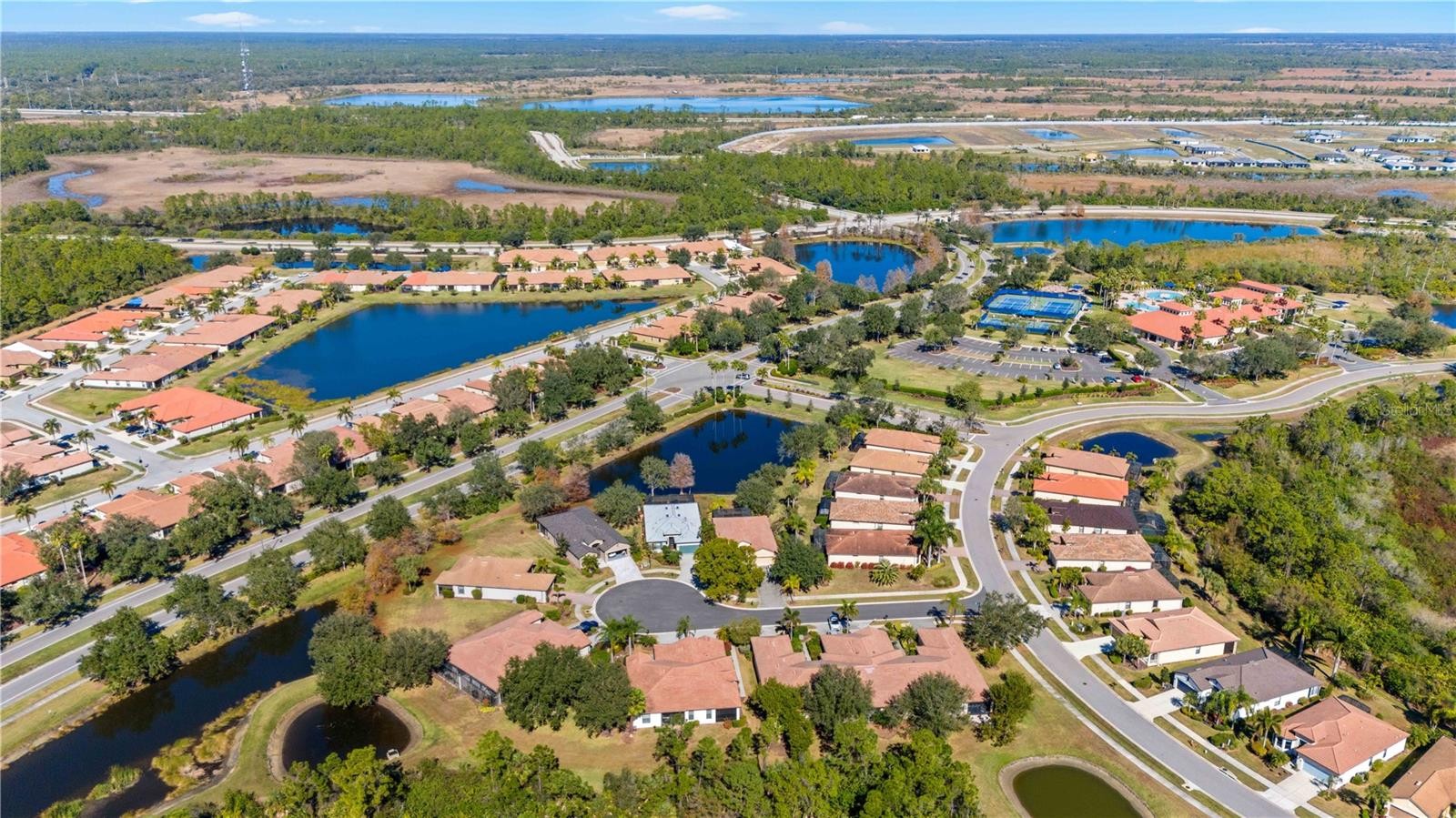 Experience elevated living in the sought-after 55+ Del Webb community of Cypress Falls at The Woodlands. This impeccably maintained 2-bedroom, 2-bath villa rests on a peaceful cul-de-sac & offers a bright, airy layout that blends comfort w/ understated elegance. Surrounded by a serene setting, the home immediately welcomes you w/ a sense of calm. Lush Florida landscaping—featuring manicured lawns, neatly shaped shrubs & swaying palm trees—enhancing the property’s curb appeal. A screened front entry introduces the warm, inviting feel inside, where a stunning etched leaded-glass door opens to a generous open-concept design highlighted by soaring ceilings & diagonal-set ceramic tile throughout the main living areas. The neutral colors create a calm & relaxed atmosphere that feels like a permanent vacation. W/ ample counter space, the kitchen offers an ideal environment for a creative chef to craft their culinary masterpieces. The sleek stainless-steel appliances complement the elegant 42" wood cabinets, which are finished w/ crown molding. The kitchen also features recessed lighting, under-cabinet illumination, stylish backsplash, closet-style pantry, Corian countertops & a functional breakfast bar that provides seamless connectivity between the kitchen, dining, and living areas, fostering an inviting environment for social or family gatherings. The dining room has a contemporary hanging chandelier, custom-painted accent wall & two expansive windows that provide an abundance of natural sunlight. With its generous area, the living room is perfect for gatherings of friends & family. The bedrooms are positioned on opposite sides of the home where both you & your guests can enjoy quiet, undisturbed spaces! In the master suite, you will find chair railings, large walk-in closet, recessed lighting, ceiling fan & 2 large windows offering serene views of the private preserve—a tranquil scene to greet you every morning. The en-suite bath features dual sinks, upgraded faucet package, granite countertops, wood cabinetry (which includes pullout drawers), private toilet area & a glass enclosure walk- in shower w/tiled walls, perfect for a spa-like experience! The guest bedroom is generously sized w/ a ceiling fan & a built-in closet. The nearby guest bath doesn’t disappoint w/ cultured marble countertops, wood cabinets & a shower/tub combo w/ upgraded tiled walls. Other upgrades include crown molding, upgraded lighting, speaker system, alarm system & a humidistat. Open the triple sliding glass doors & enjoy peace & privacy w/ no rear neighbors, allowing you to fully appreciate the “3 season” year-round back lanai w/ acrylic windows. All the other windows have been replaced w/ high impact dual pane tinted windows (per previous seller) & the lanai has accordion shutters. Lawn care & irrigation are included in your HOA, so your days of mowing, edging & weeding are over! Resort-Style Amenities & Active Lifestyle Cypress Falls at Del Webb offers a premier 55+ lifestyle, featuring: Clubhouse & Community Center, Two Heated Pools – A Lagoon-Style Pool & Resistance Pool, Pickleball & Tennis Courts, Bocce Ball, Horseshoes, Billiards, Library, Internet Café, Fitness & Wellness Programs: Yoga, Tai Chi, Water Aerobics, Dance, Social Clubs & Activities: Bridge, Poker, Euchre, Mahjong, Bingo, Arts & Crafts & Professional Entertainment. Here, your days can be as energetic or as relaxed as you desire—all w/in the secure & welcoming embrace of Cypress Falls at Del Webb