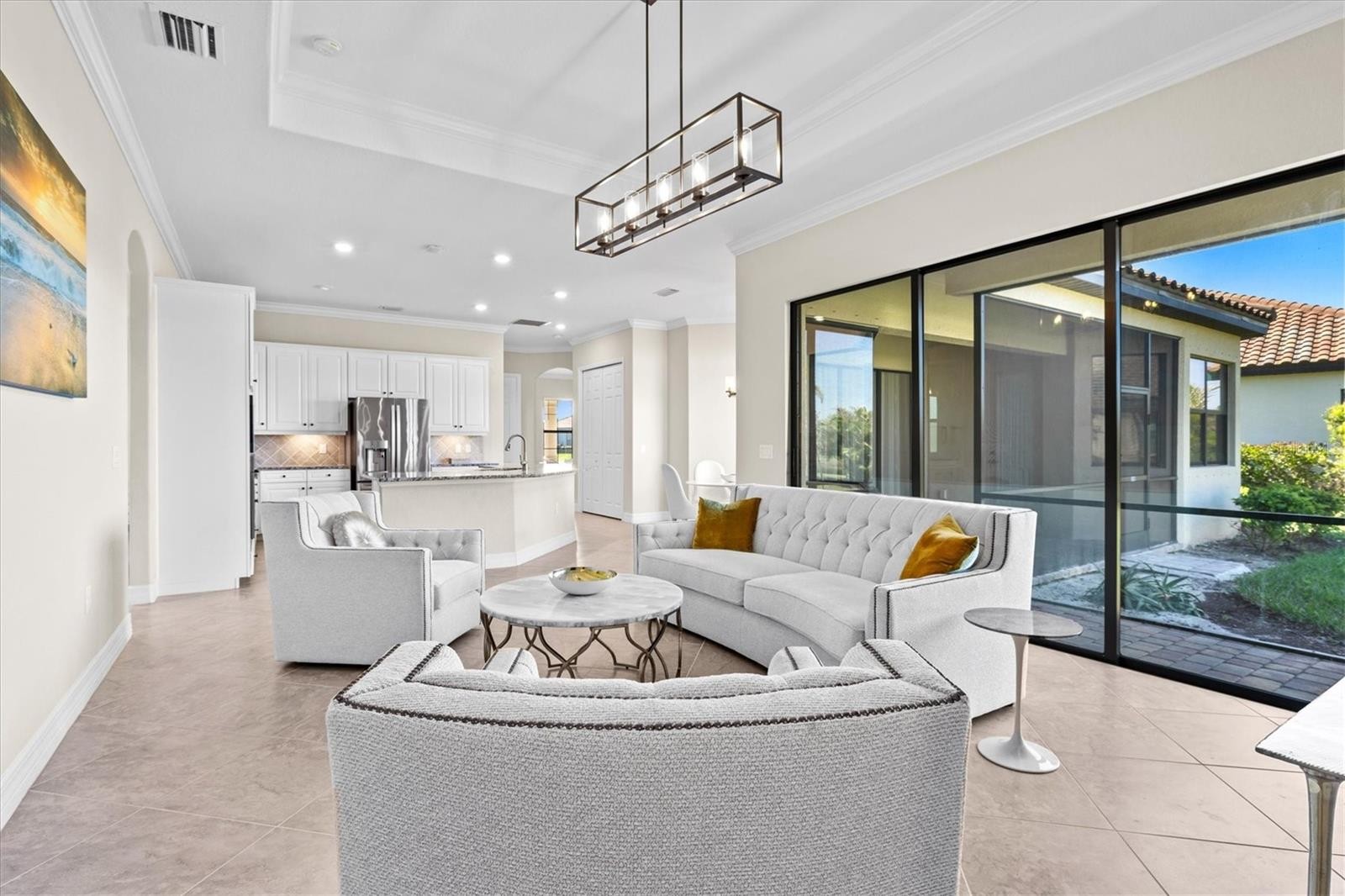This impeccably maintained, move-in-ready estate home offers the perfect blend of luxury and relaxation within the resort-style community of Gran Paradiso. Built in December 2020 and lightly lived in, this spacious 2,548 sq. ft. Lennar "Doral" floor plan is the largest one-story Lennar model in the community, showcasing distinctive pillared architecture—one of only 20-25 homes of its kind. <br> <br> With four bedrooms and three bathrooms, this home is designed for both comfort and style. Upscale finishes such as tray ceilings, crown molding, and low-maintenance tile flooring throughout enhance its elegant appeal. The bright white kitchen and bathroom cabinetry, paired with neutral tones, create a timeless aesthetic. The kitchen features GE Profile stainless steel appliances, including a refrigerator with a built-in coffee maker, while the home is fully equipped with digital "SMART" technology for modern convenience.<br> <br> Situated on a highly sought-after private corner lot spanning over 11,000+ sq. ft., this property offers plenty of space to add an expansive pool and lanai. The three-car garage adds to the home's practicality, making it truly move-in ready with every desirable feature.<br> <br> As a resident of Gran Paradiso, you'll have access to an array of resort-style amenities, including a sparkling pool, state-of-the-art fitness center, walking trails, a game room, library, clubhouse with spa, sauna, and steam room, as well as tennis and pickleball courts. HOA dues conveniently cover cable, internet, landscaping, and reclaimed water irrigation.<br> <br> Located in the heart of Wellen Park, this home offers easy access to shopping, dining, CoolToday Park—home of the Atlanta Braves' spring training—and the stunning beaches of Venice, just 15 minutes away.<br> <br> Don’t miss this rare opportunity to experience luxury living at its finest. Explore the 3D Matterport tour and floor plan, then make this incredible home yours today!