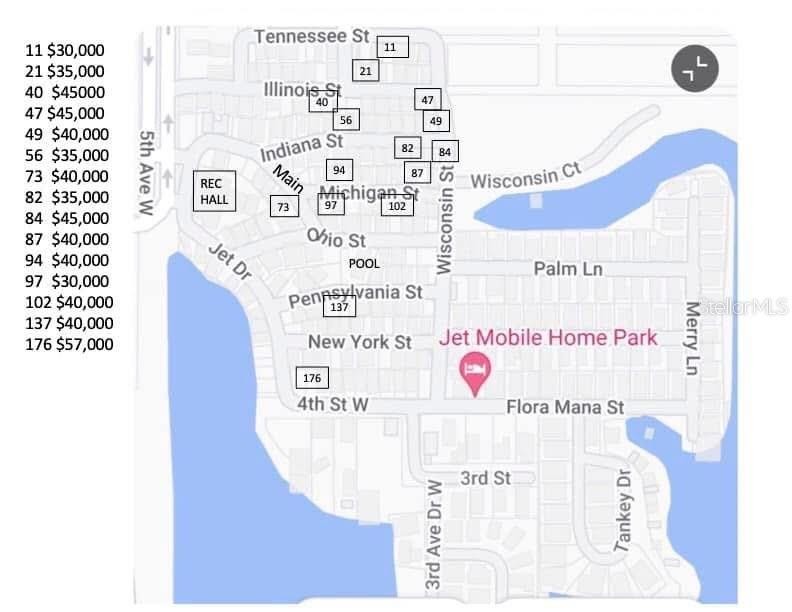 Welcome to lovely Jet Park! Jet Park is a great low key, active 55+ community located in a great central location of Palmetto. Close to shopping, restaurants, groceries and many major thoroughfares. Low monthly fees of only $195 per month. Bring your RV, trailer, 5th wheel to Florida whenever you want! Sites will also accommodate a mobile home or park model. Jet Park has a boat ramp for the residents which gives you direct access to the Gulf of America. There is also a picnic area with fire pit, kayak launch, shuffleboard, pool, full clubhouse with kitchen. This corner lot offers upgraded pavers for a beautiful patio area. Lots can fit motorhomes or you may put a mobile home on it. Lot 41 x 28