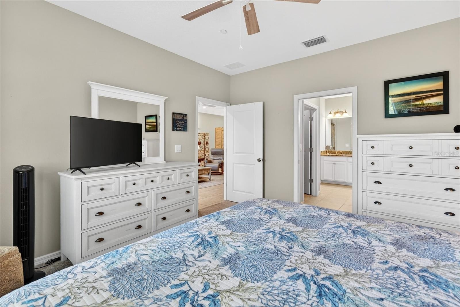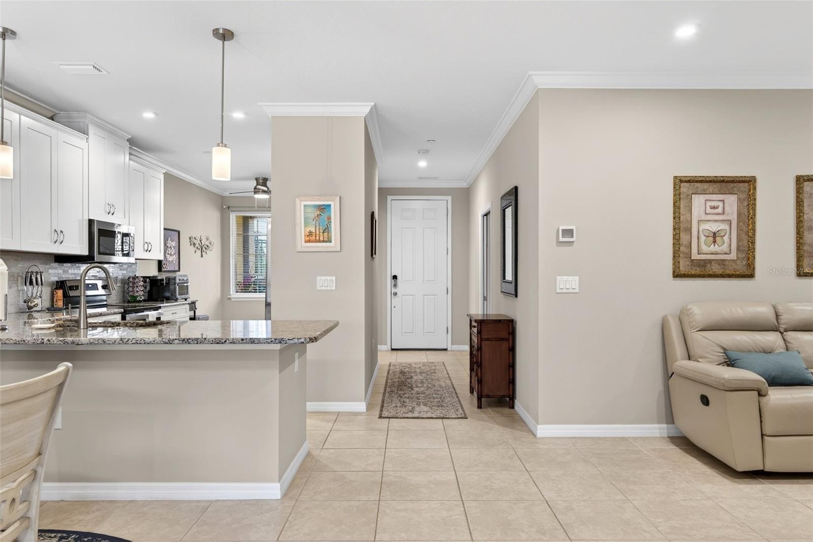 TURNKEY, GOLF-DEEDED & PRICED TO SELL—this is your opportunity to secure effortless luxury living on the fairways of one of Lakewood Ranch’s most coveted communities. Perfectly positioned on the pristine golf course within Esplanade Golf & Country Club, this first-floor residence at 13822 Messina Loop, Unit #103 offers sweeping views, refined finishes, and a true resort-style lifestyle—all ready for immediate enjoyment. This immaculate 2-bedroom plus den, 2-bath home with a private detached one-car garage showcases a bright, open-concept layout enhanced by coastal-inspired tones, crown molding, and tile flooring throughout the main living areas. The chef-inspired kitchen is both stylish and functional, featuring quartz countertops, stainless steel appliances, white cabinetry, tile backsplash, and upgraded lighting, flowing seamlessly into the dining and living spaces—perfect for entertaining or relaxed everyday living. The spacious primary suite serves as a peaceful retreat with tranquil golf course views, dual walk-in closets, and a private ensuite bath appointed with quartz countertops and elegant finishes. The guest bedroom is generously sized and thoughtfully positioned for privacy, while the versatile den/flex space is ideal for a home office, media room, or additional guest accommodations. Both bathrooms continue the upscale aesthetic with matching quartz countertops, creating a cohesive and elevated design throughout. Step onto your private screened lanai and unwind with panoramic views of the manicured fairways—ideal for morning coffee, sunset cocktails, and soaking in Florida’s year-round sunshine. Residents of Esplanade enjoy an unmatched suite of resort-style amenities, including championship golf, fine dining at the Culinary Center, a vibrant tiki bar, two state-of-the-art fitness centers, tennis, pickleball, bocce, and an active social calendar designed to connect and inspire. Located in Lakewood Ranch, the nation’s #1 master-planned community, you’re just minutes from UTC Mall, Waterside Place, boutique shopping, award-winning dining, downtown Sarasota, and the world-famous Gulf Coast beaches.