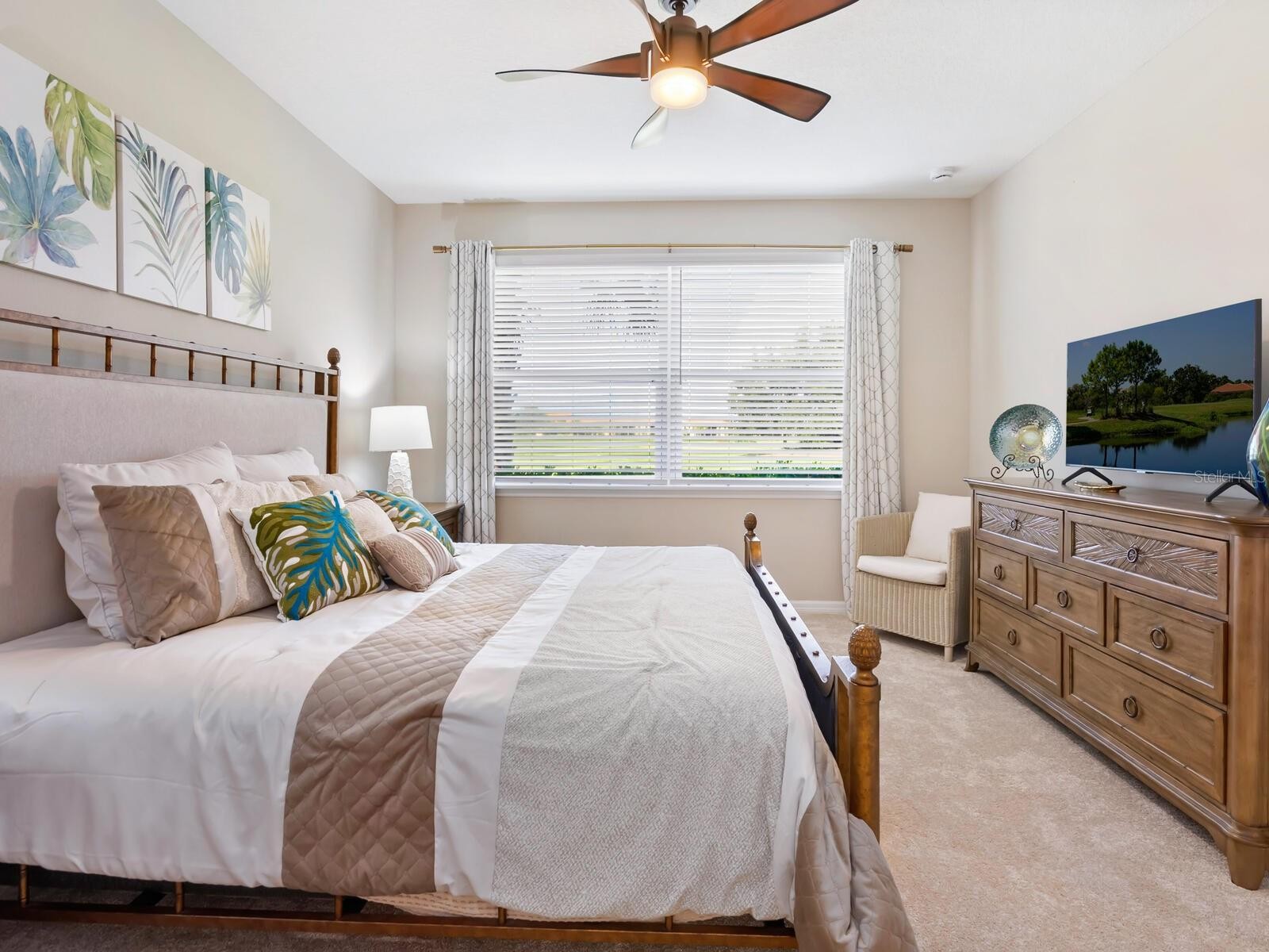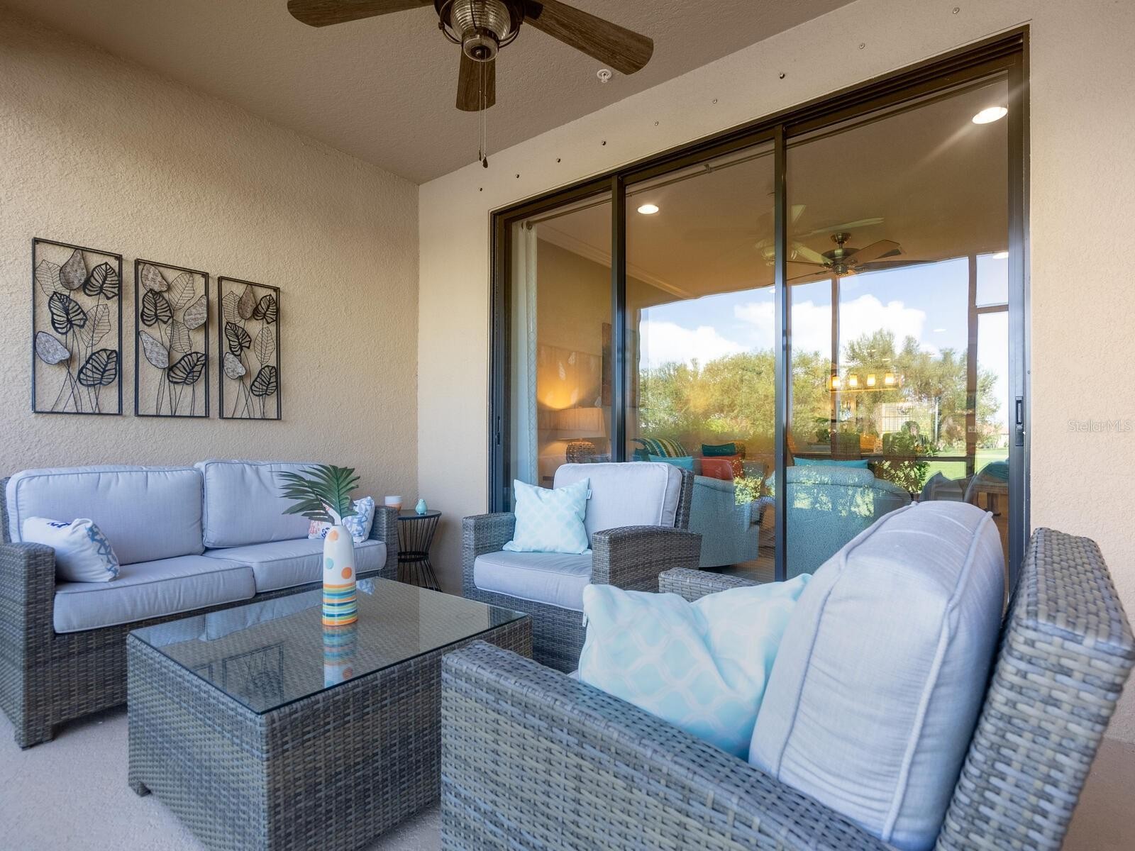 Enjoy resort-style living in your dream GROUND FLOOR END UNIT condo FURNISHED TURN KEY (everything you see is included) located in the highly sought after Esplanade Golf & Country Club at Lakewood Ranch. This “Ready to Move Right in” stunning 2-bedroom, 2-bathroom residence offers 1528 square feet of refined living space and is a testament to modern luxury and convenience. This condo includes a DEEDED GOLF MEMBERSHIP allowing you to enjoy the meticulously maintained Championship Course right from your backyard. A one-car garage provides ample storage and organizational solutions. Enjoy breathtaking golf views from living spaces including the Owner's Retreat and lanai seamlessly blending indoor and outdoor spaces. The soft, neutral color palette throughout will mesh perfectly with your own design aesthetic. At the heart of the home is the pristine kitchen with white wood cabinetry, granite countertops, under cabinet lighting, stainless steel appliances, and breakfast bar. A paved walkway from the detached 1-car garage leads to a charming garden courtyard just outside your front door, ideal for enjoying quiet time while sipping your morning coffee. This maintenance-free home offers additional upgrades including recessed lighting, built-in cabinetry in laundry room, designer window treatments, custom closets, crown molding, exquisite lights and fans and much more. The master bedroom boasts walk-in closets, an elegantly designed en suite bathroom with dual sinks, granite counters, and walk-in shower. This exceptional condo offers a blend of luxury, functionality, and a premier location with spectacular golf course views and a FULL GOLF MEMBERSHIP. Mailboxes and guest parking nearby. This amenity rich community features a private clubhouse overlooking the 18th green for dining and music, wellness center, fitness center with group classes, 2 fabulous resort-style pools with spas, lap and resistance designs, satellite pool nearby, tennis courts, pickle ball courts, Bahama Bar, Culinary Center, massage room, outdoor barbeque, bocce, firepits, as well as hiking and biking trails all while located in the center of endless shopping and dining in Lakewood Ranch. Esplanade even includes a doggy park for your furry friends to enjoy. Step into the lifestyle you deserve and arrange your private tour today!