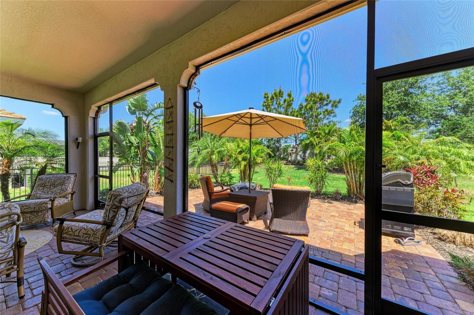 Breathe Easy in this stunning Alexander model by Meritage Homes, where clean air, pure water, and energy- efficient design come together for a truly comfortable lifestyle. Nestled on a quiet cut-de-sac within one of Lakewood Ranch's most sought after gated communities, this residence showcases a bright, open floor plan with soaring 10ft ceilings, 8ft doors, tray ceilings, and designer touches throughout. Residents enjoy maintenance- free lawn care and access to resort-style amenities, including a sparkling community pool, modern clubhouse, and state of the art fitness center. This home welcomes you with a Spanish style elevation, brick paver driveway and walkway, enhanced landscaping, and a covered lanai that leads straight to the front door. Around back you can sit and watch your favorite program under your covered lanai or step outside to a private, pavered patio surrounded by native plants and flowers, the perfect spot to relax, unwind, and listen to the birds sing. For peace of mind, the home also includes hurricane and custom storm shutters protection. Inside, the gourmet kitchen is the heart of the home, boasting an oversized Zodiak quartz island with seating, soft close cabinetry, stainless steel appliances, a vented range hood, built-in oven, microwave, electric cook top, and elegant tile backsplash. A reverse osmosis filtration system and whole home water softener ensure you enjoy clean, refreshing water every day. Tile flooring flows seamlessly throughout the home for easy maintenance. The primary suite is a retreat of its own with tray ceilings and custom crown moldings. The full bath features dual vanities, a walk-in shower and a custom-designed walk-in closet large enough for clothing, shoes, and storage and more. The split bedroom layout provides privacy for family or guests. A second bedroom with a spacious walk-in closet is paired with a full bath nearby. A versatile flex room offers the perfect spot for a home office, media room or a gym. Thoughtfull details throughout include, oversized pantry with plenty of shelving, Large laundry room, 2-car garage with epoxy flooring, wall cabinets, and workbench perfect for DIY projects, spray foam insulation in attic and walls for consistent comfort and energy efficiency, newer HVAC system (Mar 2024) with ozone air scrubber and UV purifier for the cleanest indoor air. This home offers more than just beauty- it delivers a healthier way of living, with purified air, filtered water, and peace of mind built into every detail. Don't miss the chance to call this Lakewood Ranch gem your own. Schedule your private showing today!