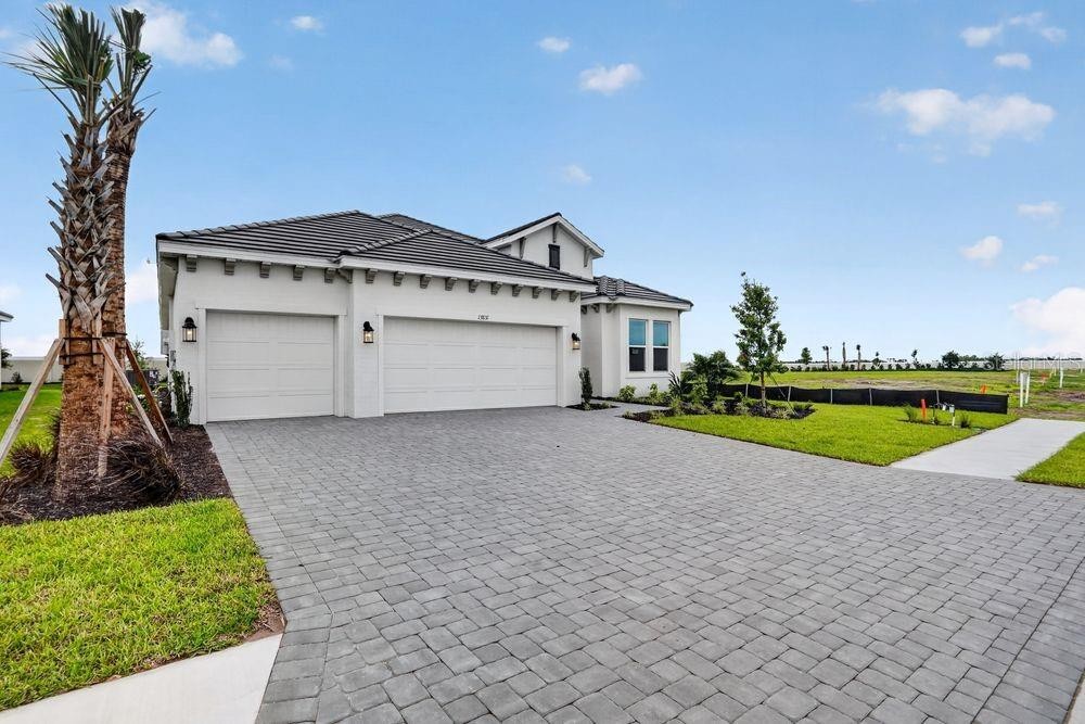 What's Special: Oversized Lot | Secondary Bdrm w/Atch Bath | Gourmet Kitchen | West Facing Patio | 3 Car Garage. New Construction - Ready Now! Built by America's Most Trusted Home Builder. Welcome to the Pallazio II at 13831 Buchanan Drive in Esplanade at Coasterra! This elegant new home welcomes you through the porch and sweeping foyer into an open-concept layout designed for effortless everyday living. The great room, formal and casual dining areas, and gourmet kitchen flow seamlessly together, featuring cambria quartz countertops with a quartz backsplash and wood laminate flooring throughout the main living area. Sliding doors open to the extended covered lanai, creating an easy indoor-outdoor connection. Tucked away for privacy, the primary suite offers a relaxing retreat with a spa-inspired bathroom and a walk-in closet with direct access to the laundry room. Toward the front of the home, two secondary bedroom suites each include their own bathroom, along with a powder room, laundry room, and a flexible space you can customize to fit your lifestyle. Additional Highlights Include: Gourmet kitchen, extended lanai, tray ceiling package, 8' interior doors, and door at primary closet to laundry. MLS#TB8489711 Discover Esplanade at Coasterra, your gateway to a new level of resort-style living in Palmetto, Florida. This vibrant gated community is designed to inspire meaningful connections and elevate your lifestyle with signature amenities and curated programs that invigorate the mind, body, and spirit. From beautifully appointed homes to concierge services and endless activities, every detail is crafted to make each day feel like a dream vacation. Life at Esplanade means enjoying a shimmering resort-style pool and spa with poolside cabanas, tennis and pickleball courts, and a state-of-the-art fitness center featuring Technogym® equipment. Unwind with signature spa services, gather with friends at the Bahama Bar, or challenge yourself in the virtual games suite. Outdoor enthusiasts will love the community garden, fire-side seating, and event lawn, while nature lovers can explore the NWF Monarch Butterfly Garden and NWF Nature Play Space. There’s even a bark park for your furry friends. With so many thoughtfully designed spaces, Esplanade at Coasterra offers everything you need to live your best life, every single day.