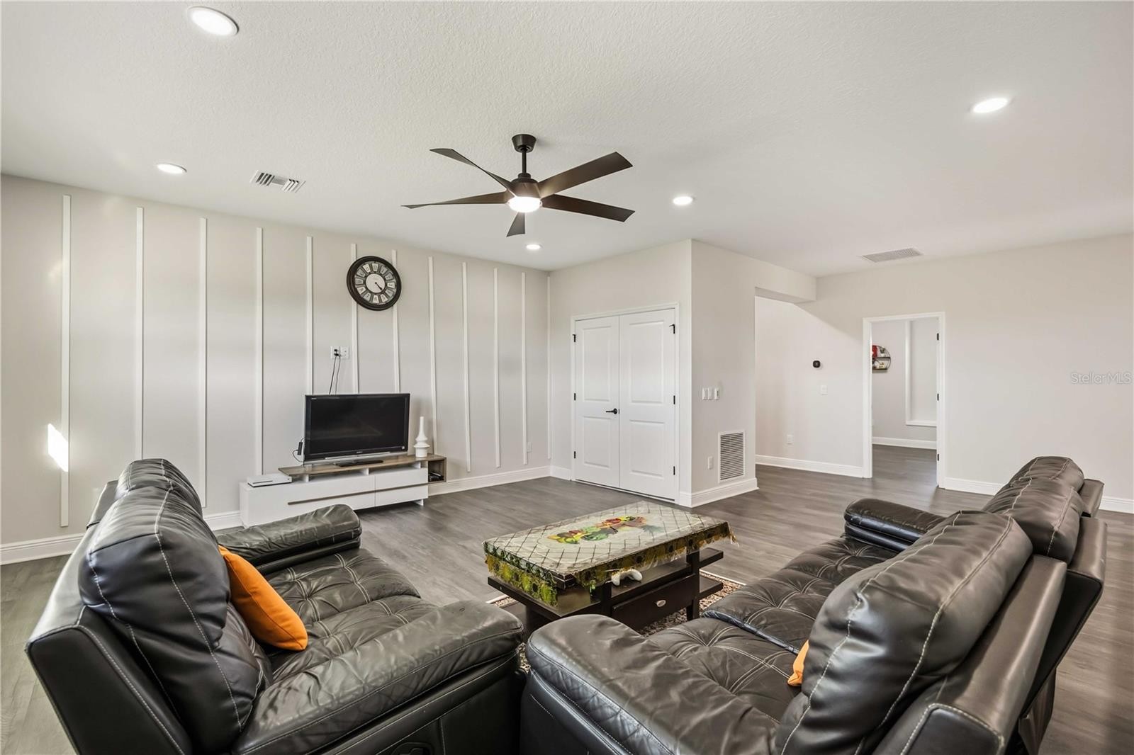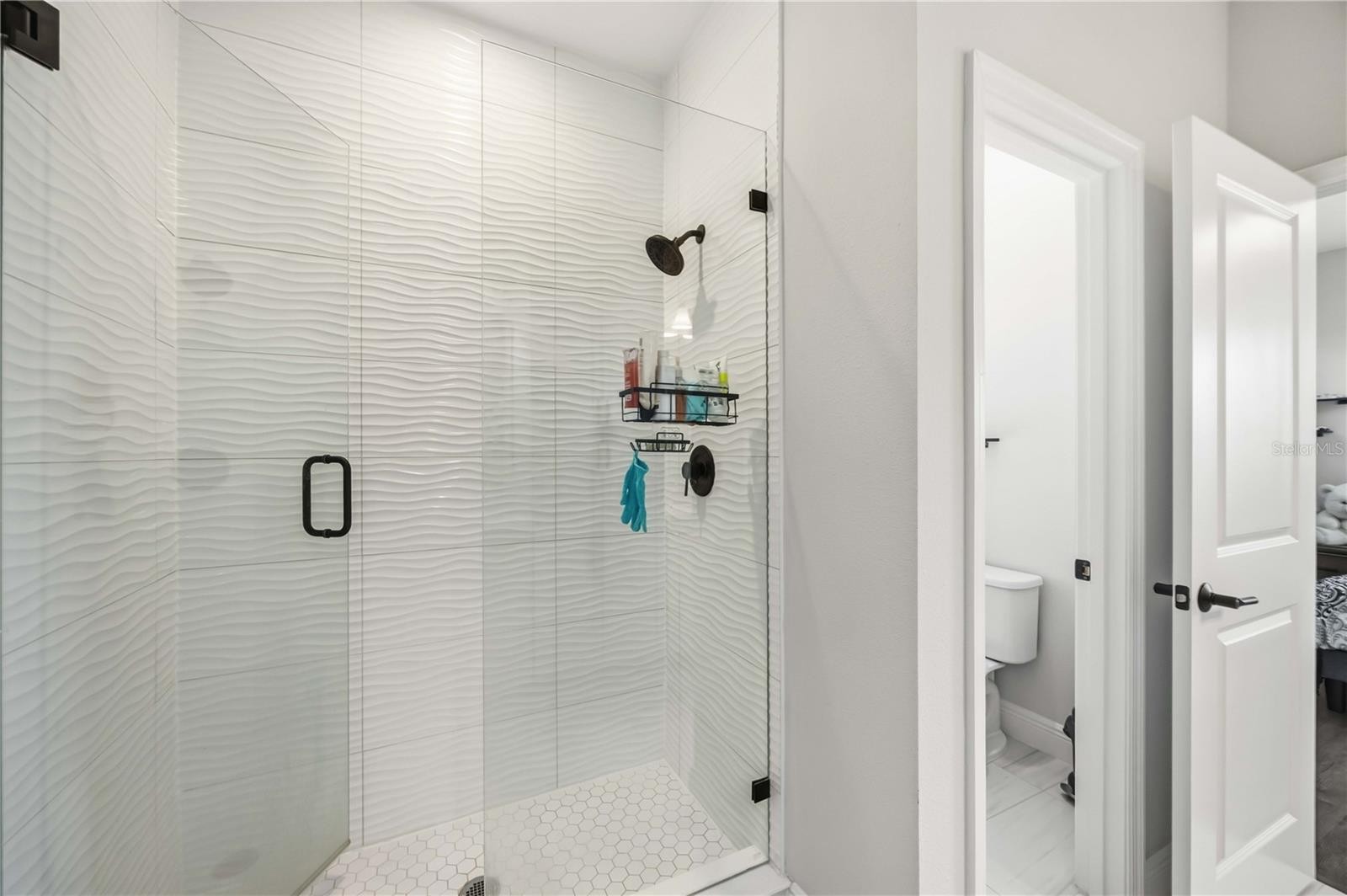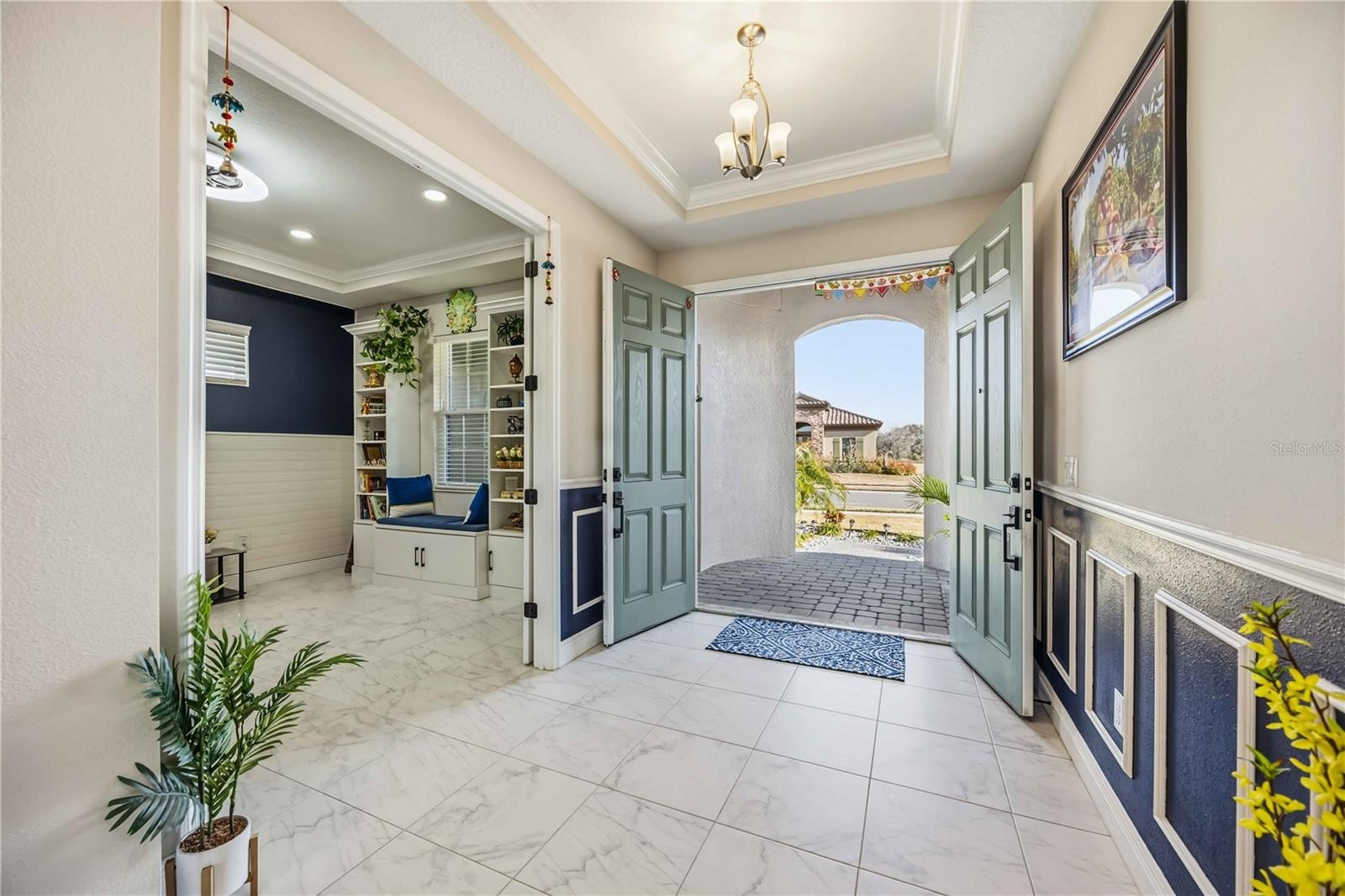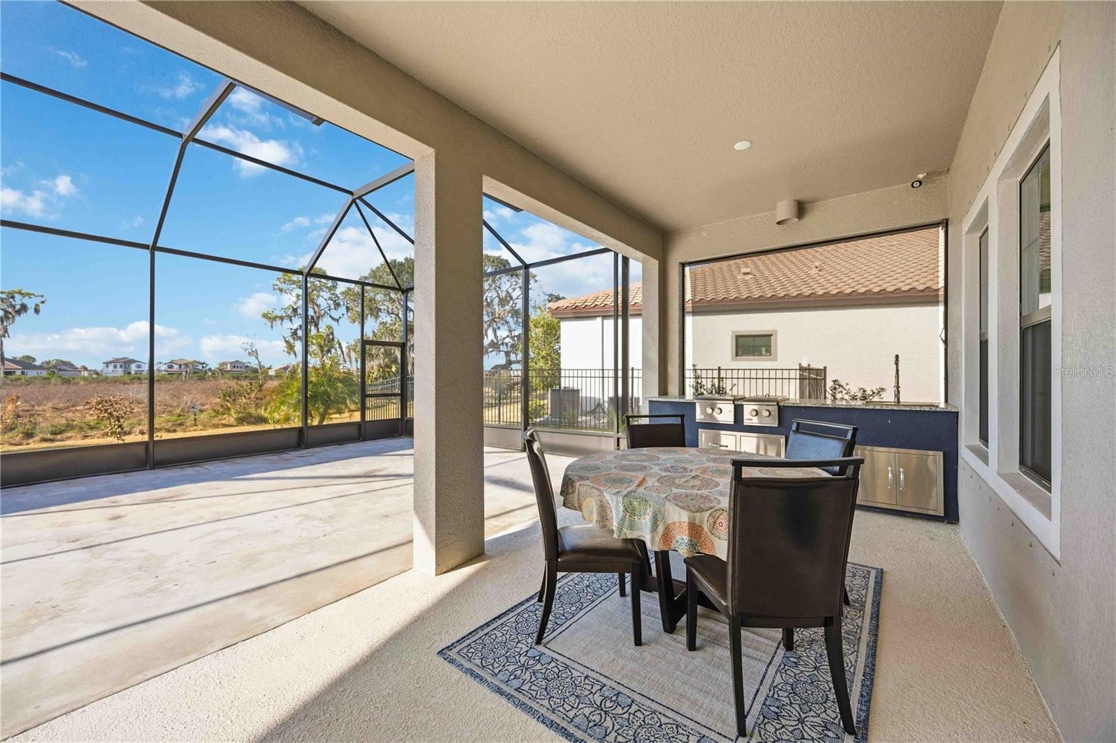 Discover unparalleled luxury in this upgraded Homes by Westbay Verona floor plan. This exquisite single-family residence offers an expansive 3,518 square feet of meticulously designed living space with five bedrooms and four bathrooms. The exterior impresses with its highest-level Tuscan elevation, featuring elegant stucco and stonework, a tile roof, and a spacious three-car garage with epoxy floors and storage cabinets. Step inside through the double door entry to find a home adorned with the finest finishes & showcasing 10' ceilings. There’s no carpet here—only luxury tile and vinyl plank flooring throughout. The gourmet kitchen is a chef's dream, complete with the extended, upgraded island, additional wall cabinets with a wine refrigerator, and top-of-the-line stainless GE Profile appliances. Cook with ease on the gas cooktop under a vented hood, wall unit oven, & microwave while a glass door walk-in pantry ensures ample storage. Stylish high-level quartz counters and bar seating provides space for entertaining. The open-concept great room flows seamlessly to an expansive lanai through an 18-foot sliding glass door, perfect for entertaining or enjoying serene views of the conservation preserve with no neighbors behind. An outdoor kitchen and newly added 40' x 20' lanai extension make it ideal for gatherings or family playtime in a secure environment. The thoughtfully designed layout includes a downstairs guest room or in-law area with a full bath and lanai access, (which can be a pool bath for future pool) providing privacy and convenience for extended family or visitors. Upstairs, boasting 9' ceilings, the primary suite offers a sanctuary with its double door entry, abundant natural light, and a luxurious en-suite bath featuring separate vanities, a soaking tub, a rain shower, and a spacious walk-in closet. Each bedroom is equipped with a walk-in closet, ensuring ample storage for all. Additional upstairs features include a large laundry room with a sink and included washer and dryer, a guest room with a full hall bath, and two bedrooms (one with a window seat) sharing a Jack-and-Jill bathroom. The generous bonus room completes the upper level, providing flexibility for entertainment, relaxation or study/play space. This home is situated in a community that enhances your lifestyle with low HOA fees covering a new pool, cabana, parks, pickleball, playground, walking trails and more. Nestled in a quiet neighborhood, yet conveniently close to Parrish amenities, newer schools, retail, restaurants and medical facilities (2 new hospitals under construction), this property offers both tranquility and accessibility. Experience the elegance and comfort of this upscale home. Schedule a showing to experience it in person.