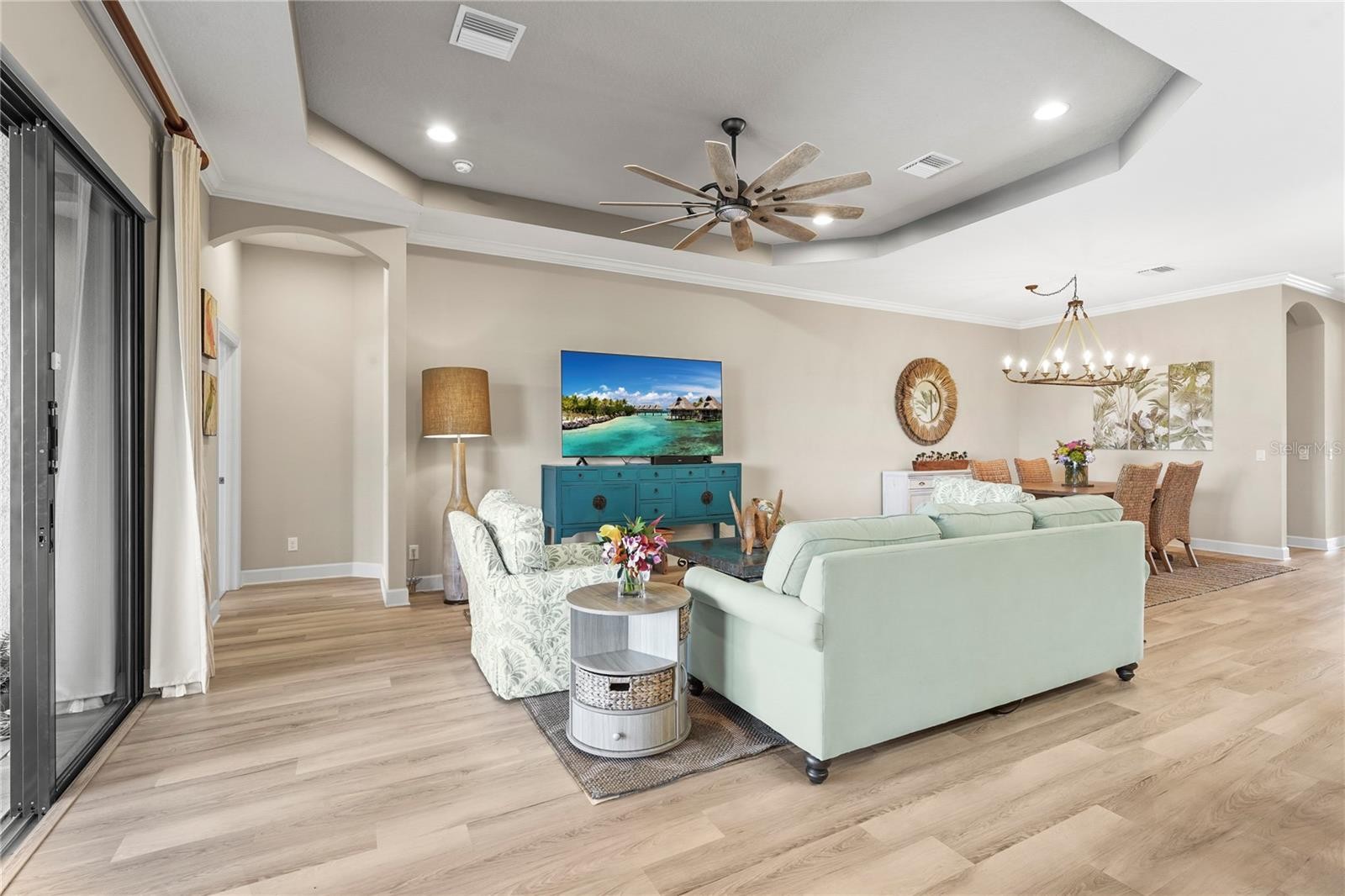 Your Golfer's Paradise is Calling! This custom-built, golf-deeded residence, with its unrivaled attention to detail and breathtaking golf course views, is a true masterpiece of award-winning design and superior craftsmanship. One of Taylor Morrison's most desirable floor plans, "The Lazio" features 2400sf, 3 bedrooms, 3 full bathrooms, den, dedicated dining area, and extended kitchen with a massive island perfect for entertaining! The split floor plan allows for ample privacy and thoughtful design. The primary suite has a gorgeous view of the lush Florida landscape, cozy sitting area, attached en-suite with walk-in shower and large custom built closet. In addition, there are two separate guest suites, a spacious laundry room and large den perfect for home office or potential 4th bedroom. Step outside through either set of sliders from the great room and be captivated by the expansive lanai with a large covered area. Here, you’ll find a heated salt water spa-like pool with multiple jets and bench, accent lanai lighting, stunning views and an outdoor kitchen with stone countertops that make this space perfect for alfresco dining and relaxation. This home boasts an earthy color palette giving warm coastal vibes from the moment you step inside! Additional features include tray ceilings, luxury vinyl plank flooring, crown molding, extended lanai, kitchen and garage allowing for two vehicles and a golf cart! This stunning home sits up on one the communities most elevated lots which provides additional privacy and optimal views of the 6th hole! MOVE RIGHT IN and start enjoying paradise as this home is being sold fully furnished with only a few exclusions! Located in the gated community of Esplanade, residents enjoy maintenance-free living along with access to the championship golf course and driving range due to the deeded golf membership that is included in the homeowner fees. Additional amenities include 6 tennis courts, 3 heated pools and spa with a Bahama Bar & Restaurant, 8 pickleball and bocce courts, walking trails, dog parks, and a newly built clubhouse with a culinary center. For those who refuse to settle for anything less than absolute luxury, this home represents the pinnacle of elegant living in a RESORT style community! Conveniently located just minutes to Lakewood Ranch Main St and Waterside boasting some amazing restaurants, nightlife, farmer's market, live music and boutique shopping! Come see what Lakewood Ranch has been named the #1 multi-generational community in the country 7 years running!