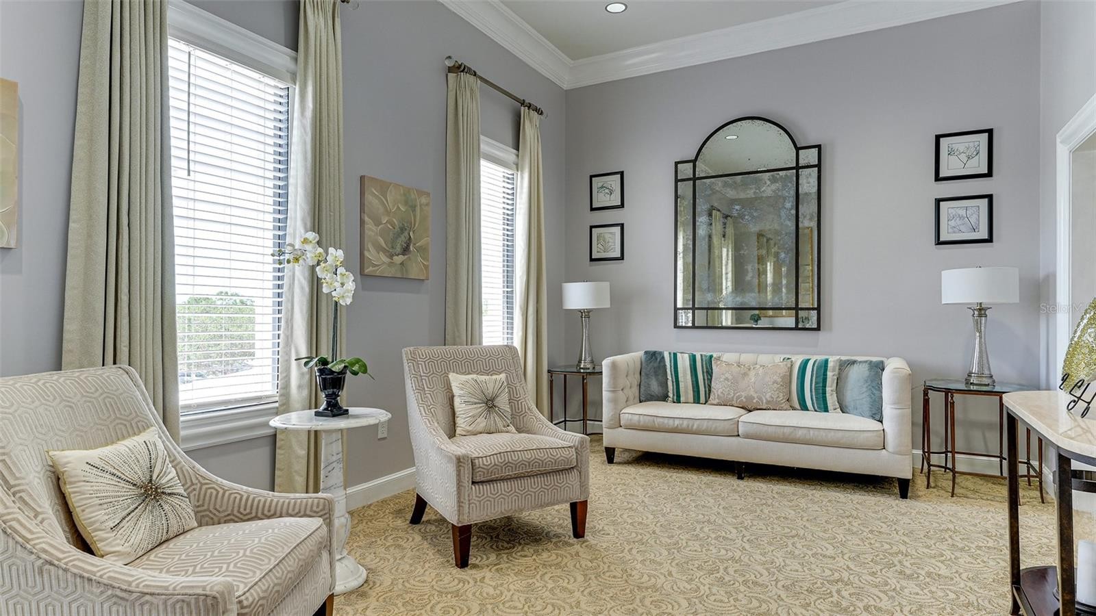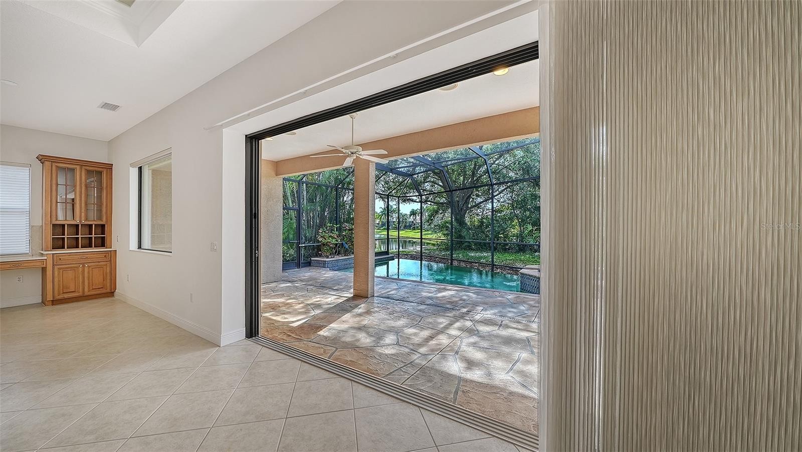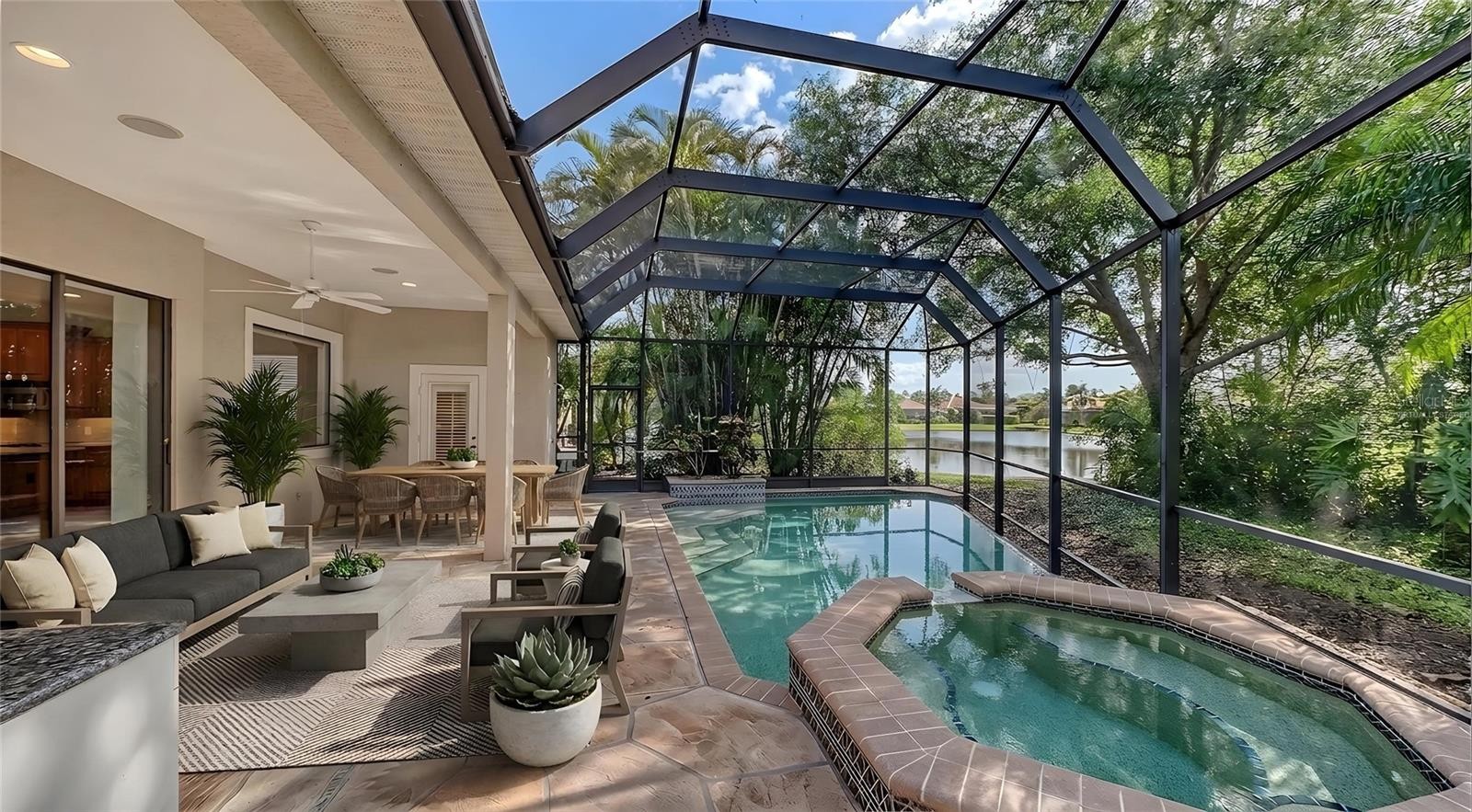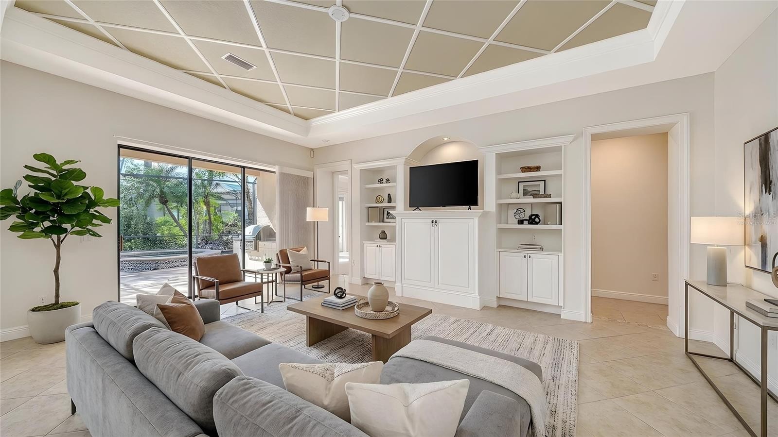 One or more photo(s) has been virtually staged. Step into a home that feels brand new. Recently refreshed and move-in ready, this exceptional Neal custom residence behind the gates of Lakewood Ranch Country Club now showcases a crisp, modern aesthetic with a freshly painted interior and all-new carpeting in the bedrooms and bonus/media room—creating a light, bright, and inviting palette that today’s buyers are seeking. Perfectly positioned on a serene lakefront homesite, this 3,216 sq. ft. residence offers 3–4 bedrooms, 3.5 baths, a private media room, and an oversized three-car garage, blending timeless design with today’s updates. From the moment you enter, you’ll appreciate the elegant architectural details including coffered ceilings, crown moldings, and rich wood cabinetry—all beautifully complemented by the home’s fresh new look. The gourmet kitchen is both stylish and functional, featuring quartz countertops, a custom backsplash, stainless steel appliances including an Advantium microwave and Samsung refrigerator, and a reimagined island with chair-height seating, pop-up wireless charging, and under-cabinet LED lighting. The spacious primary suite offers a peaceful retreat with French doors to the lanai, customized closets, and a spa-inspired bath with Jacuzzi tub, bidet, and dual vanities. A dedicated office with double French doors provides an ideal work-from-home space, while the upstairs media room is designed for entertaining with a wet bar, beverage refrigerator, and a full home theater system with projector, 98” screen, and surround sound—all enhanced by brand-new carpeting. Outdoor living is equally impressive, featuring a disappearing-edge PebbleTec heated pool and spa, outdoor kitchen with granite countertops, and tranquil lake views—perfect for enjoying Florida’s year-round lifestyle. Recent improvements include new A/C (2024), new pool heater (2023), and the just-completed interior refresh, offering buyers peace of mind and immediate enjoyment. Located within Lakewood Ranch, residents enjoy access to premier golf, tennis, fitness, dining, and the vibrant Main Street and Waterside districts. Freshly updated, impeccably maintained, and now better than ever—this is your opportunity to own a truly move-in ready home in one of the area’s most sought-after communities.