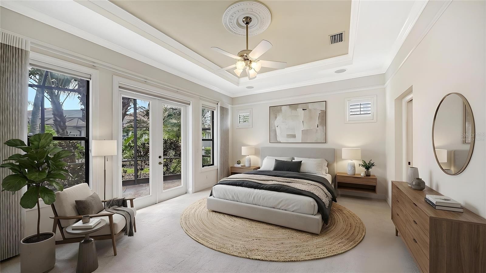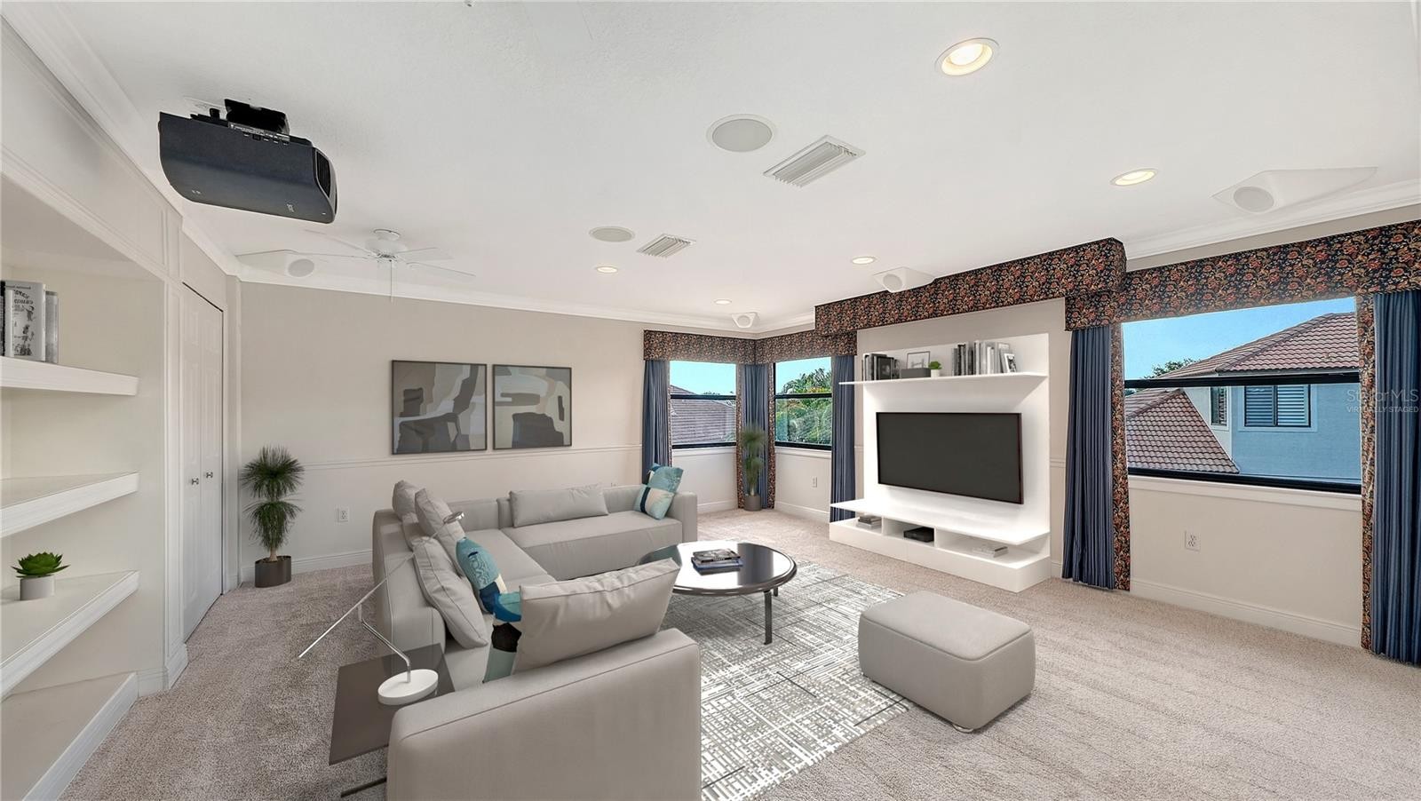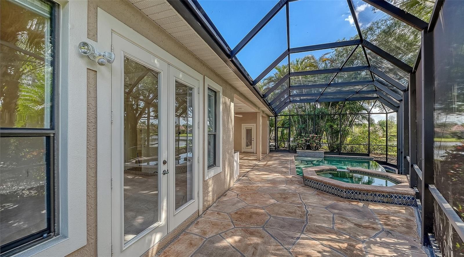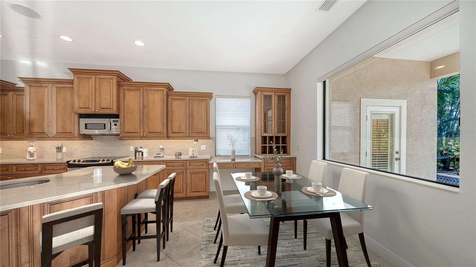 One or more photo(s) has been virtually staged. Step into a home that feels brand new. Recently refreshed and move-in ready, this exceptional Neal custom residence behind the gates of Lakewood Ranch Country Club now showcases a crisp, modern aesthetic with a freshly painted interior and all-new carpeting in the bedrooms and bonus/media room—creating a light, bright, and inviting palette that today’s buyers are seeking. Perfectly positioned on a serene lakefront homesite, this 3,216 sq. ft. residence offers 3–4 bedrooms, 3.5 baths, a private media room, and an oversized three-car garage, blending timeless design with today’s updates. From the moment you enter, you’ll appreciate the elegant architectural details including coffered ceilings, crown moldings, and rich wood cabinetry—all beautifully complemented by the home’s fresh new look. The gourmet kitchen is both stylish and functional, featuring quartz countertops, a custom backsplash, stainless steel appliances including an Advantium microwave and Samsung refrigerator, and a reimagined island with chair-height seating, pop-up wireless charging, and under-cabinet LED lighting. The spacious primary suite offers a peaceful retreat with French doors to the lanai, customized closets, and a spa-inspired bath with Jacuzzi tub, bidet, and dual vanities. A dedicated office with double French doors provides an ideal work-from-home space, while the upstairs media room is designed for entertaining with a wet bar, beverage refrigerator, and a full home theater system with projector, 98” screen, and surround sound—all enhanced by brand-new carpeting. Outdoor living is equally impressive, featuring a disappearing-edge PebbleTec heated pool and spa, outdoor kitchen with granite countertops, and tranquil lake views—perfect for enjoying Florida’s year-round lifestyle. Recent improvements include new A/C (2024), new pool heater (2023), and the just-completed interior refresh, offering buyers peace of mind and immediate enjoyment. Located within Lakewood Ranch, residents enjoy access to premier golf, tennis, fitness, dining, and the vibrant Main Street and Waterside districts. Freshly updated, impeccably maintained, and now better than ever—this is your opportunity to own a truly move-in ready home in one of the area’s most sought-after communities.