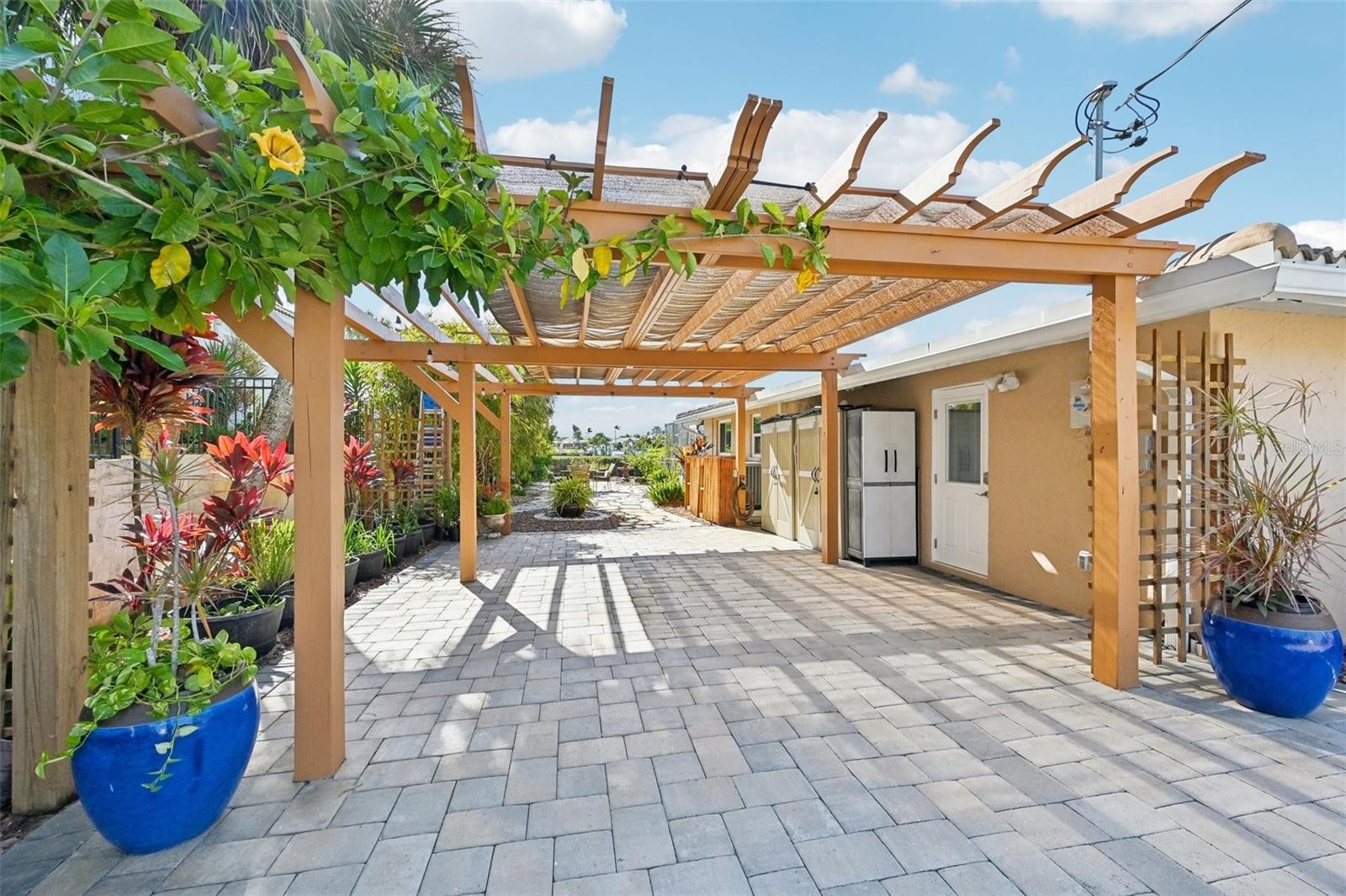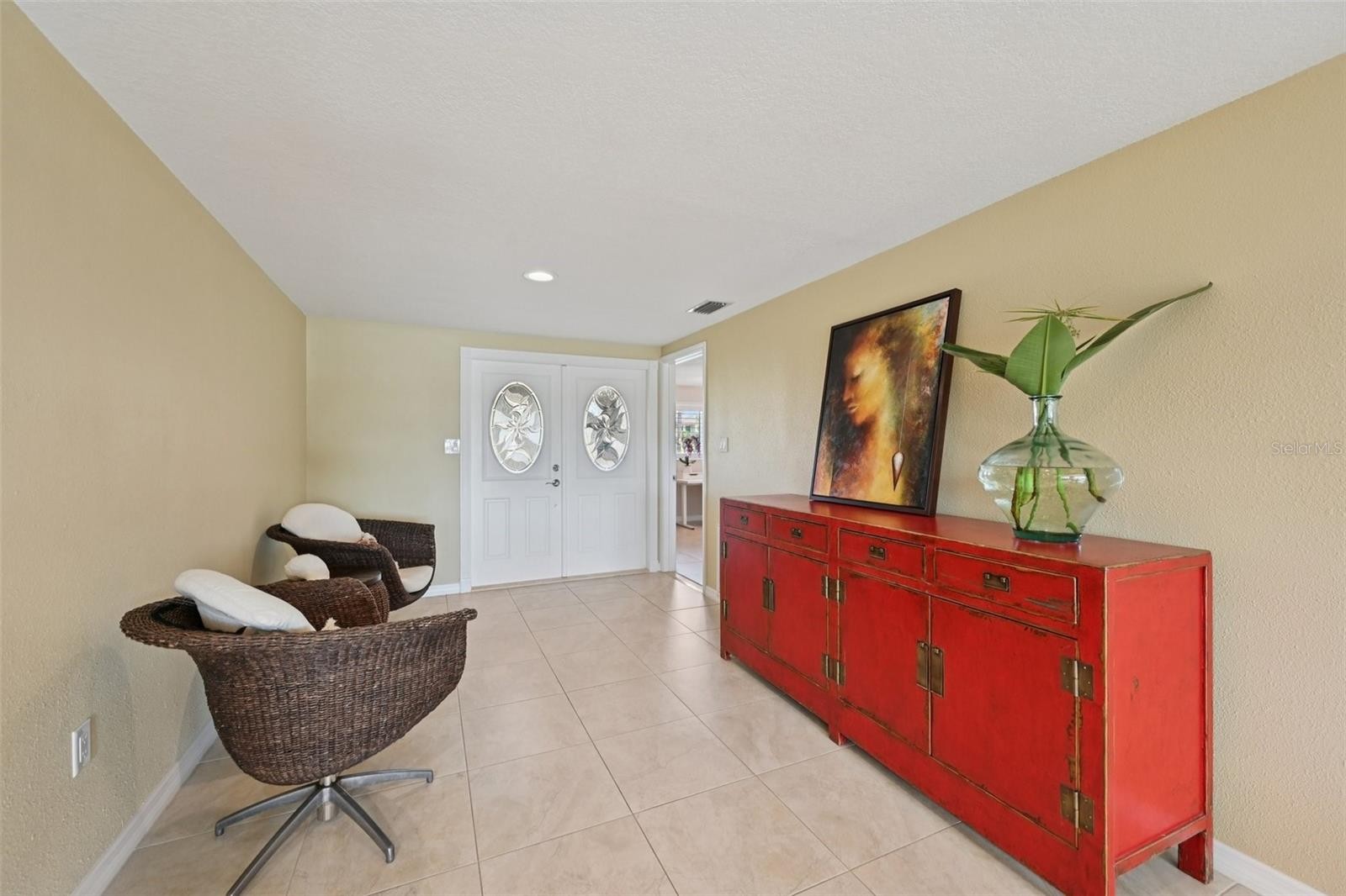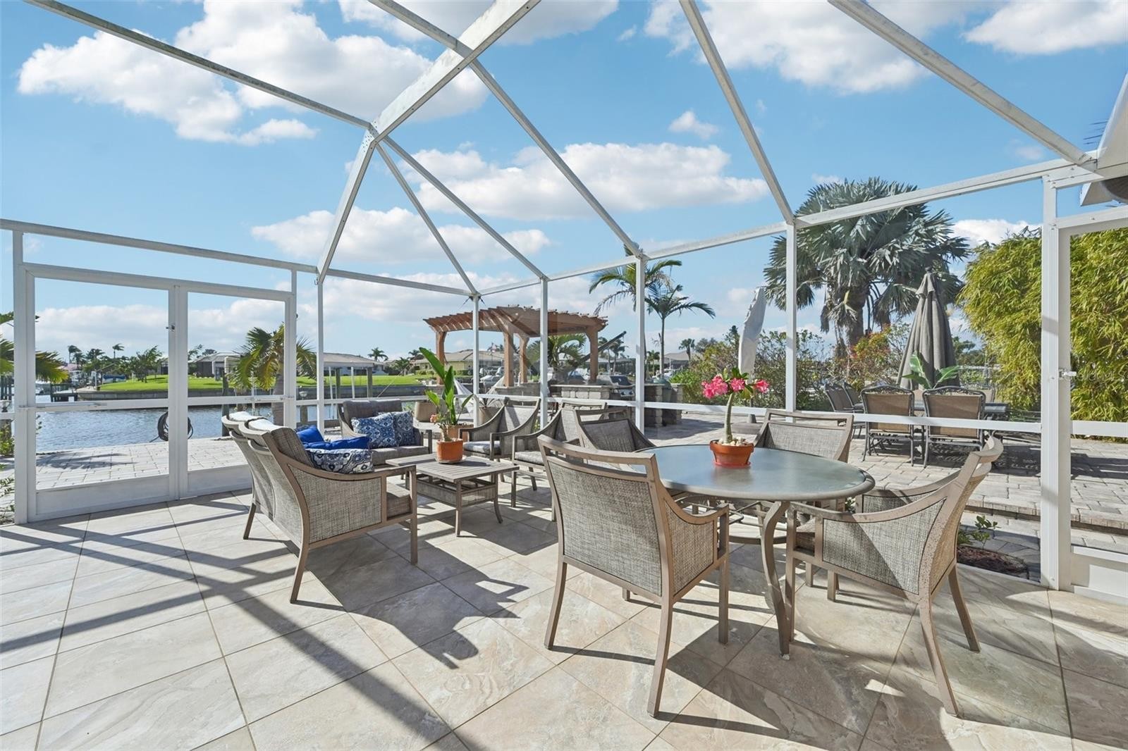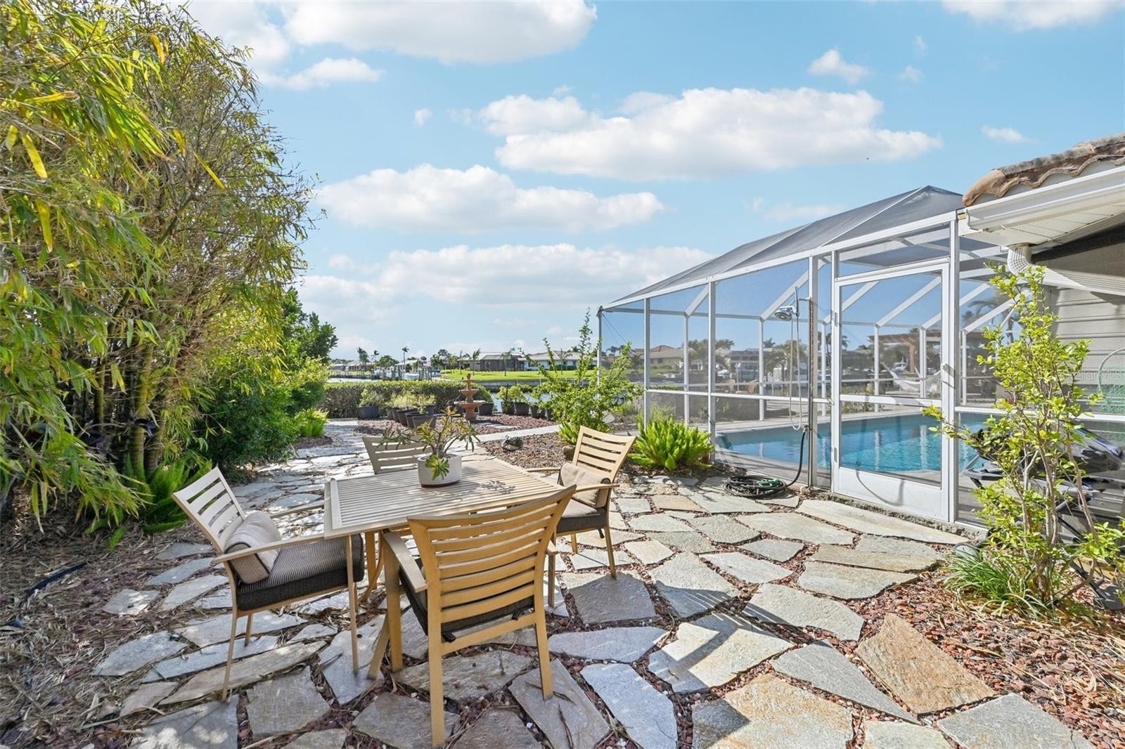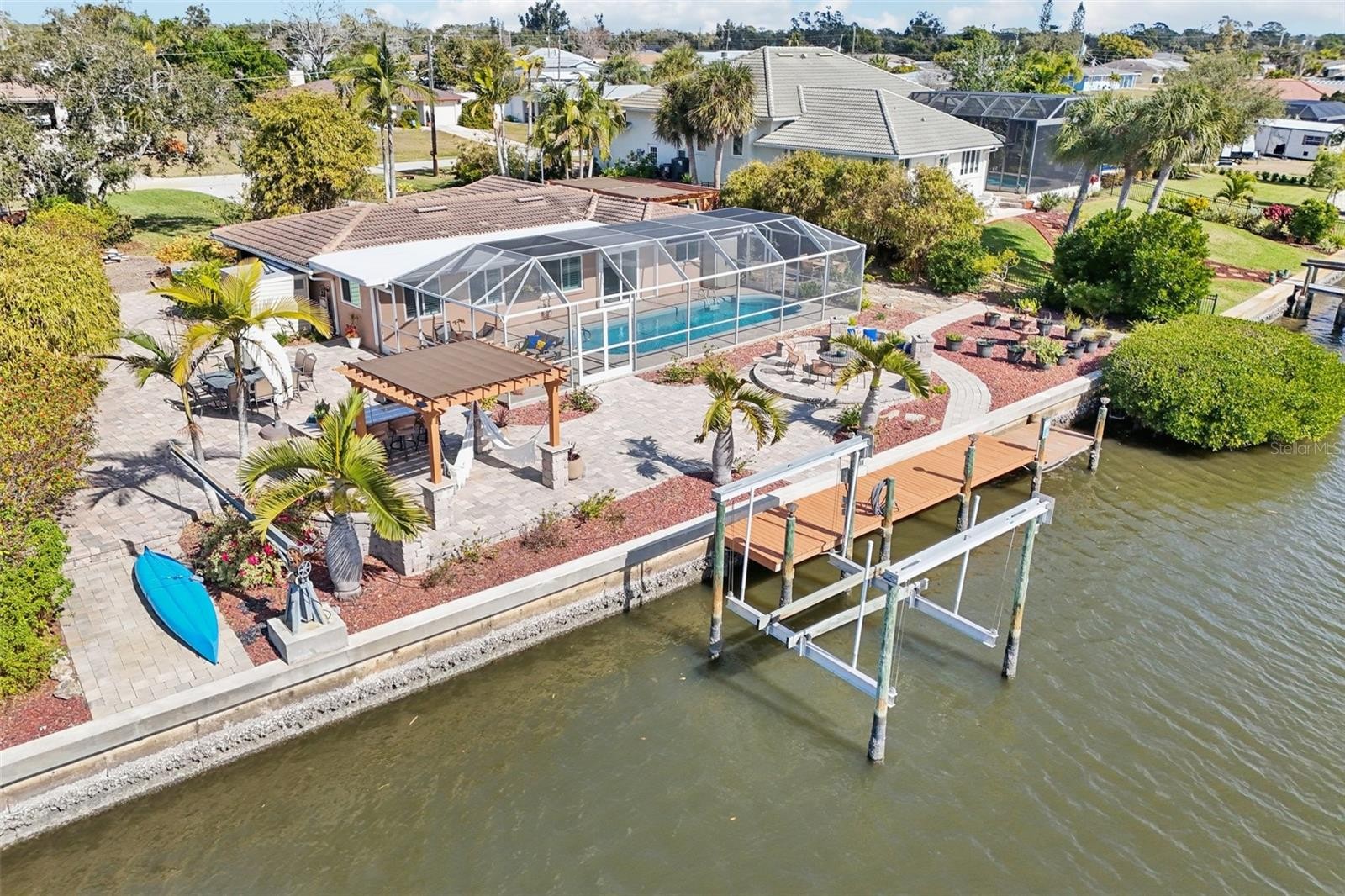 Resort-inspired living on Forked Creek with a pool, multiple outdoor entertaining areas, dock with lift for direct bridge-free access to Lemon Bay and the Gulf, and the rear is south facing so you can enjoy daily sunrises and sunsets. From the moment you arrive at this three bedroom + office, two bathroom home, the pride of ownership and attention to detail are immediately apparent. Set on an oversized lot, the property is beautifully landscaped with an array of gardens and raised beds, creating a peaceful connection to nature and space to continue cultivating your own outdoor oasis. A paver driveway, tile roof, and a charming pergola-style carport with flowering vines enhance the inviting curb appeal. Inside, a welcoming foyer offers a comfortable seating area and sets the tone for the thoughtfully designed interior. The home has soft, neutral tones, complemented by plantation shutters and tile flooring throughout for both beauty and easy maintenance. The kitchen is both functional and elegant, featuring rich wood cabinetry with crown molding, granite countertops, a tile backsplash, a raised breakfast bar, and stainless steel appliances. Just off the kitchen, the formal dining room is framed by sliding glass doors that open to unending views of the pool, paver fireplace, and the water beyond, creating a beautiful setting for everyday meals or special gatherings. A versatile office space offers a reach-in closet, a laundry closet, a utility closet, and an exterior access door, providing excellent flexibility. This room could easily serve as a fitness room, hobby space, or remain a convenient home office, adapting effortlessly to your lifestyle needs.The primary ensuite bedroom is spacious and inviting, featuring a walk-in closet and a beautifully designed bathroom in a classic black and white palette. The bathroom includes a walk-in shower with European-style frameless glass doors and a lighted niche, a soaking tub with accent lighting, and a dual vanity. Both guest bedrooms are nicely sized, with one offering a walk-in closet. The guest bathroom is equally well finished, with a fully tiled design, tile extending halfway up the walls, and a frameless glass walk-in shower, providing a polished and comfortable space for guests. The outdoor living space is truly spectacular, featuring a tiled, screened lanai with a fiberglass pool and plenty of room for lounging and dining. Just beyond the screened area, a spacious custom paver patio offers multiple entertaining zones, including a firepit, cooking area, and a pergola perfectly positioned to overlook the water. Winding walking paths lead you through the property, some accented with flagstone pavers and decorative stone and others finished with classic pavers, guiding you to the newer dock with boat lift. From here, set out on daily adventures with no bridges to slow you down, heading south toward Stump Pass and Boca Grande or north toward Venice and Sarasota. Along the way, enjoy waterfront restaurants, tiki bars, sandbars, abundant wildlife, or cast a line for your favorite saltwater catch. This exceptional home at 1393 Forked Creek Drive truly offers it all and is ideally located between Venice and Englewood, placing local dining, shopping, and entertainment just minutes away.