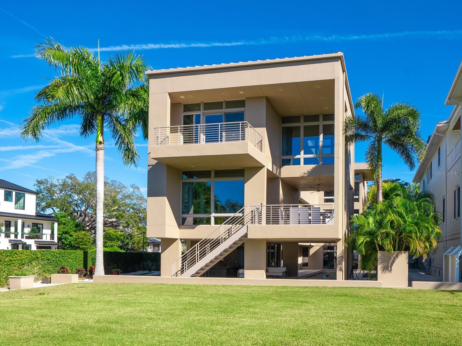 Privately positioned in gated Oyster Bay Landings with water views stretching down a short canal to Sarasota Bay, this stunning iconic masterpiece from world-renowned architect Guy Peterson is a breathtaking example of the Sarasota School of Architecture’s style and vision. A comfortable modernistic ambiance flows freely throughout the 5,428 sq. ft. of open living where walls of glass capture spectacular displays of the cerulean blue water and evening skies of fiery beauty. No detail has been overlooked. No expense has been spared. Architecturally striking, this 4-bedroom, 4.5-bath waterfront residence is the ultimate indulgence offering rarity, cachet and grandeur. Dock with 2 lifts is conveniently situated on a waterway unencumbered by any bridge. Floor to ceiling windows frame expansive vistas and abundant natural light complements the thoughtfully-appointed and expertly-planned space. Over 4,000 square feet of outdoor area is inviting and festive, and presents unique vantage points to deliver an exhilarating experience. Expansive terraces promote seamless indoor-outdoor living. Covered entertaining is abundant among the verdant tropical gardens and immaculately manicured grounds. Resort-style amenities including an elevator, courtyard with fire pit and heated pool/spa, and breathtaking reflecting pool with fountain. The stunning kitchen is a culinary delight and complemented by an extravagant amenities package of top-tier appliances, island with seating for 6, 20-ft. long counter for 2 desk workstations, side-by-side but separate refrigerator and freezer, 2 dishwashers, and deep walk-in pantry. The family room is equipped with built-in entertainment wall and opens to a waterfront patio with outdoor cooking center. The great room has travertine floors and cypress ceiling detail, and the office provides a desk with stone countertops and plenty of solid wood cabinetry. A 400-bottle wine room is the highlight of the gaming area with wet bar, electric shades and unique glass chandelier. On the second level are spa-inspired en-suite bedrooms with custom closet systems and elevated ceilings. A 30-ft. bridge leads to the master wing highlighted by incredible water views, sitting room with morning bar, and home gym/office. The primary bath creates an immersive experience with a 16-ft. long dressing hall with a wall of built-ins and mirrors, large walk-in specialty closet, multi-faceted shower, deep soaker Jacuzzi tub, separate bidet and laundry chute. In addition, there are two laundry areas, an elevator from ground level to the 2nd and 3rd floors, Creston music and lighting system, Generac generator, and 4-car garage. In one of Sarasota’s most coveted locations along the waterfront, this home redefines coastal living is just minutes from beaches, golf, fine dining and downtown Sarasota’s beloved arts and cultural offerings. When scheduling your exclusive tour of this amazing MODERN waterfront estate, make sure to allow plenty of time for exploring its incredible features, both inside and out. It must be seen in person to be fully appreciated. Even the most discerning buyer will fall in love!